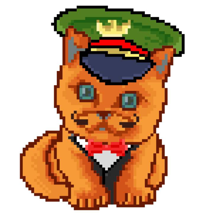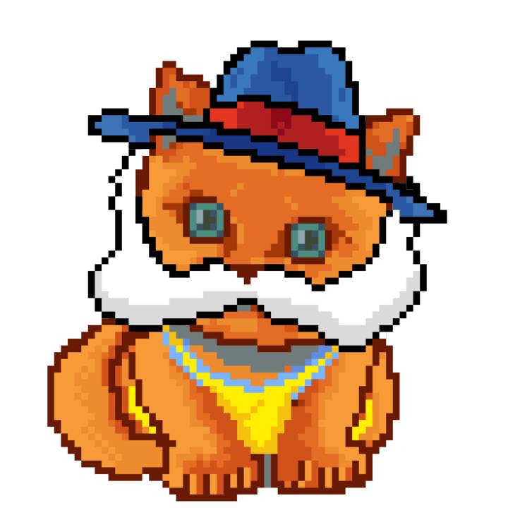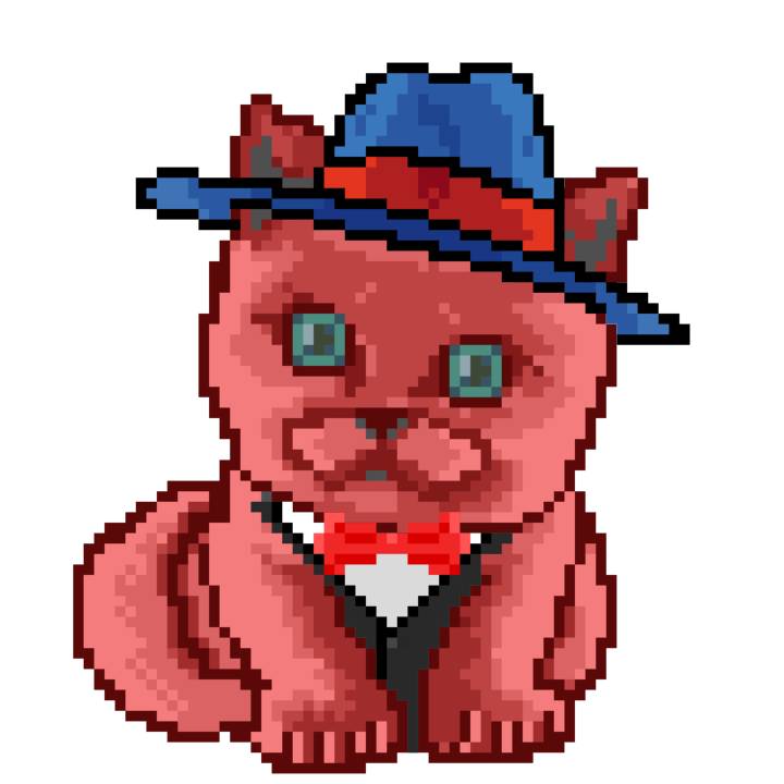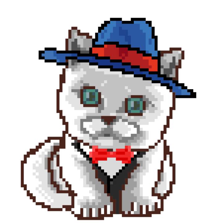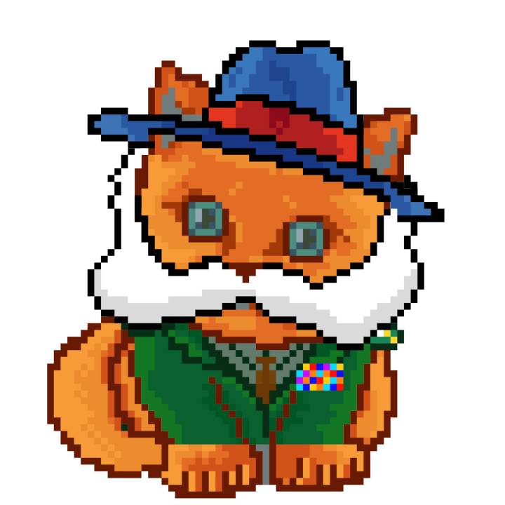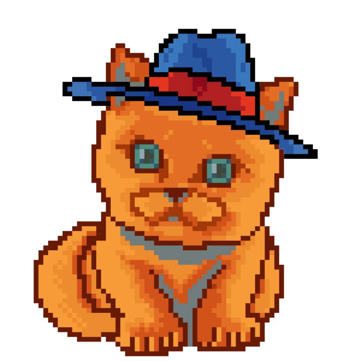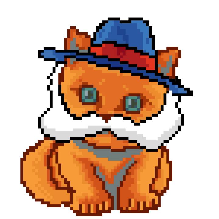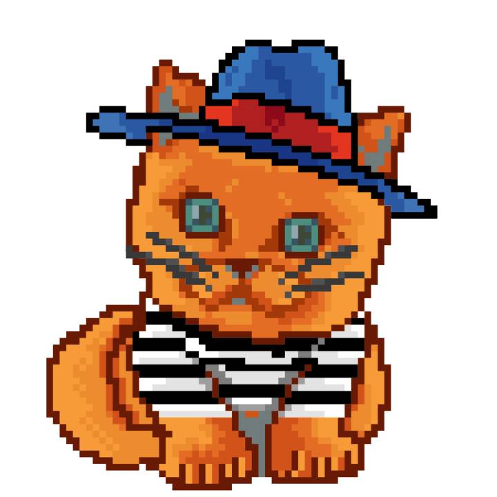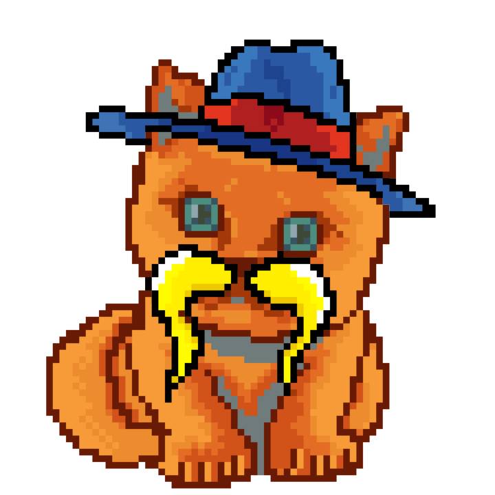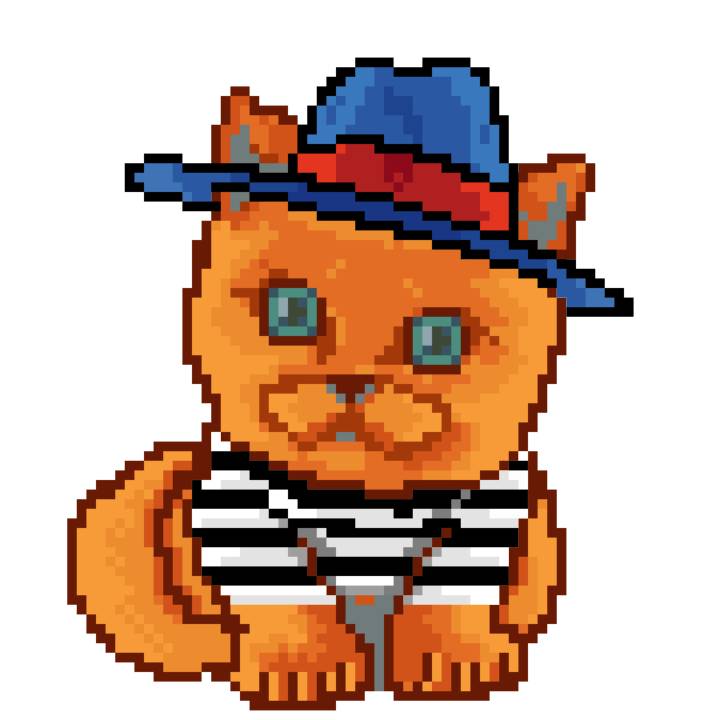 | Ashy Flashy Cat #10 | 1446 | Orange | Bowler | Victorian beard | General Top | View Image | View CatPage | View Opensea open_in_new |