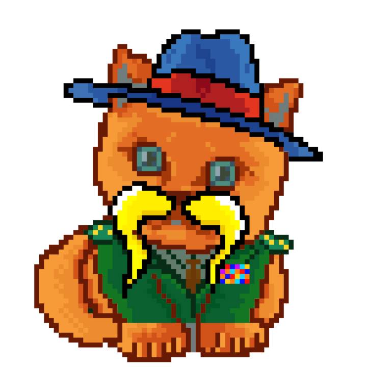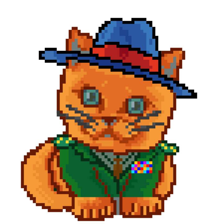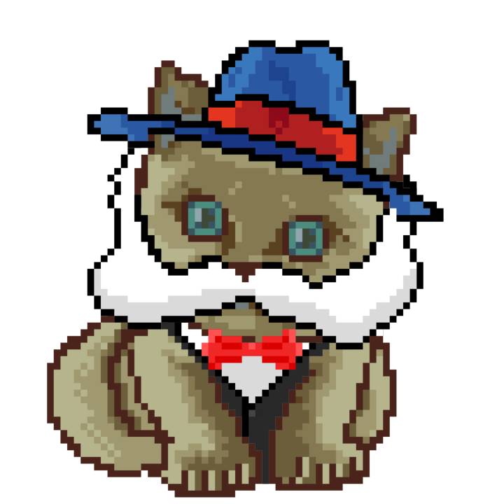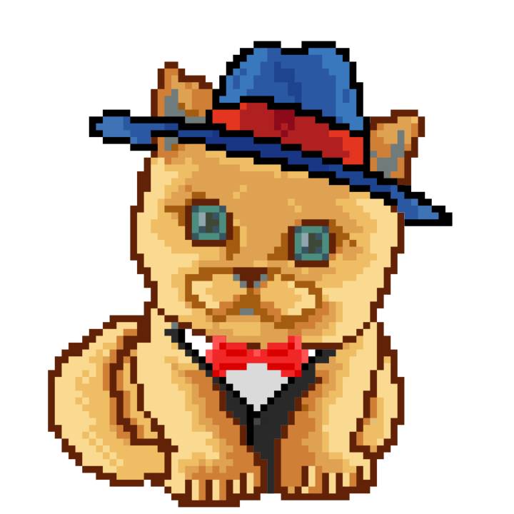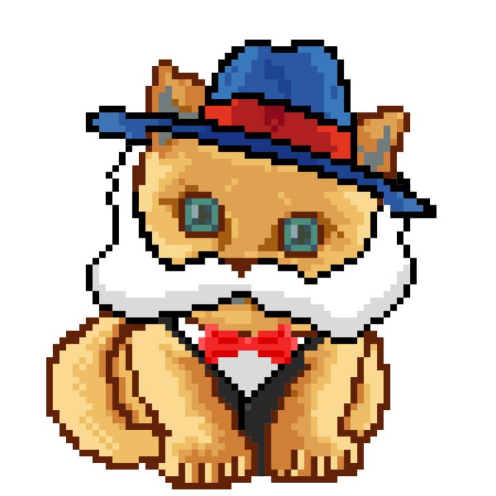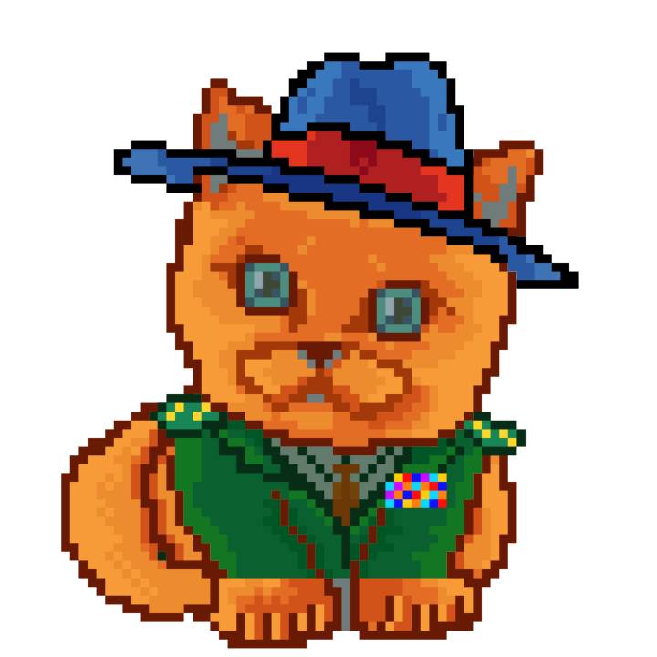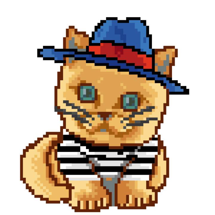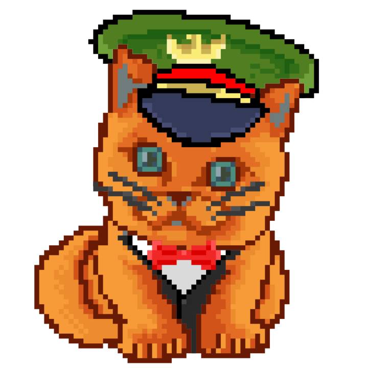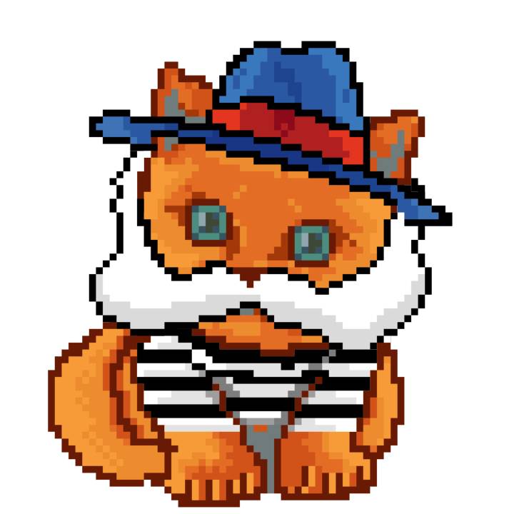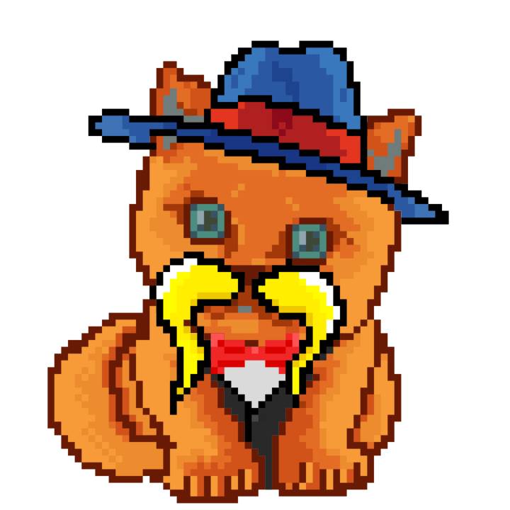 | Ashy Flashy Cat #10 | 1446 | Orange | Bowler | Victorian beard | General Top | View Image | View CatPage | View Opensea open_in_new |