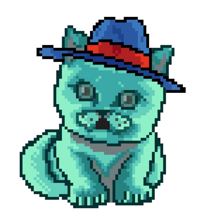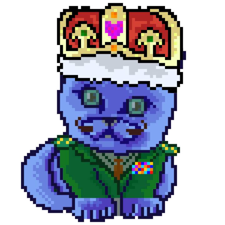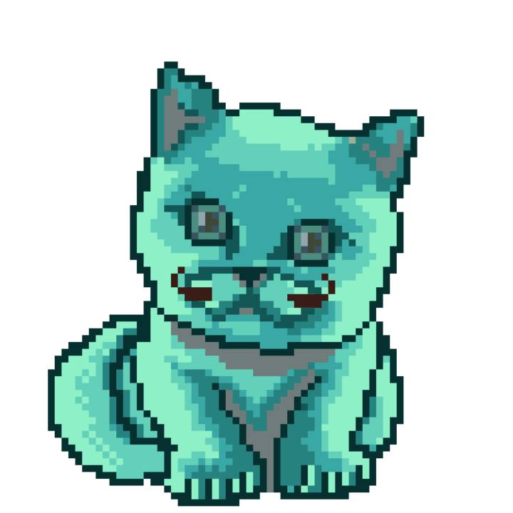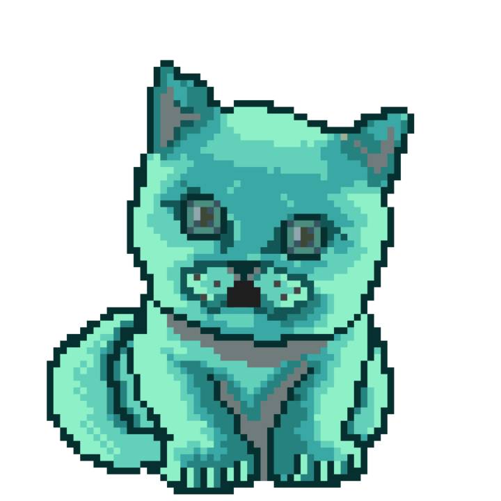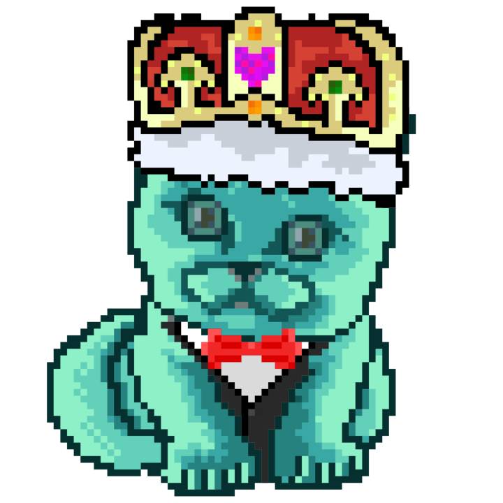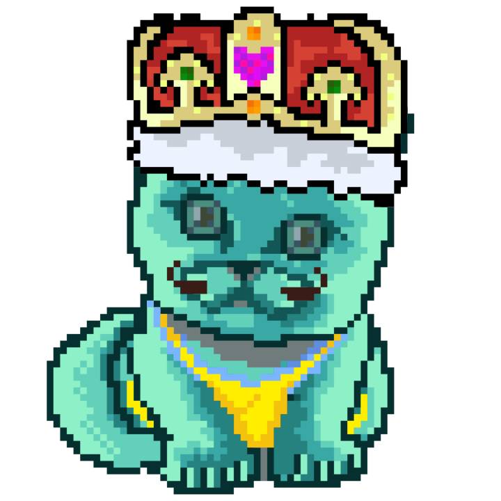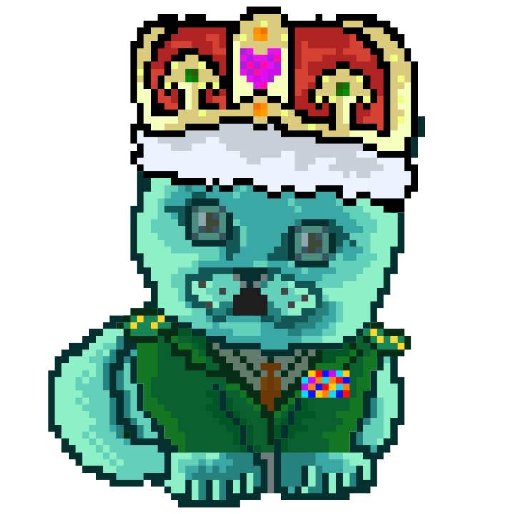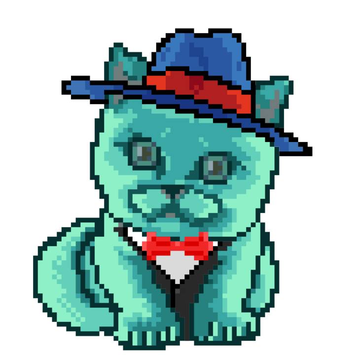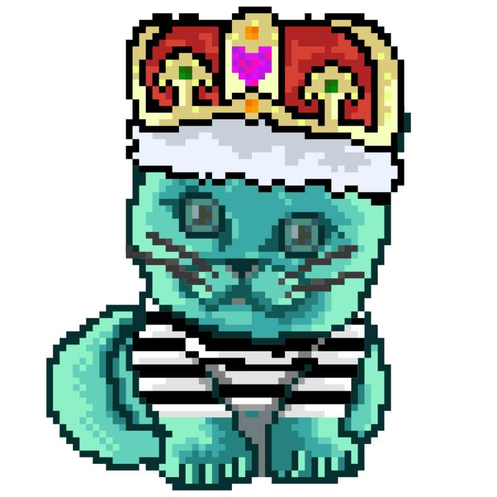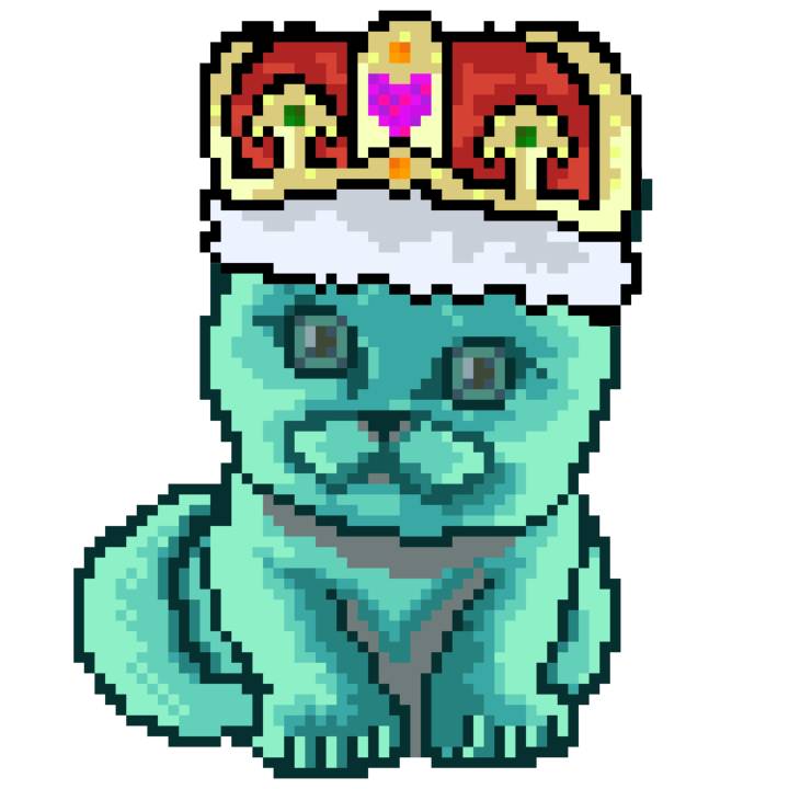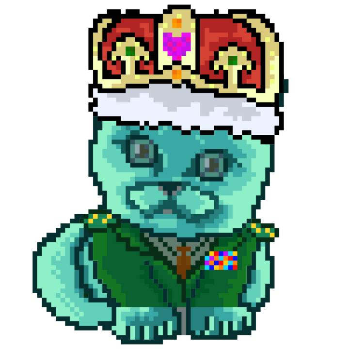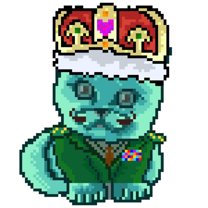 | Ashy Flashy Cat #21 | 642 | Turquoise | Crown | Victorian beard | Wasket | View Image | View CatPage | View Opensea open_in_new |