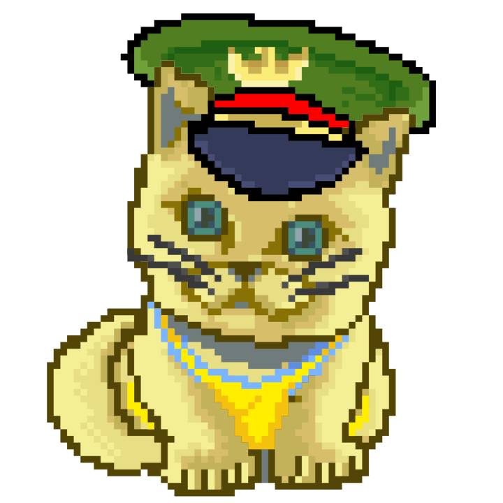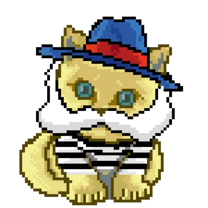 | Ashy Flashy Cat #1476 | 1027 | Light Yellow | Sombrero | Viking Mustache | Wasket | View Image | View CatPage | View Opensea open_in_new |