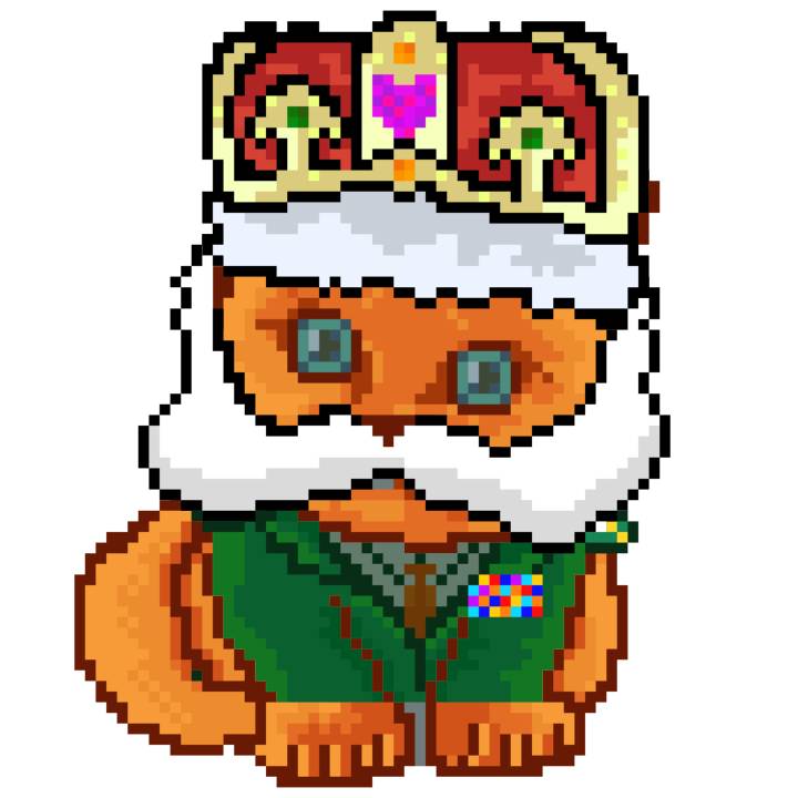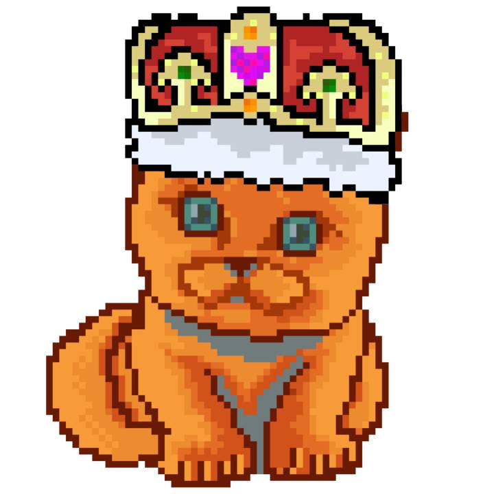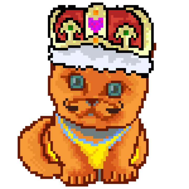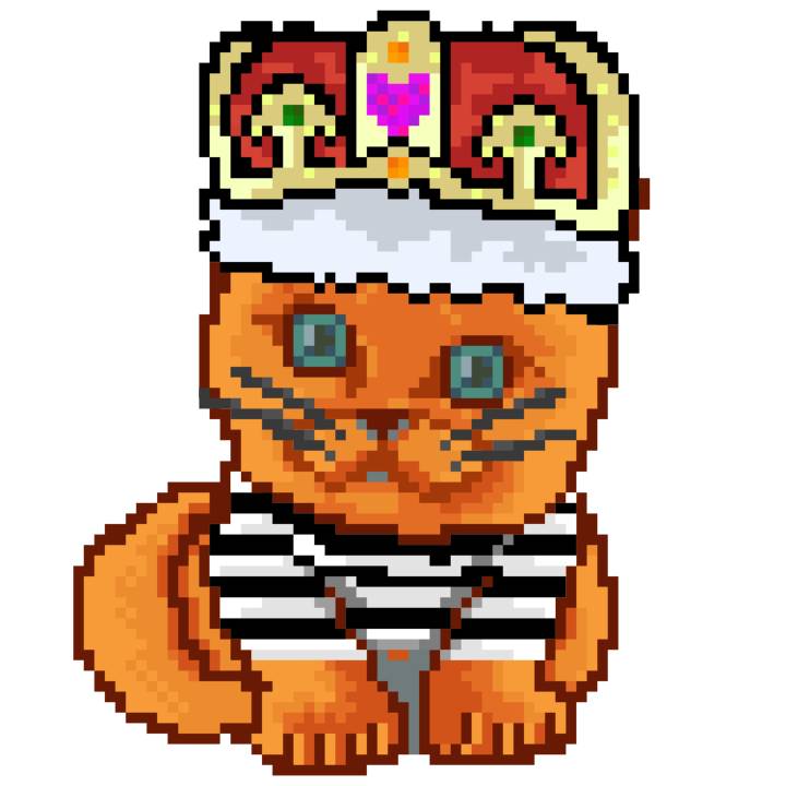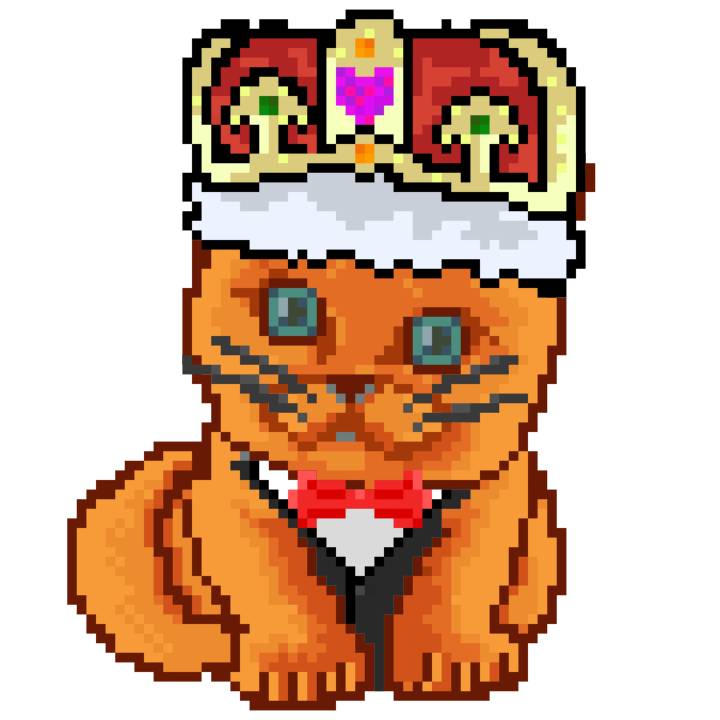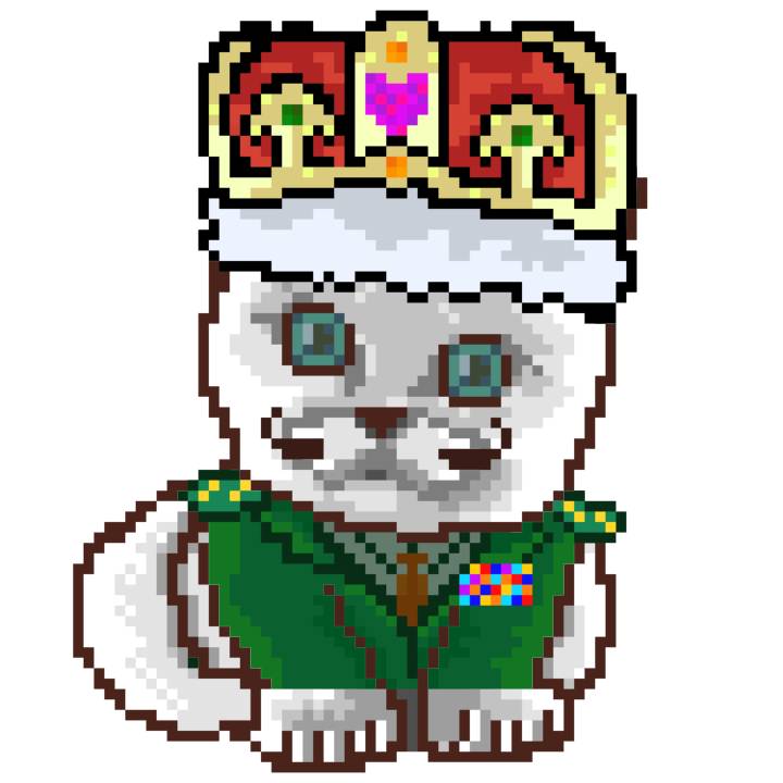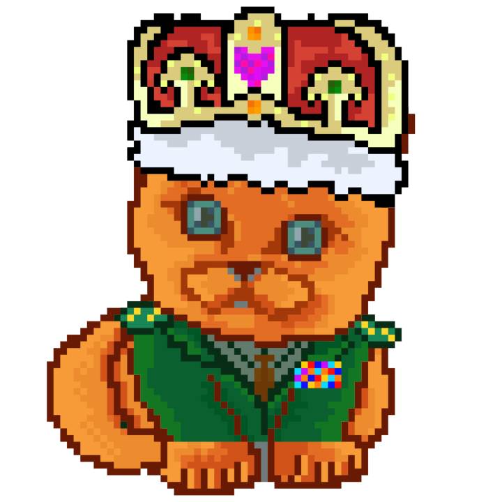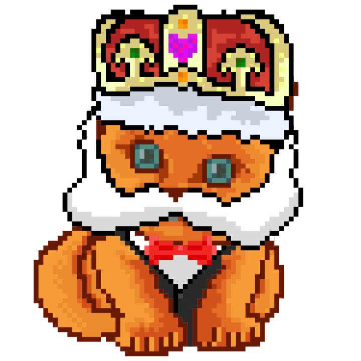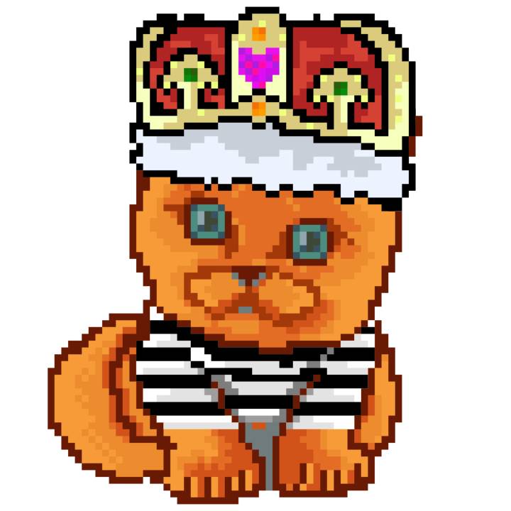 | Ashy Flashy Cat #1440 | 1323 | Orange | Crown | Victorian beard | No Uniform | View Image | View CatPage | View Opensea open_in_new |
