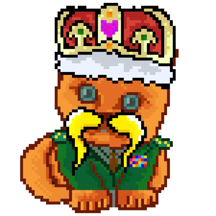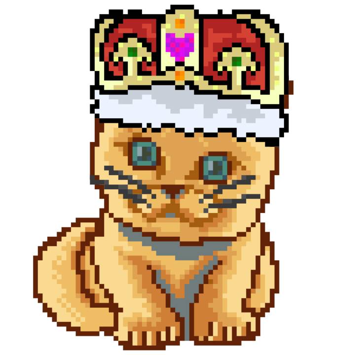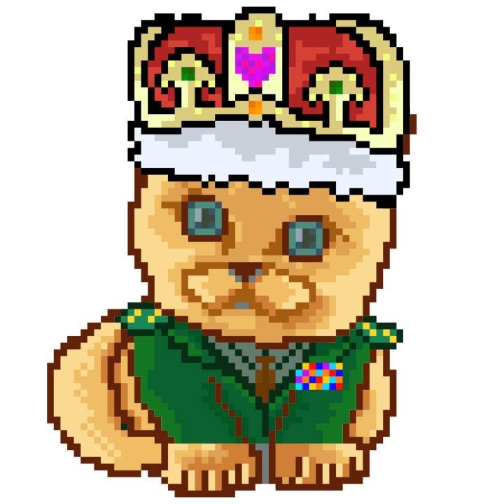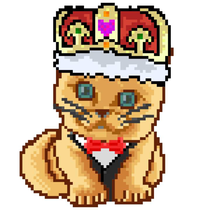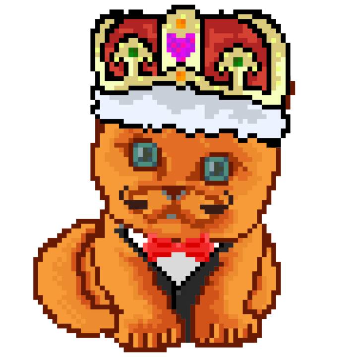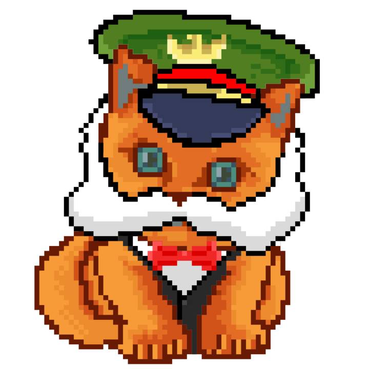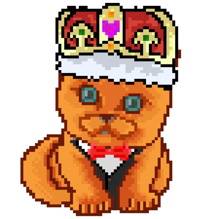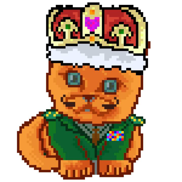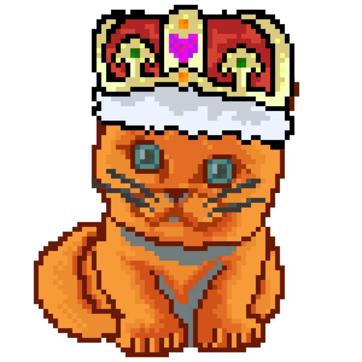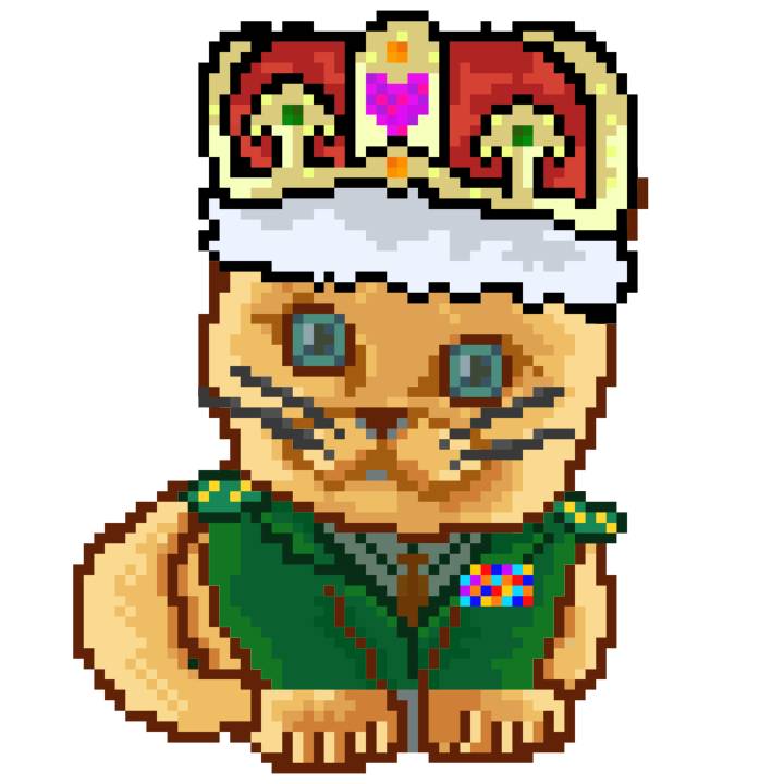 | Ashy Flashy Cat #1440 | 1323 | Orange | Crown | Victorian beard | No Uniform | View Image | View CatPage | View Opensea open_in_new |