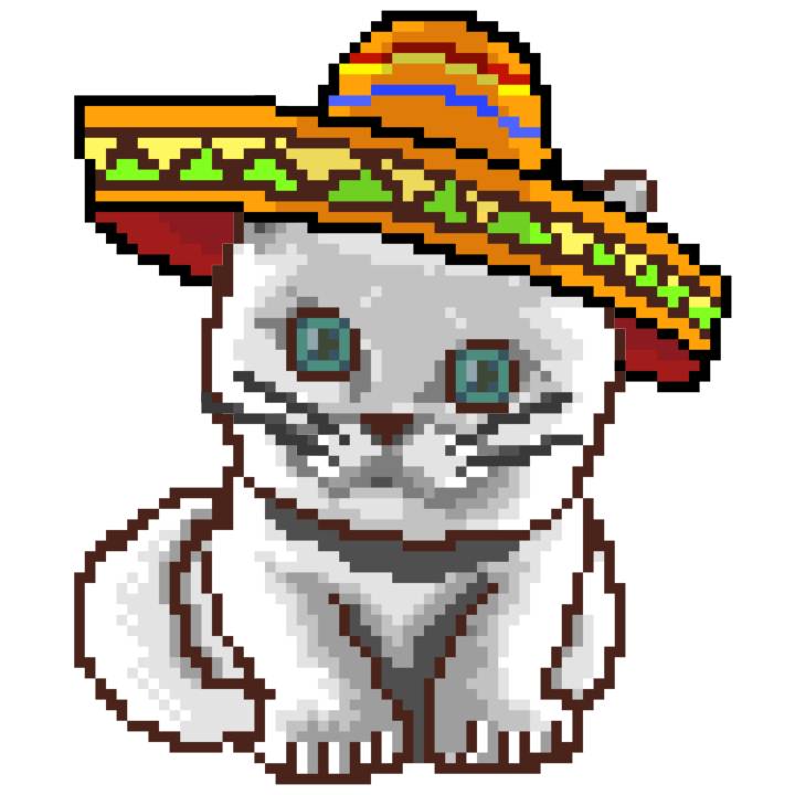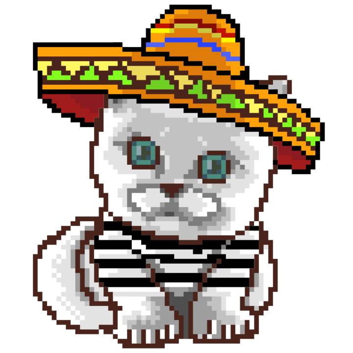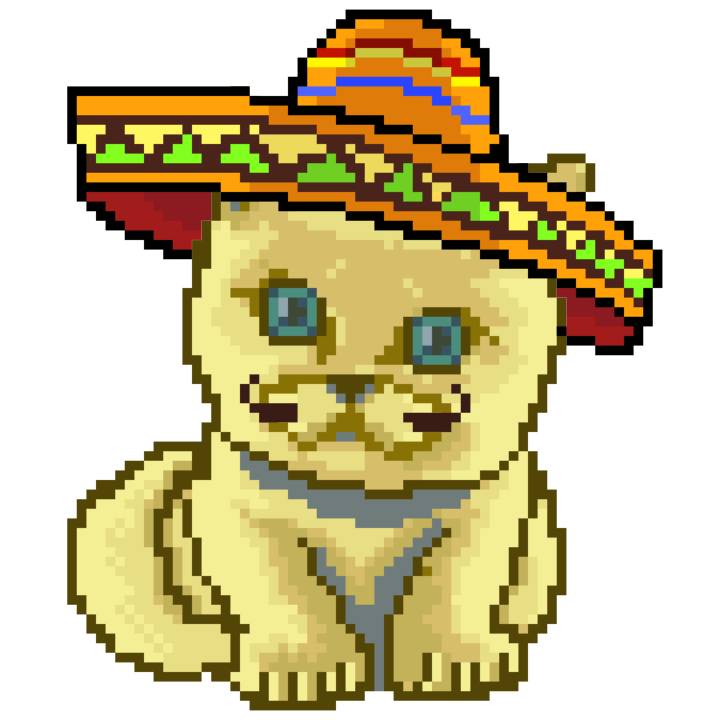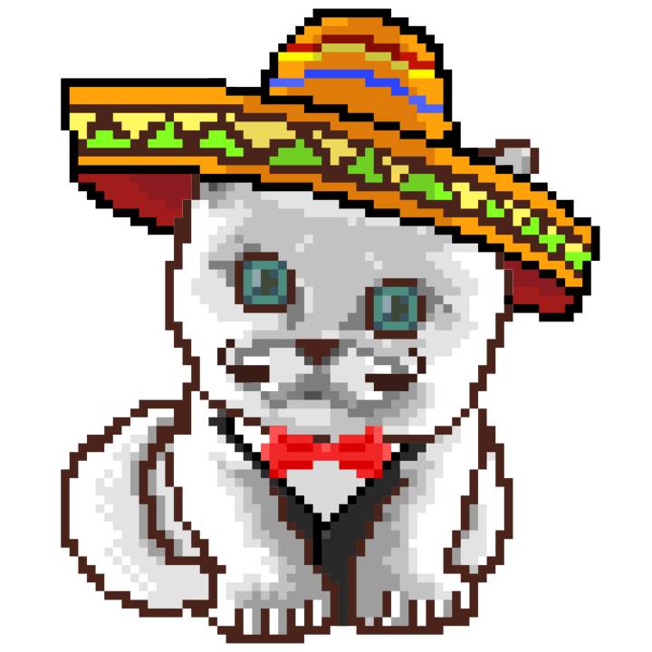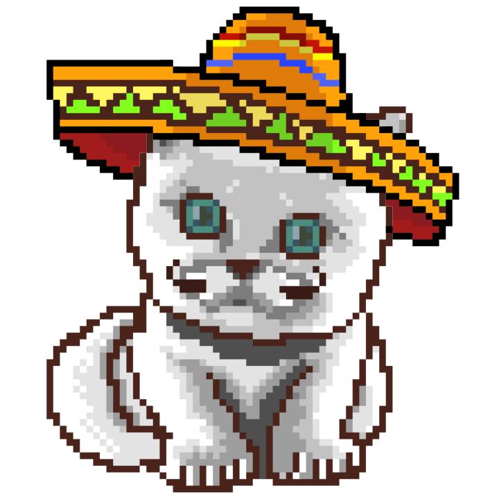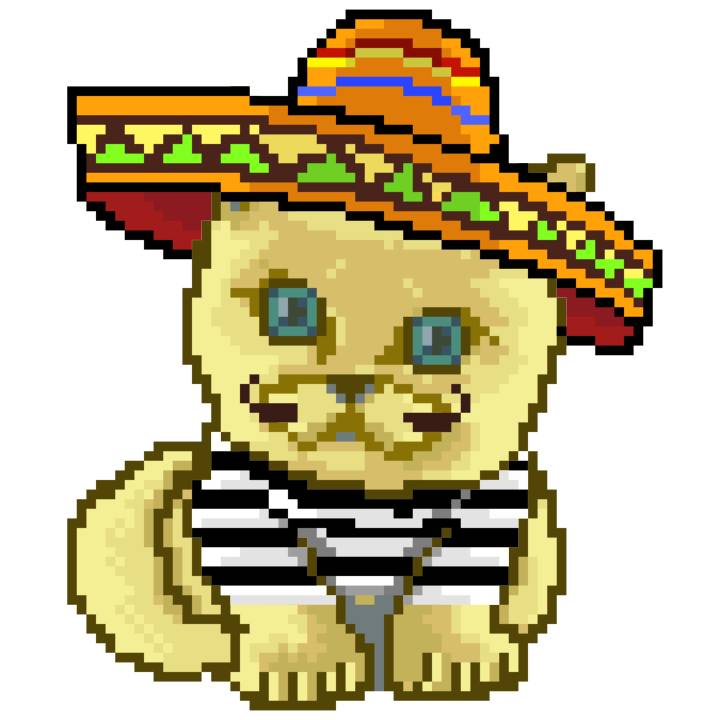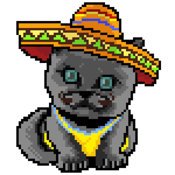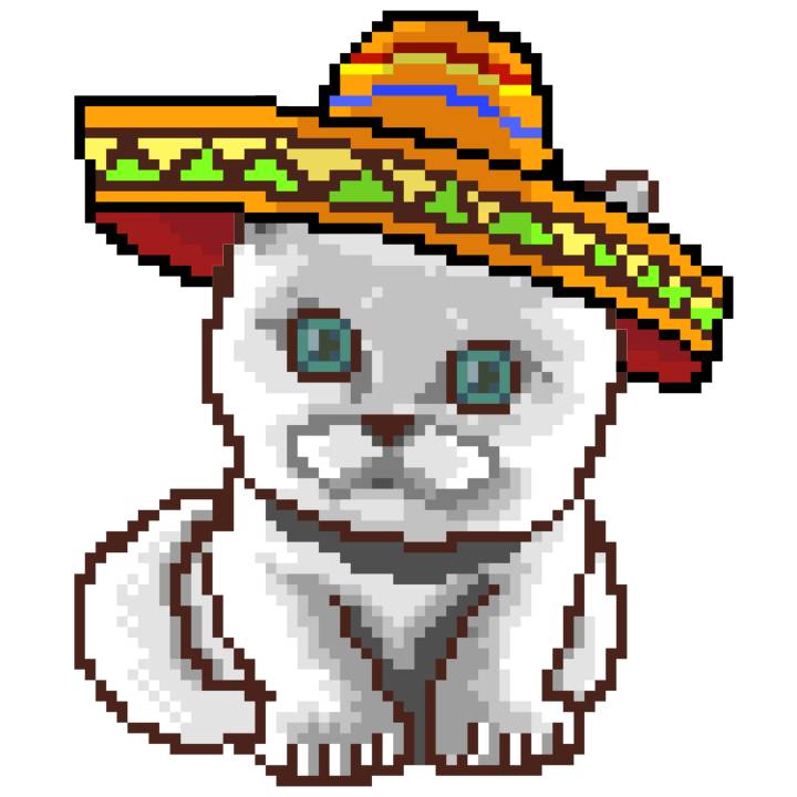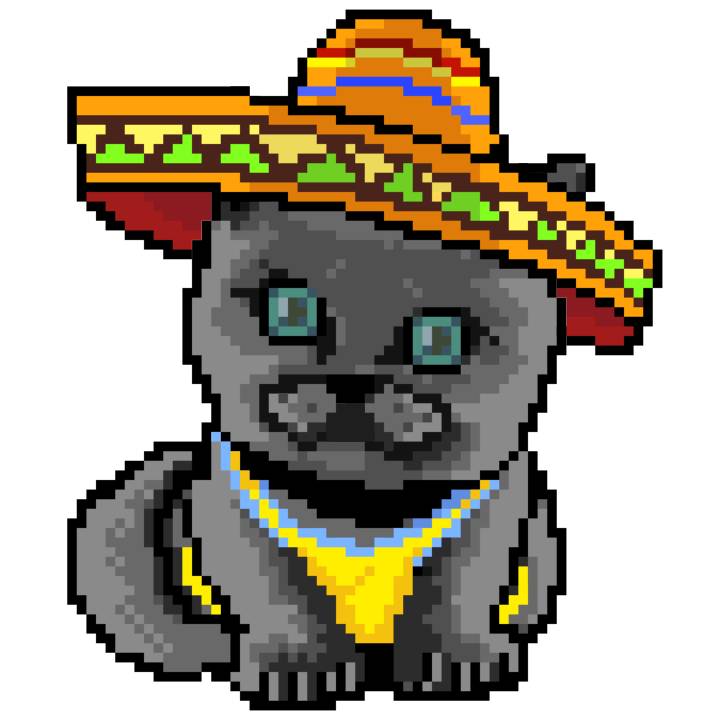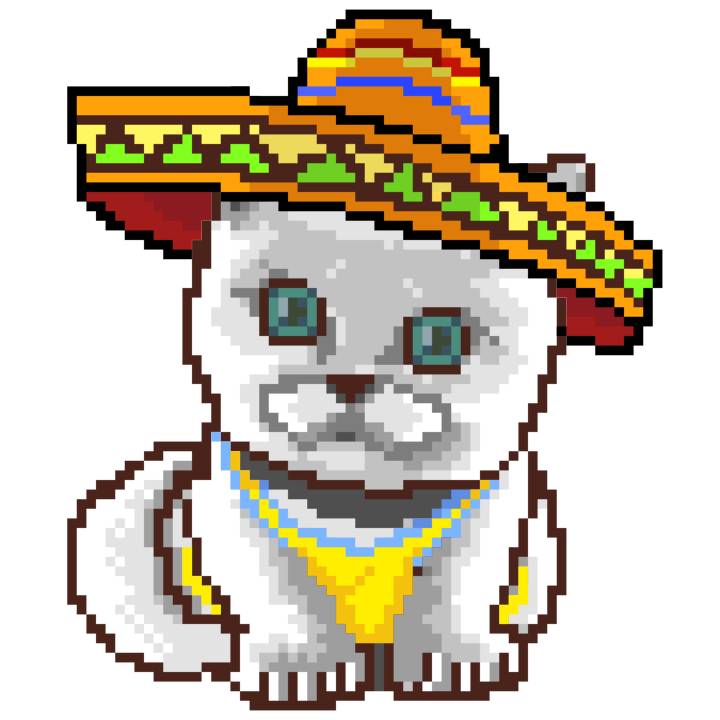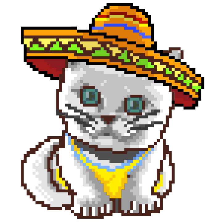 | Ashy Flashy Cat #41 | 1481 | Light Yellow | Sombrero | No Mustache | General Top | View Image | View CatPage | View Opensea open_in_new |