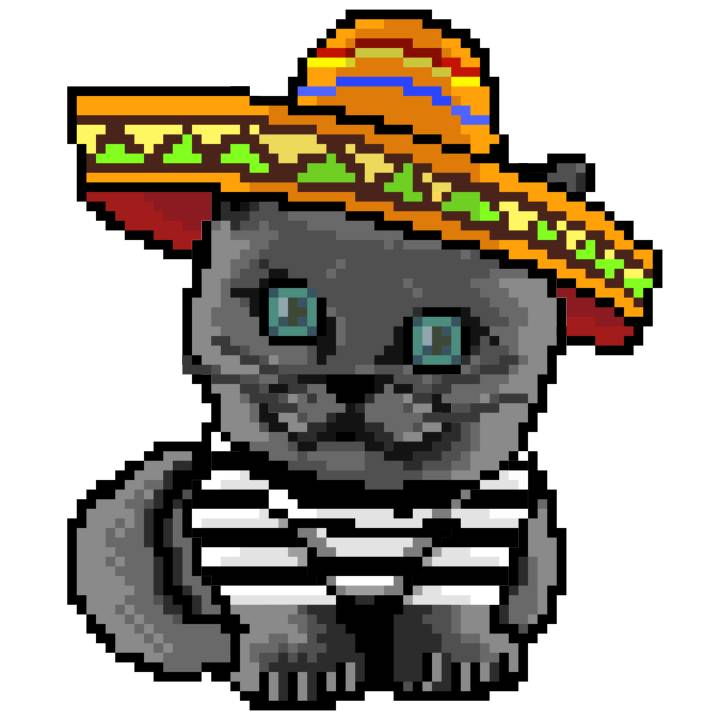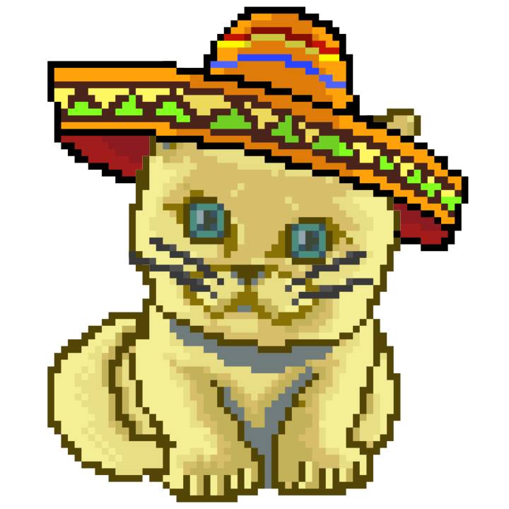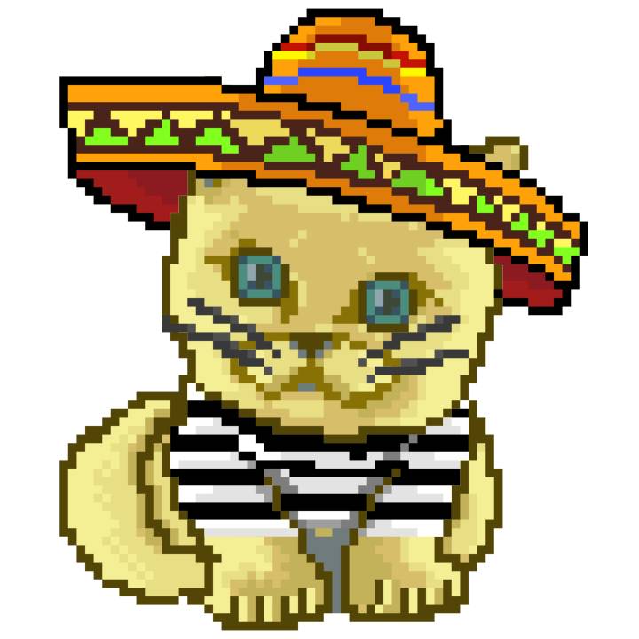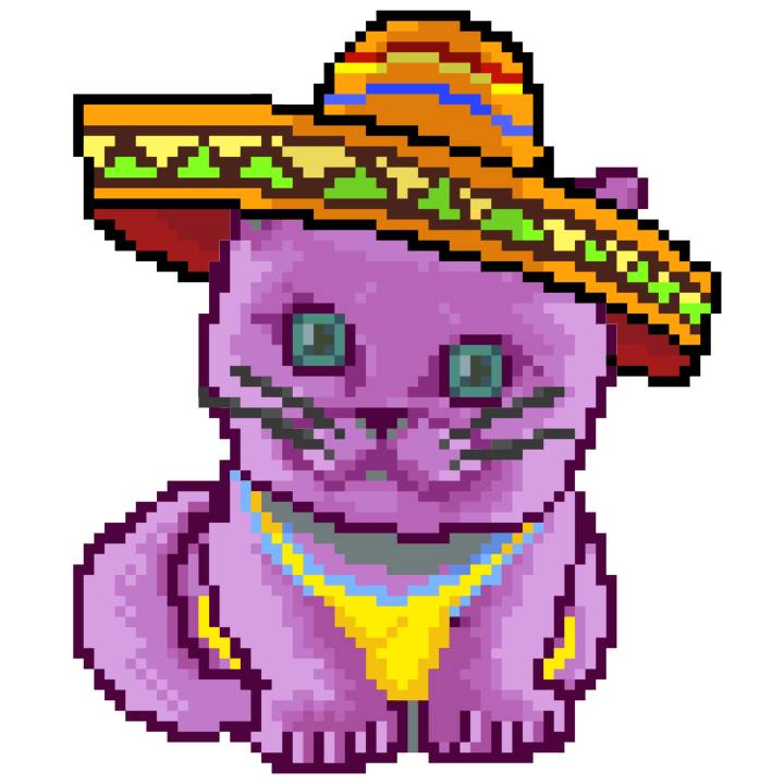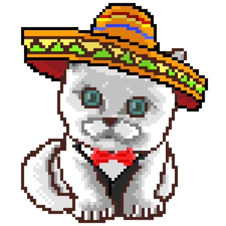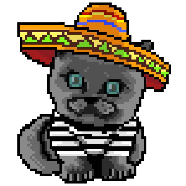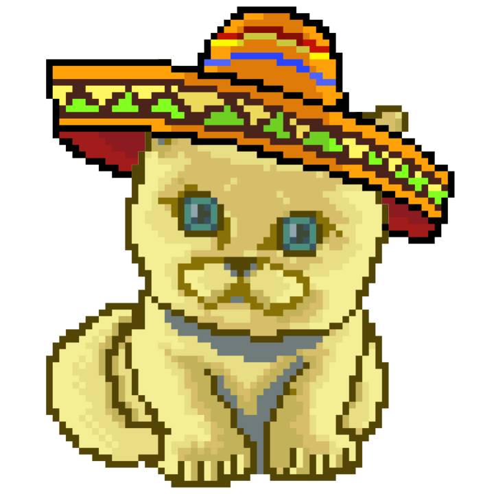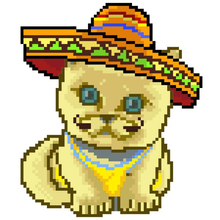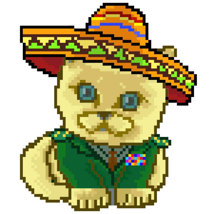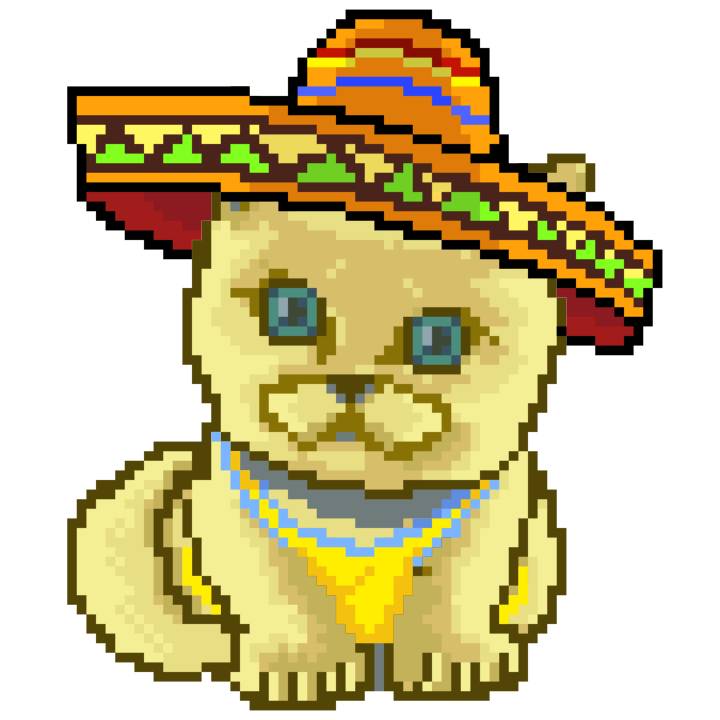 | Ashy Flashy Cat #41 | 1481 | Light Yellow | Sombrero | No Mustache | General Top | View Image | View CatPage | View Opensea open_in_new |