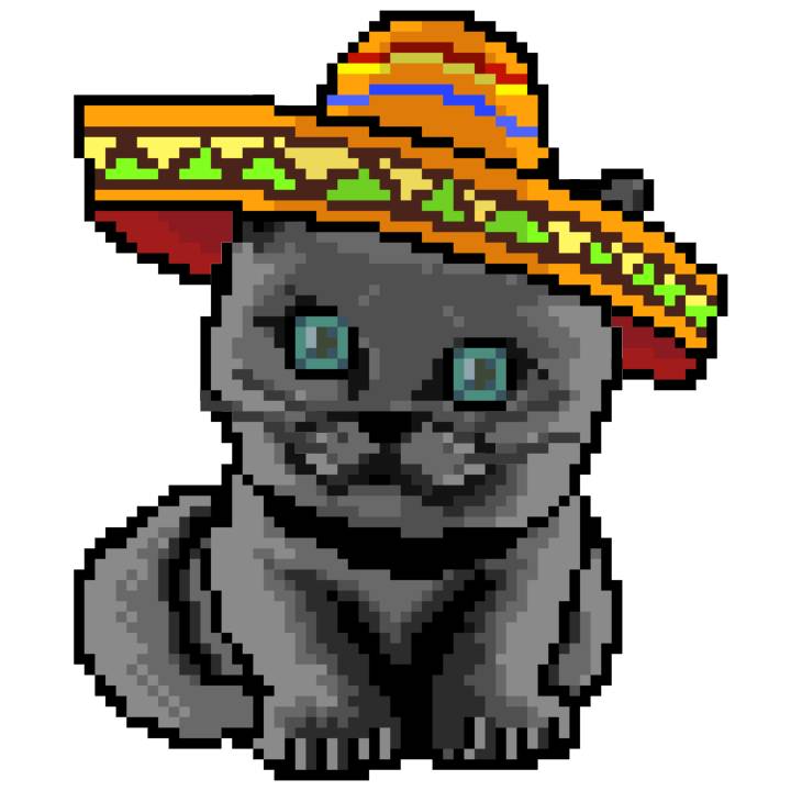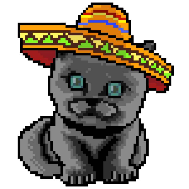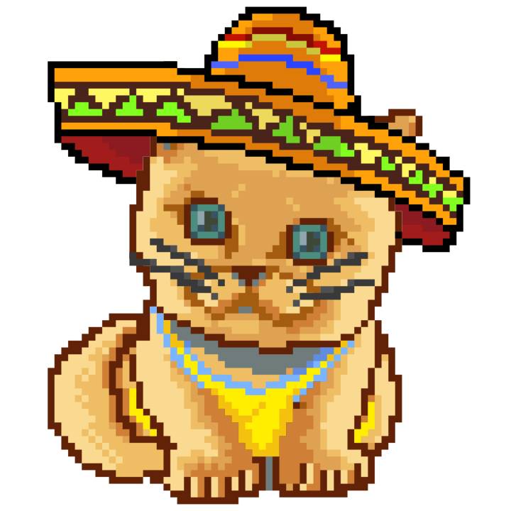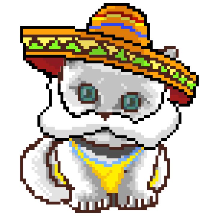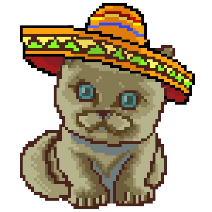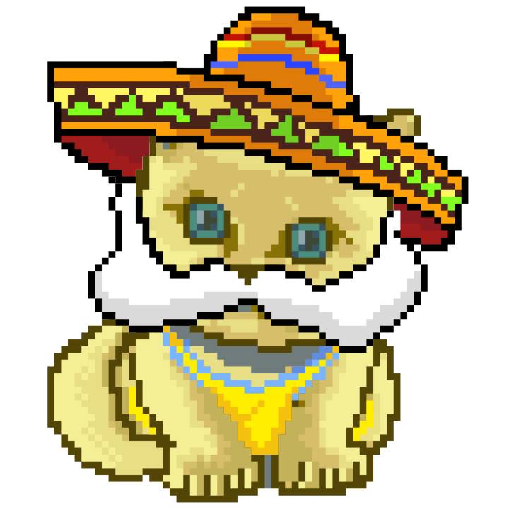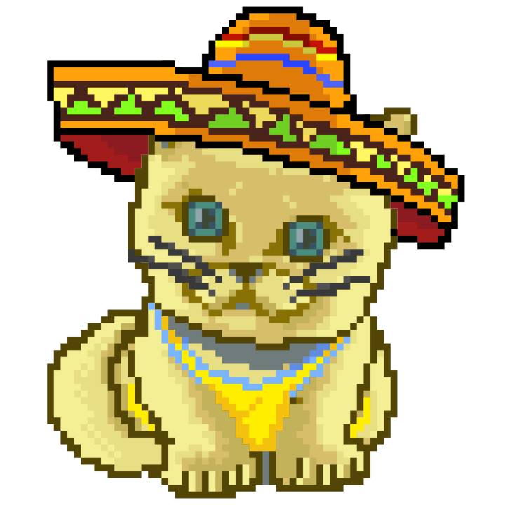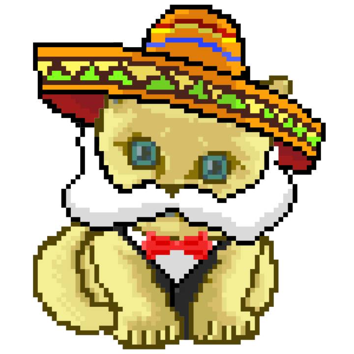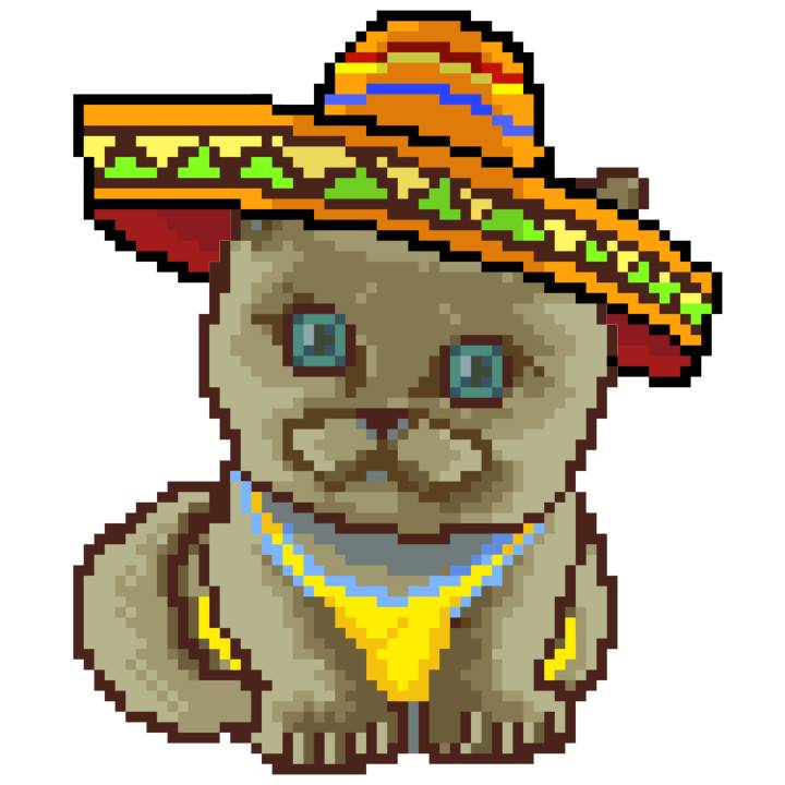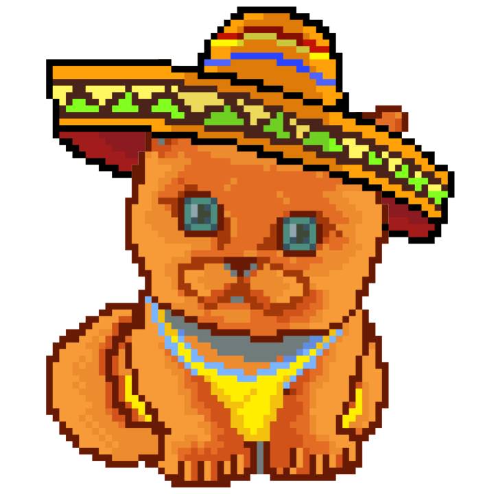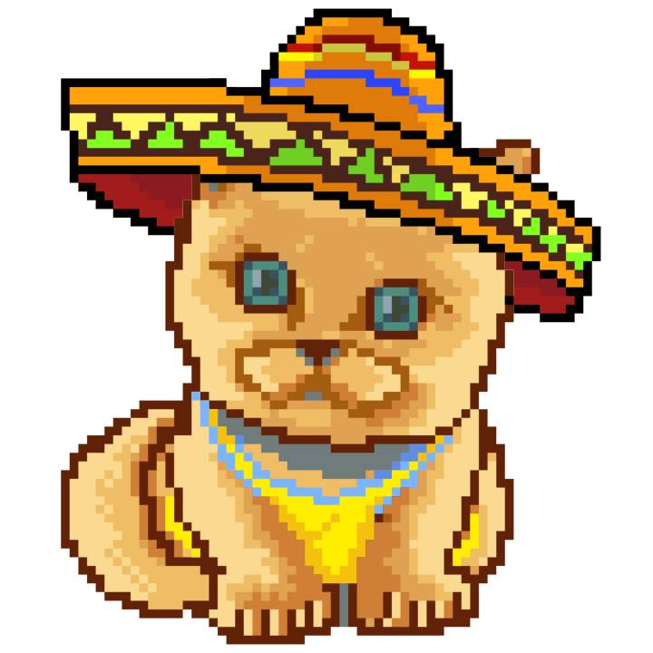 | Ashy Flashy Cat #41 | 1481 | Light Yellow | Sombrero | No Mustache | General Top | View Image | View CatPage | View Opensea open_in_new |