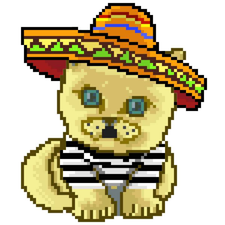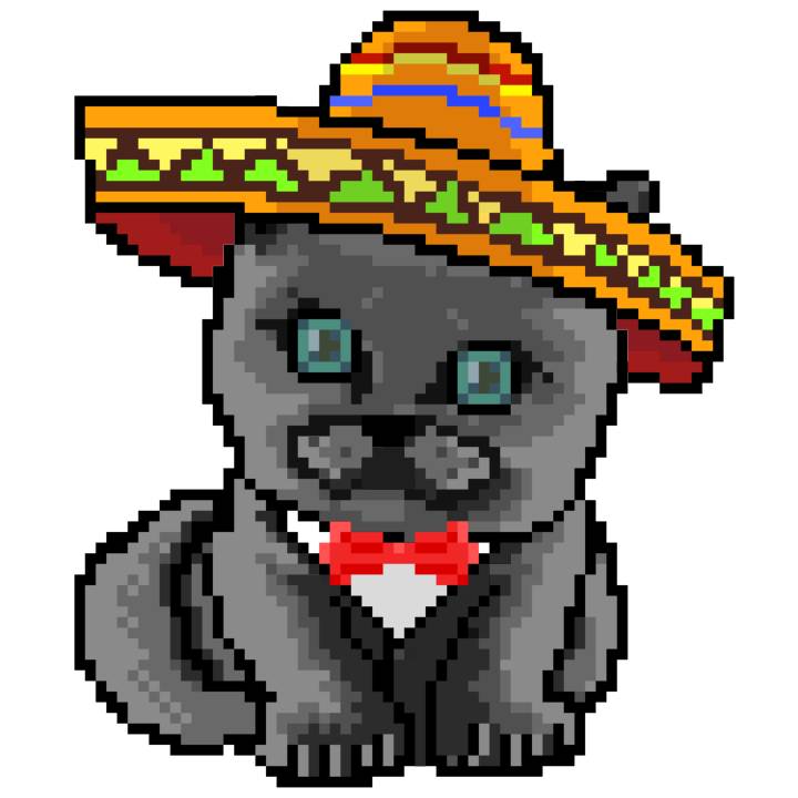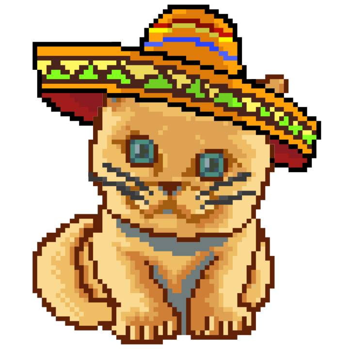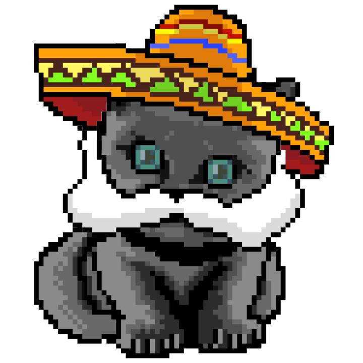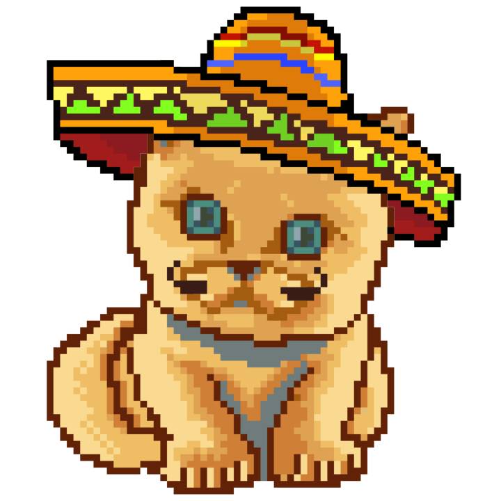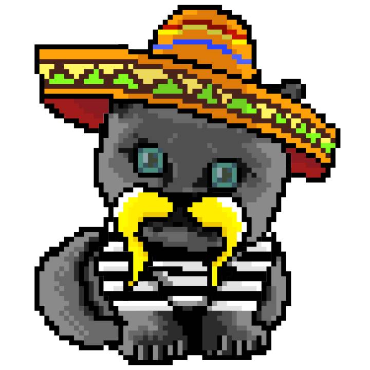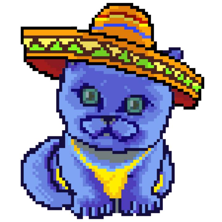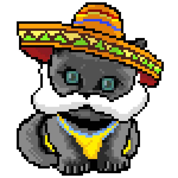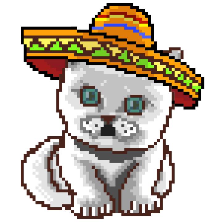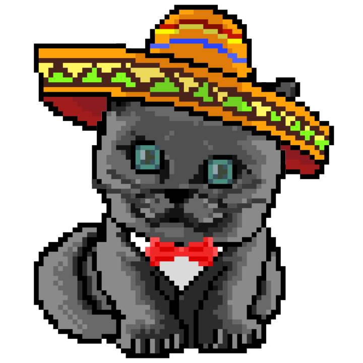 | Ashy Flashy Cat #41 | 1481 | Light Yellow | Sombrero | No Mustache | General Top | View Image | View CatPage | View Opensea open_in_new |