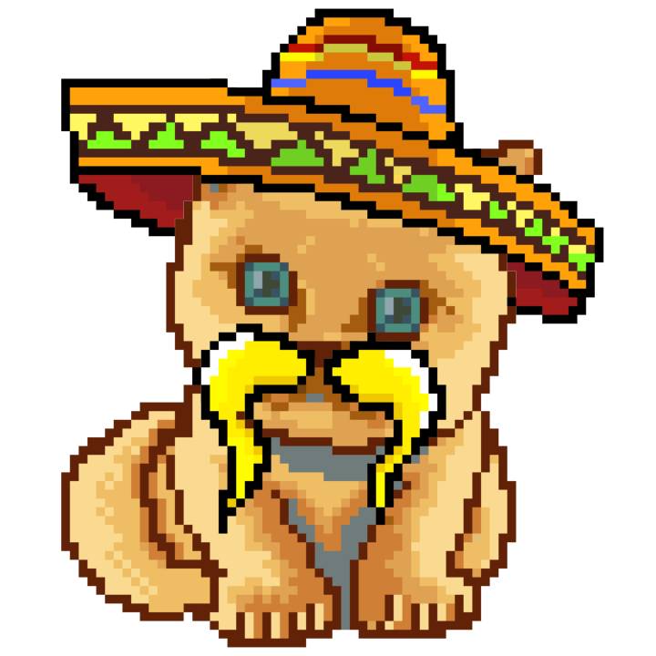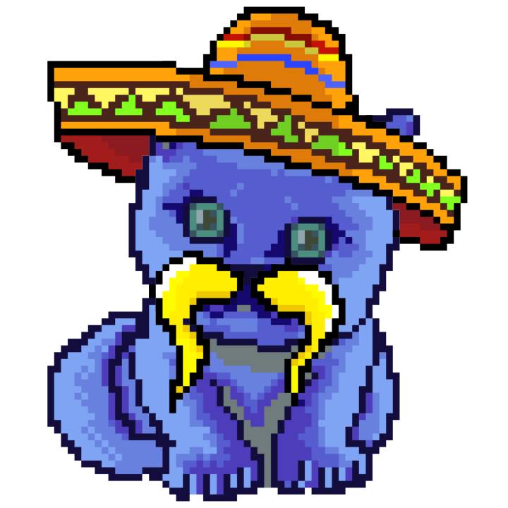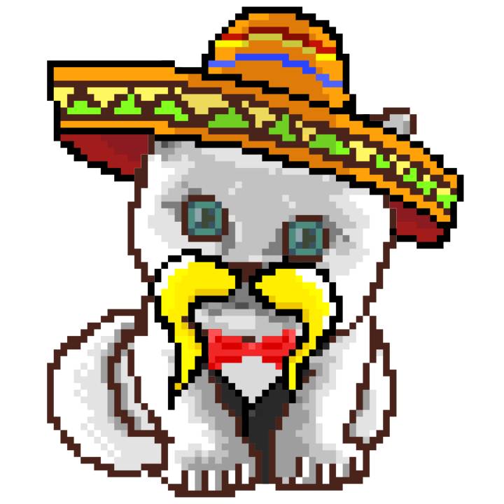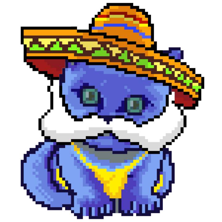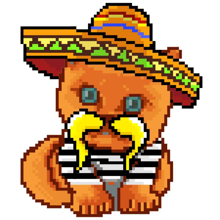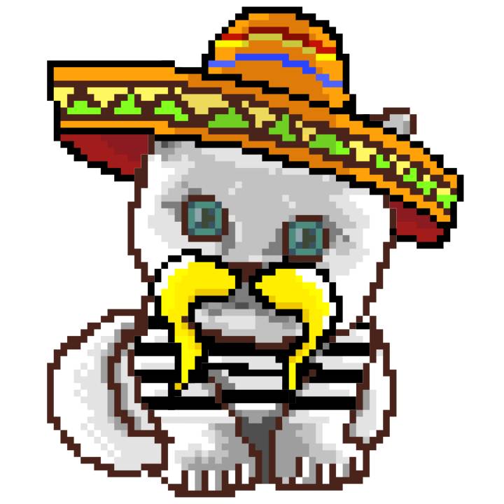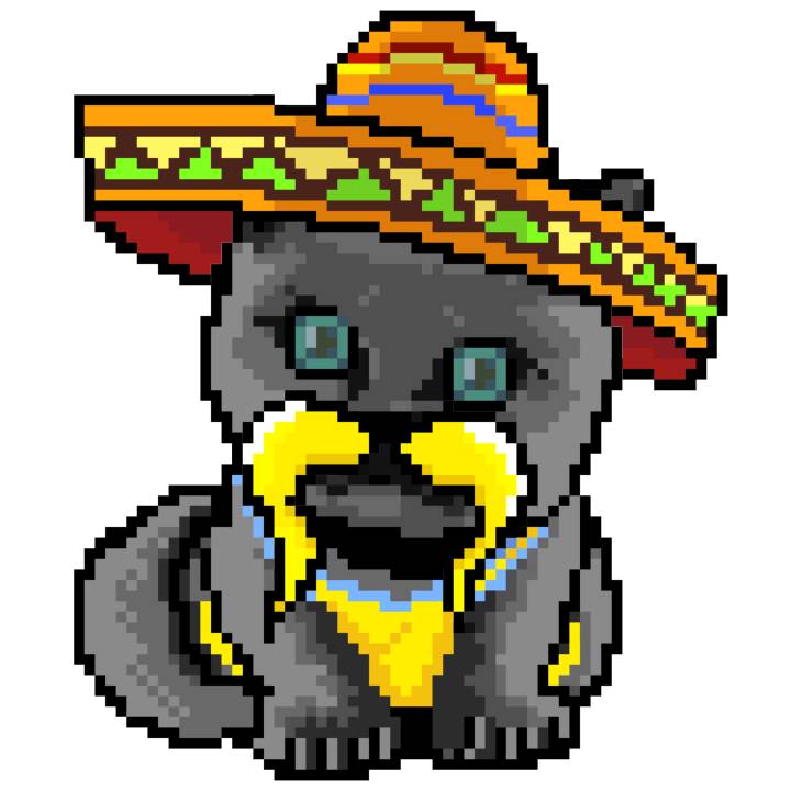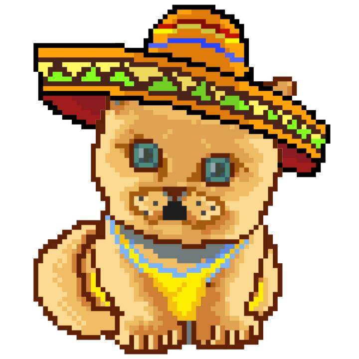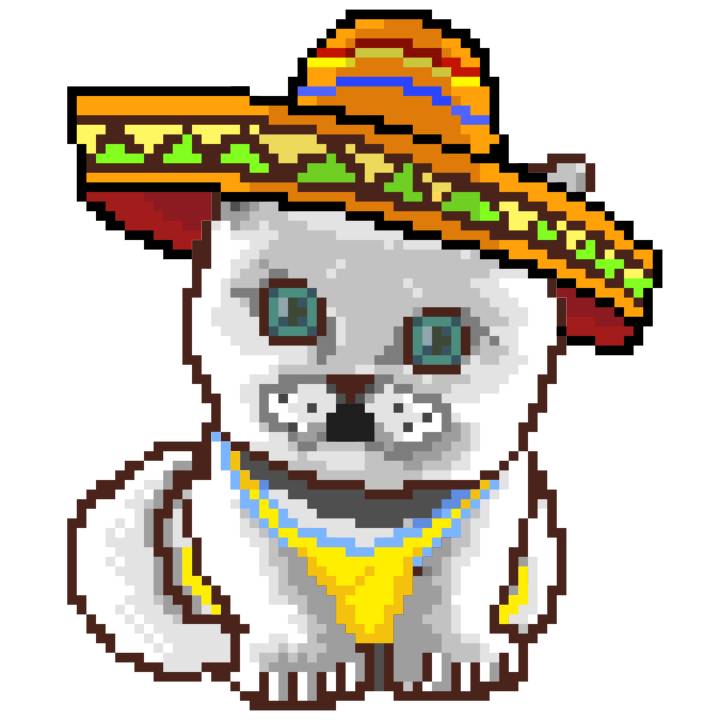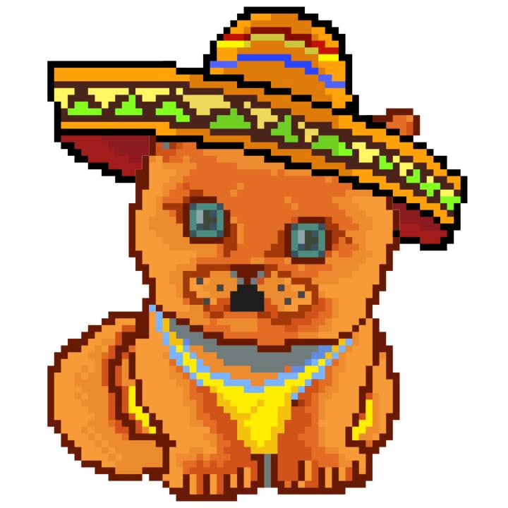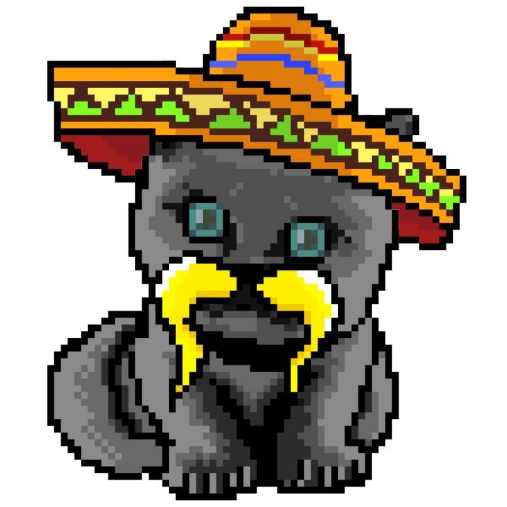 | Ashy Flashy Cat #41 | 1481 | Light Yellow | Sombrero | No Mustache | General Top | View Image | View CatPage | View Opensea open_in_new |