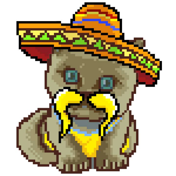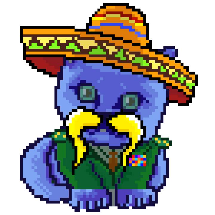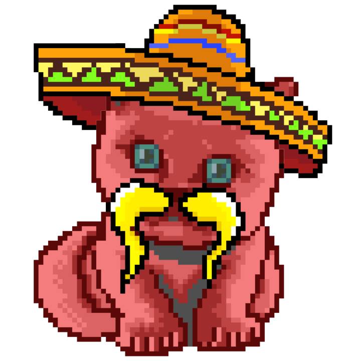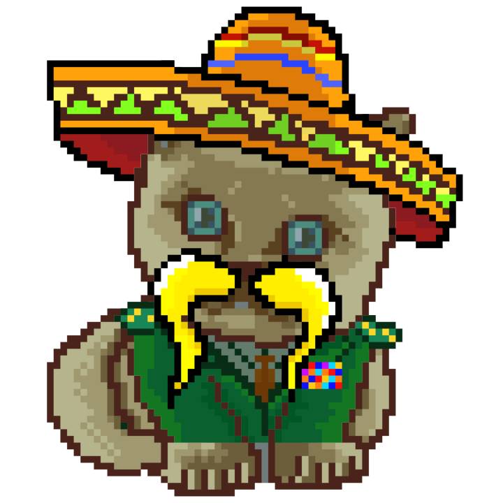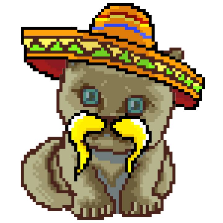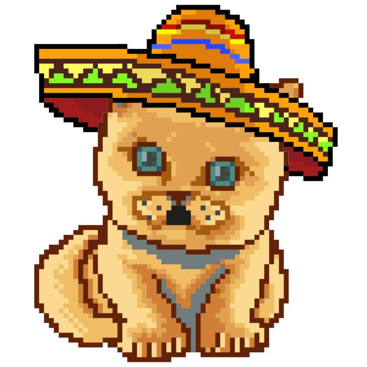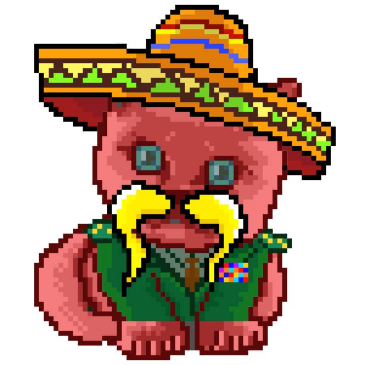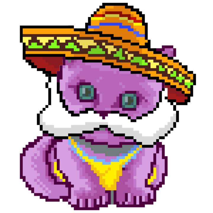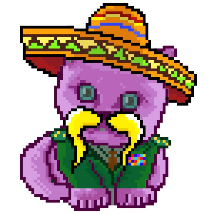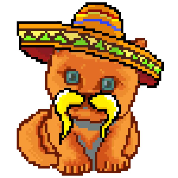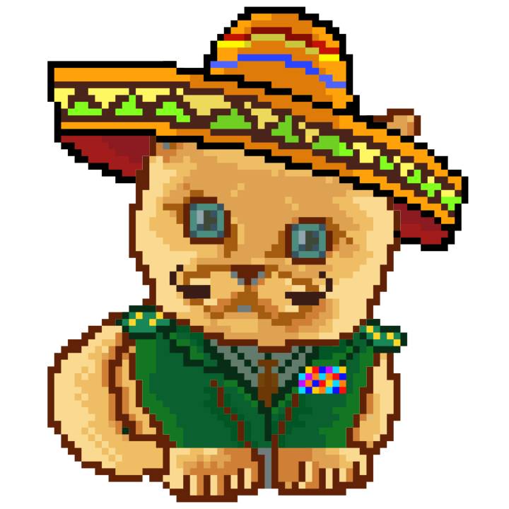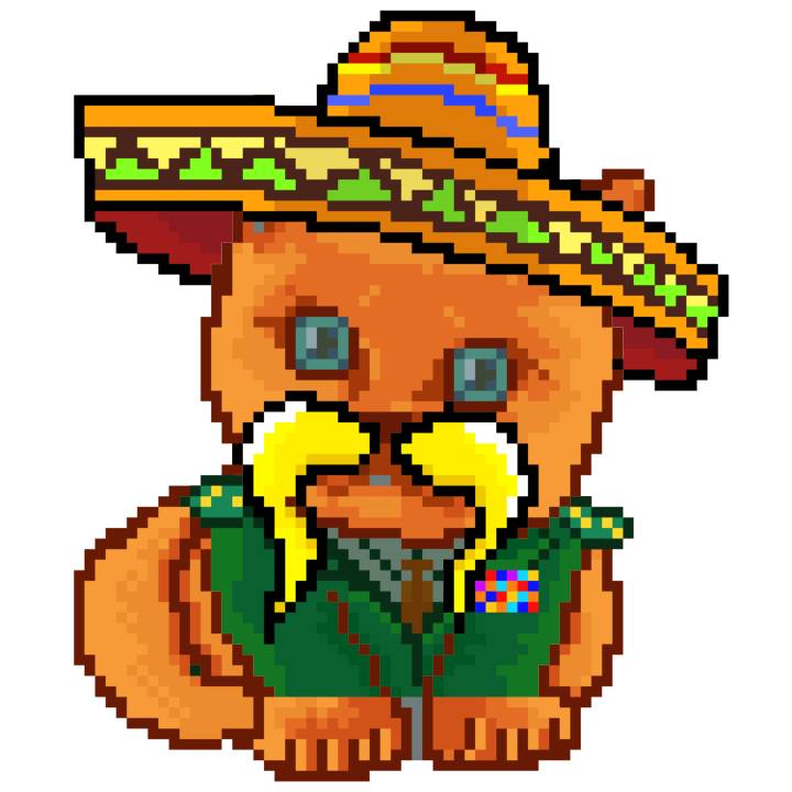 | Ashy Flashy Cat #52 | 570 | SandyBrown | Sombrero | Handlebar Mustache | General Top | View Image | View CatPage | View Opensea open_in_new |