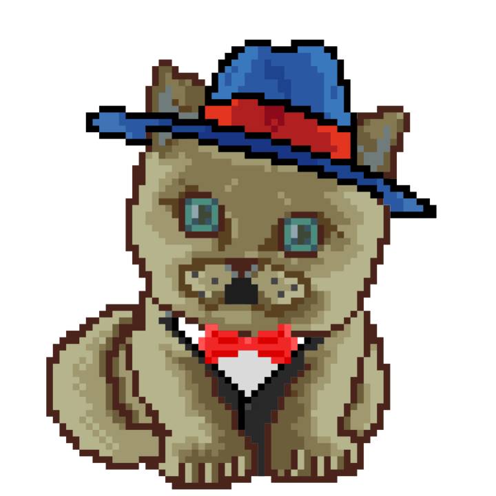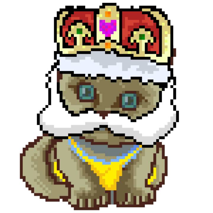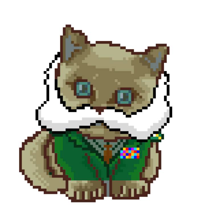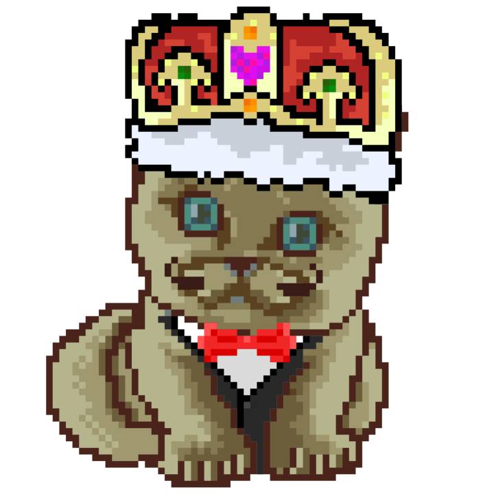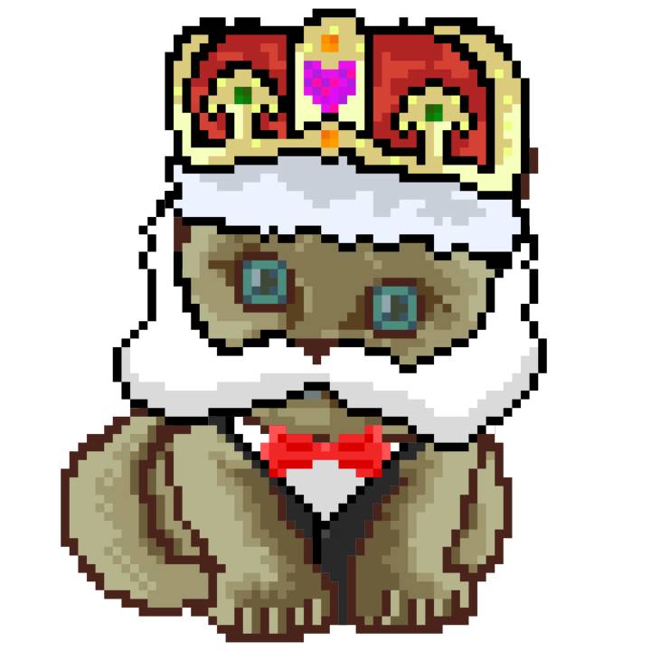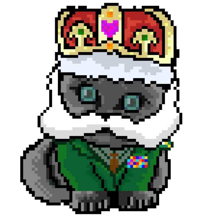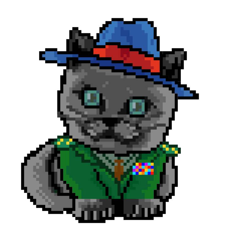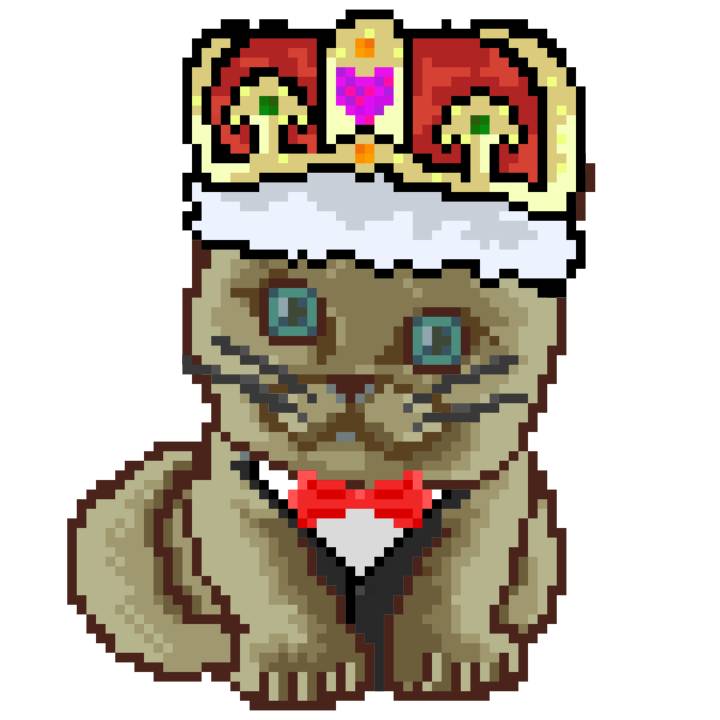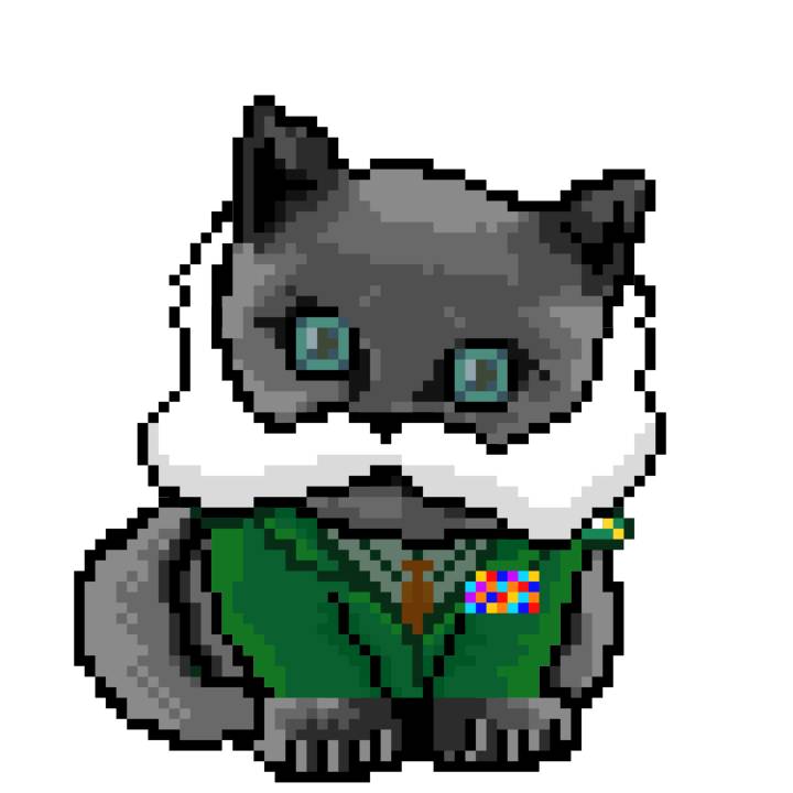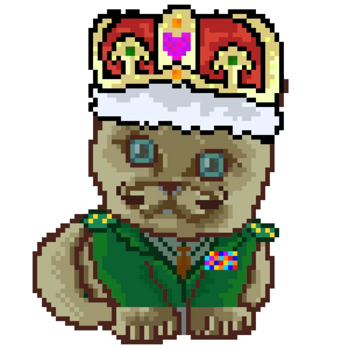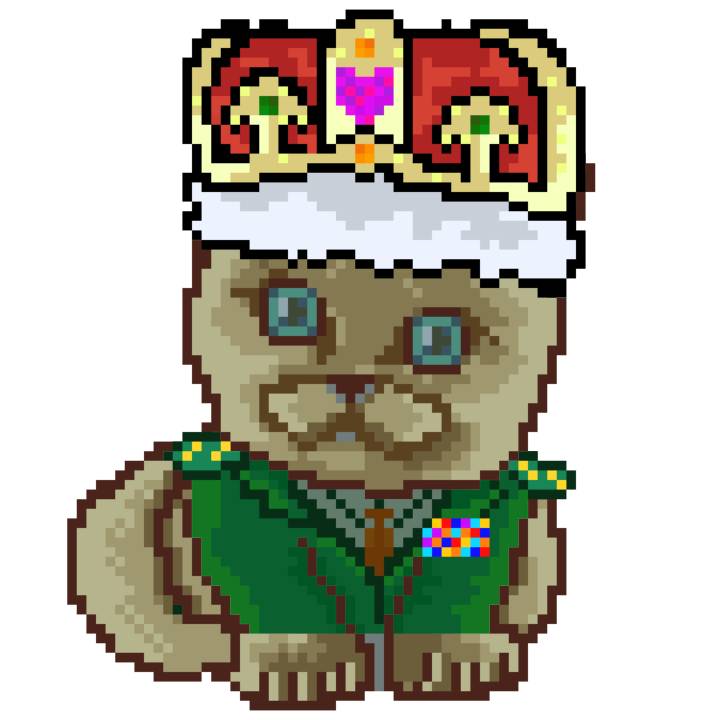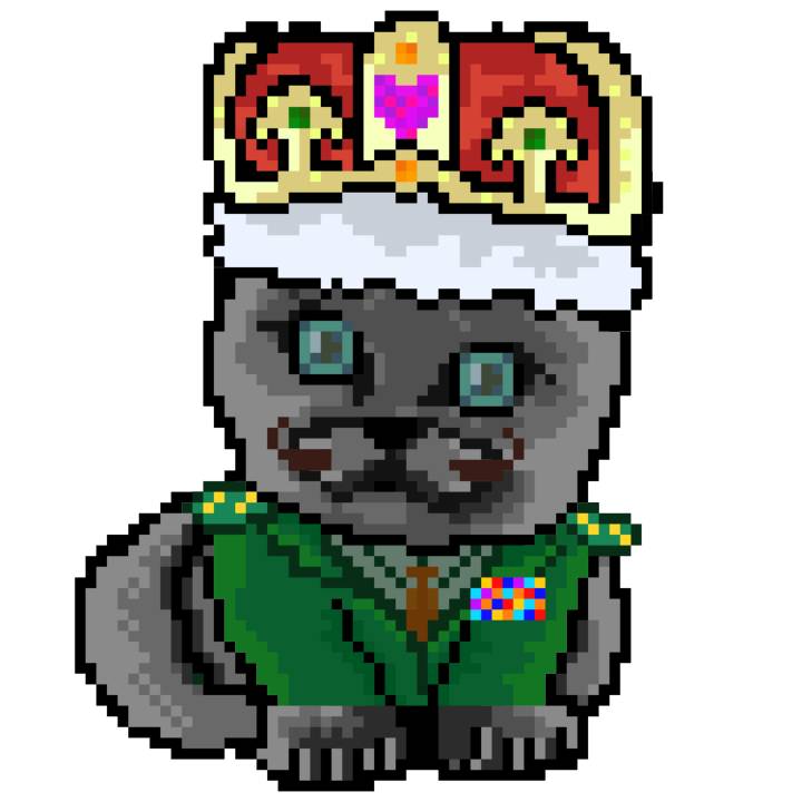 | Ashy Flashy Cat #1414 | 1027 | Brown | Crown | Victorian beard | General Top | View Image | View CatPage | View Opensea open_in_new |
