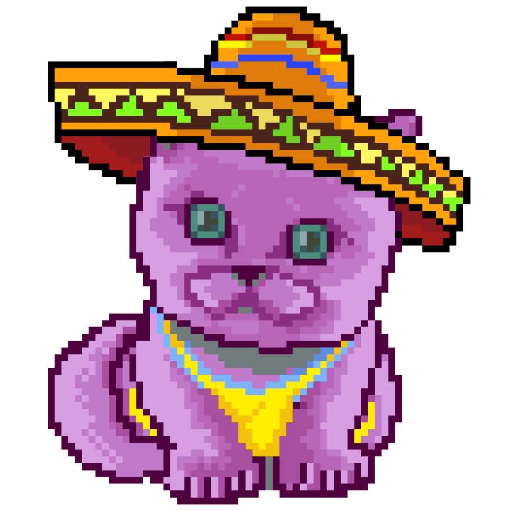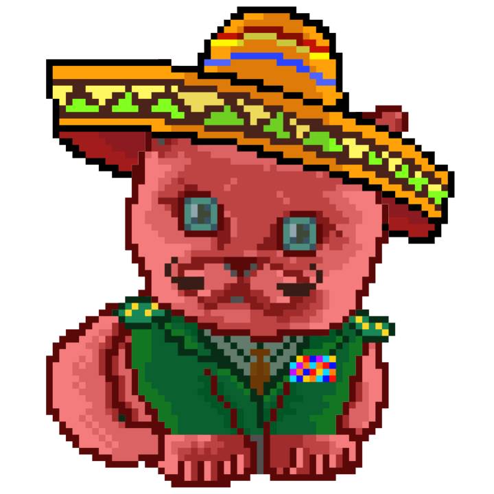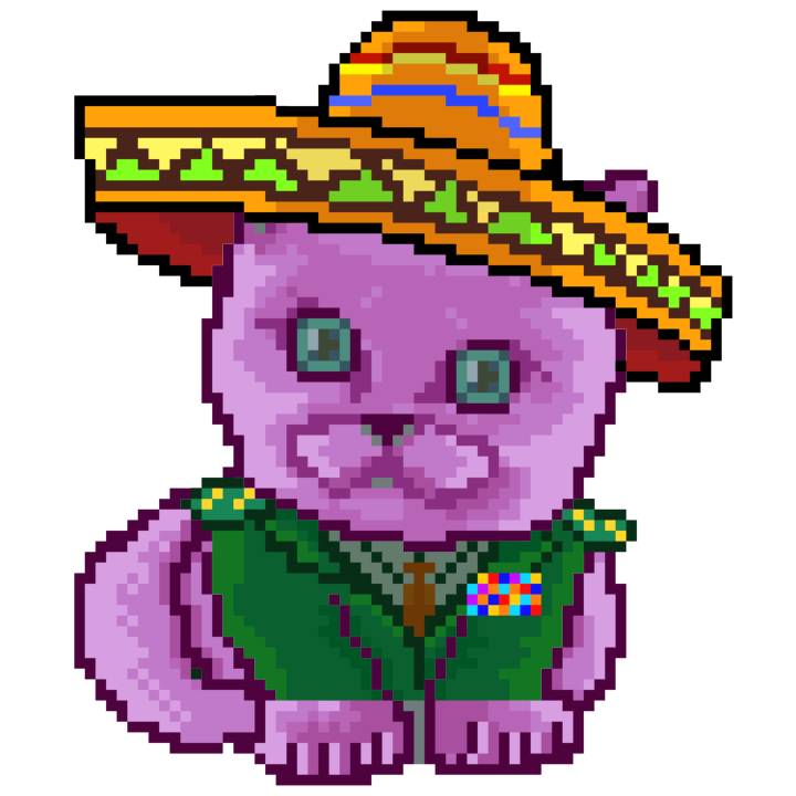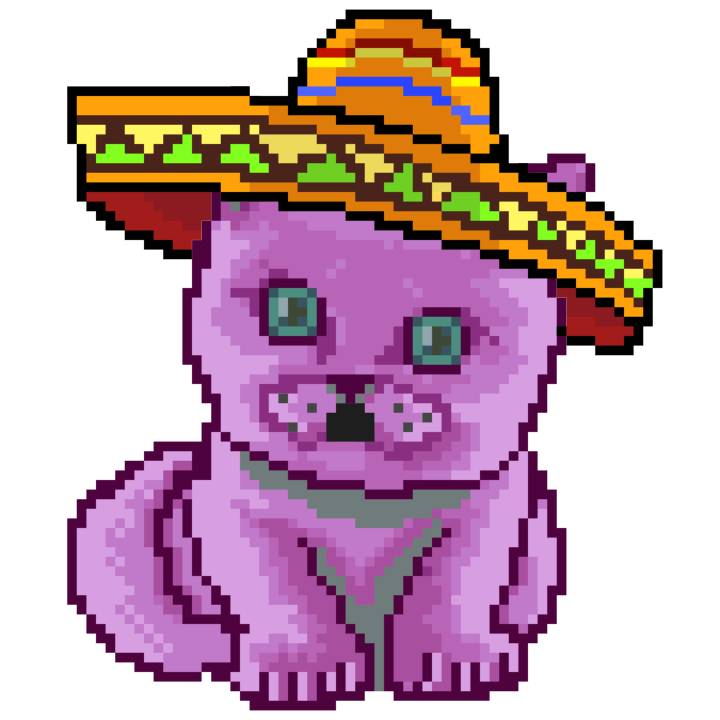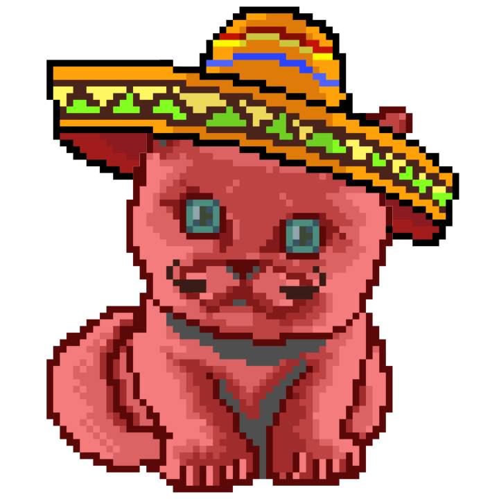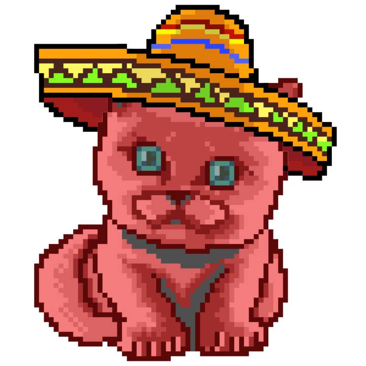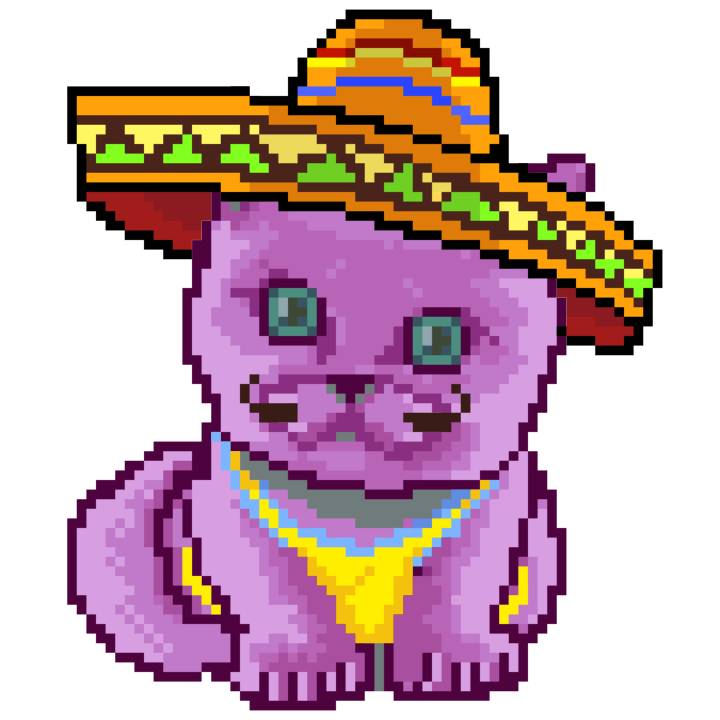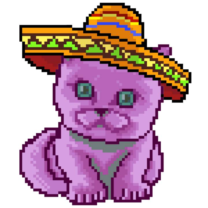 | Ashy Flashy Cat #33 | 1027 | Pink | Sombrero | Viking Mustache | No Uniform | View Image | View CatPage | View Opensea open_in_new |