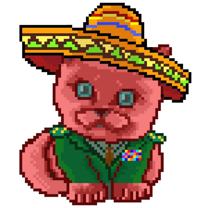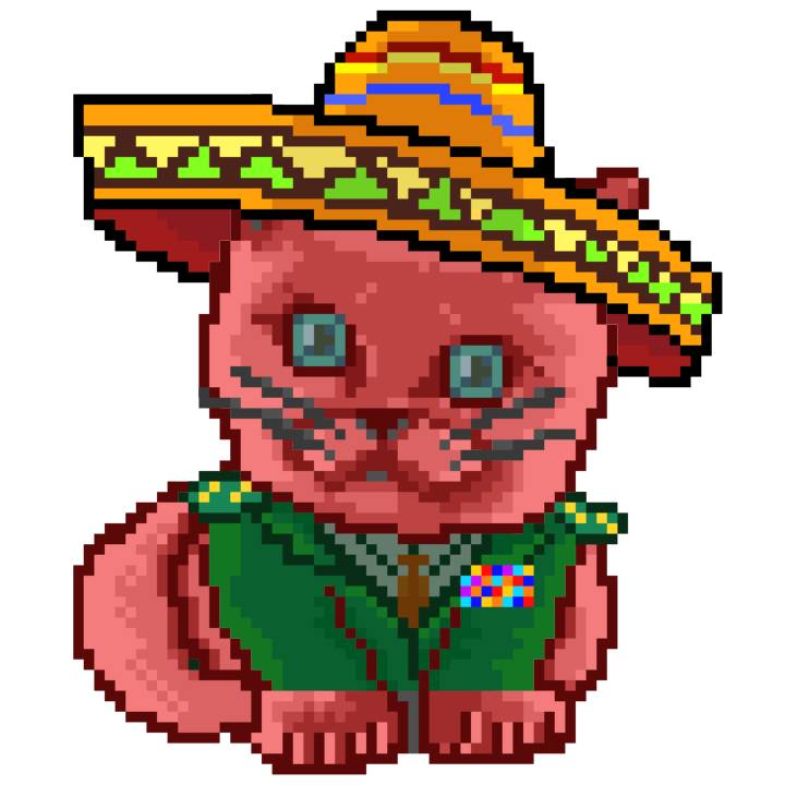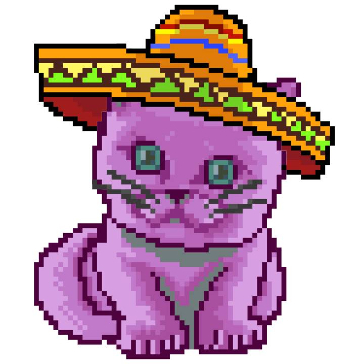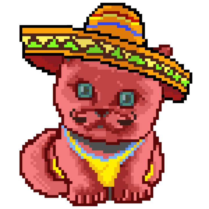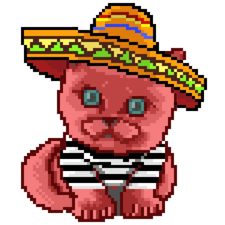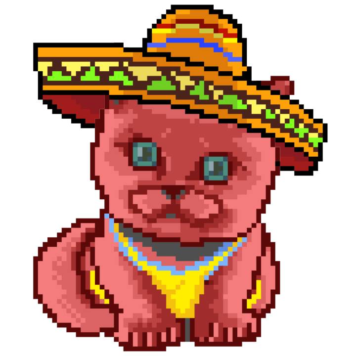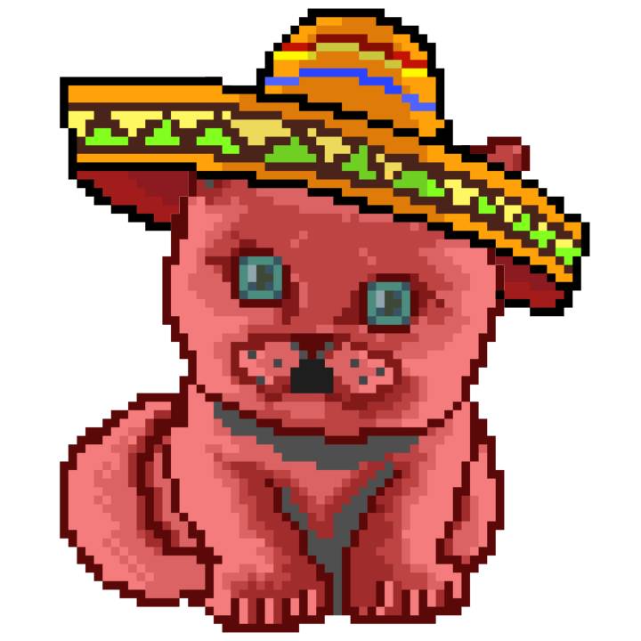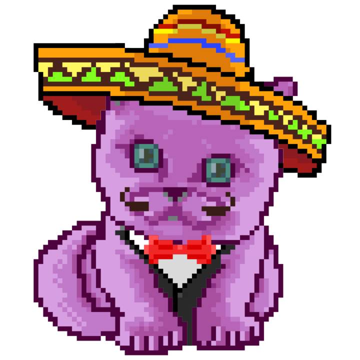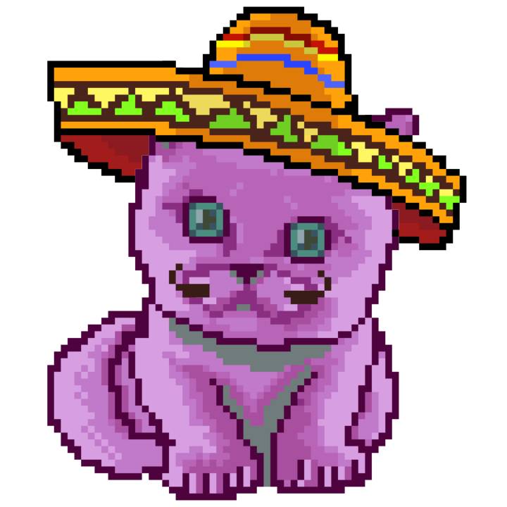 | Ashy Flashy Cat #33 | 1027 | Pink | Sombrero | Viking Mustache | No Uniform | View Image | View CatPage | View Opensea open_in_new |