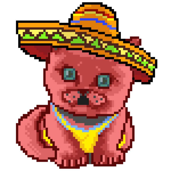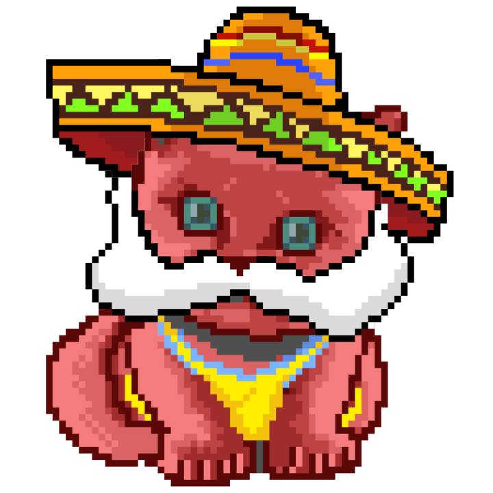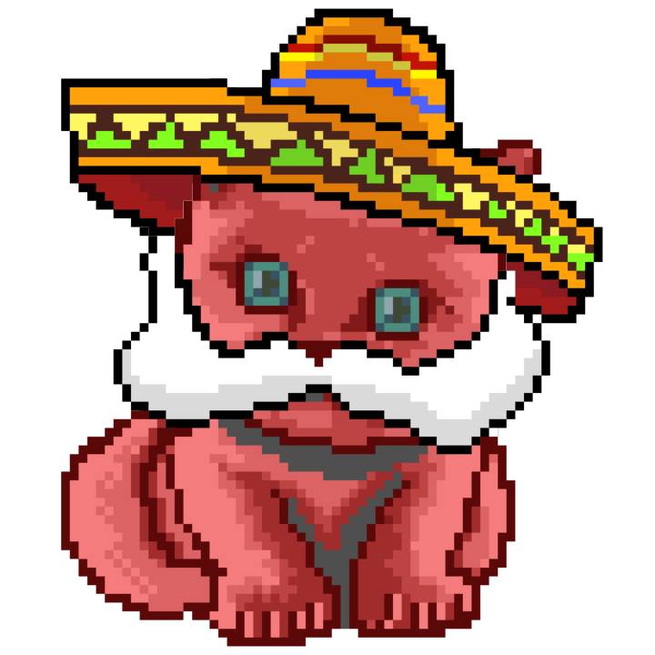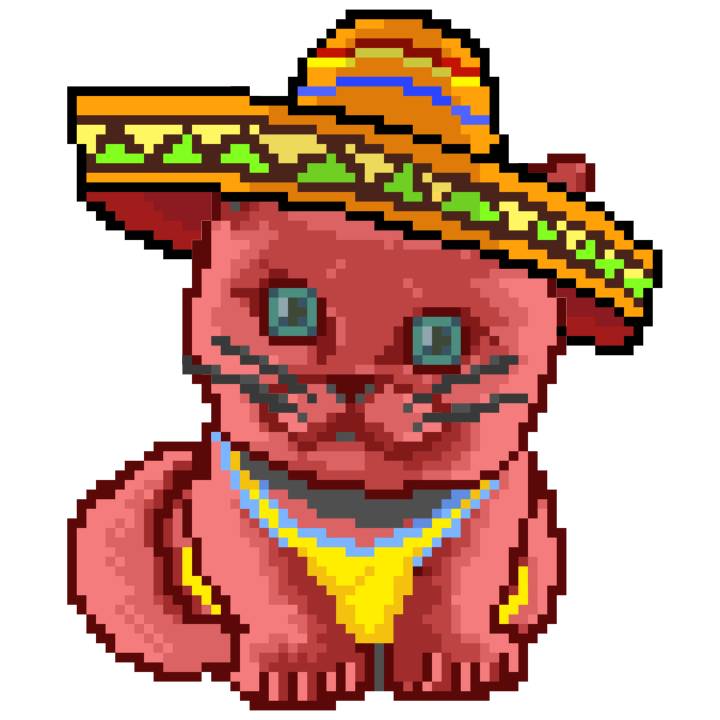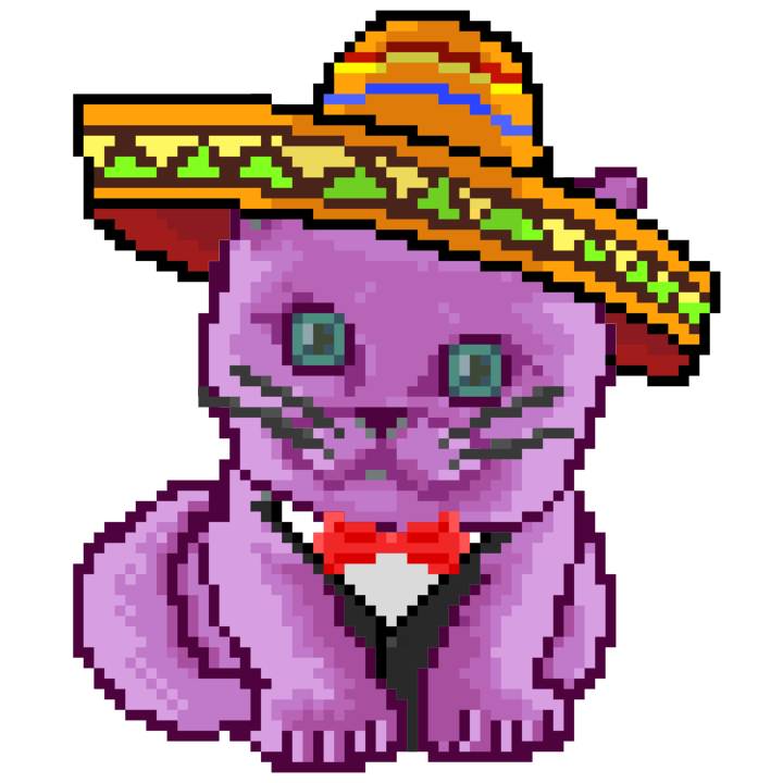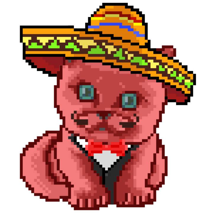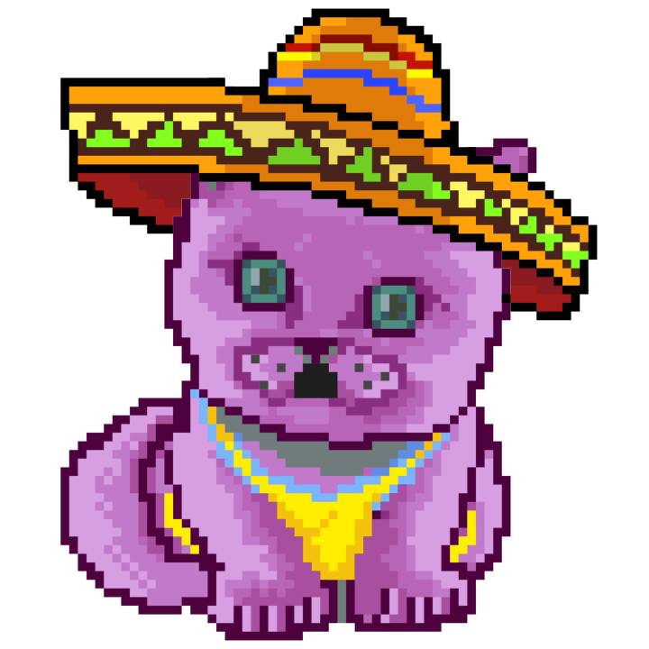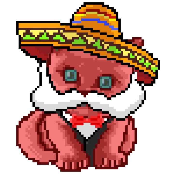 | Ashy Flashy Cat #33 | 1027 | Pink | Sombrero | Viking Mustache | No Uniform | View Image | View CatPage | View Opensea open_in_new |
