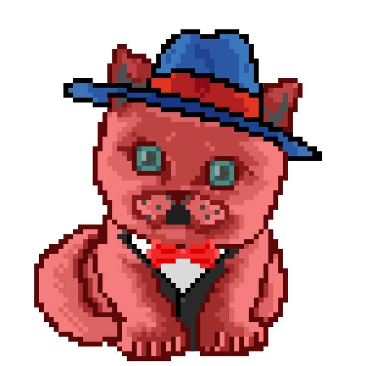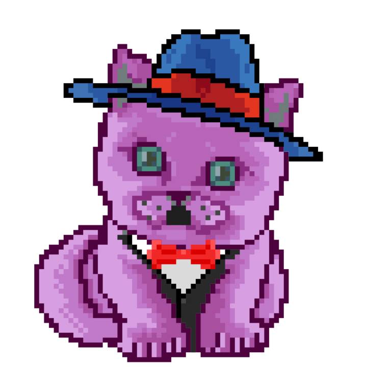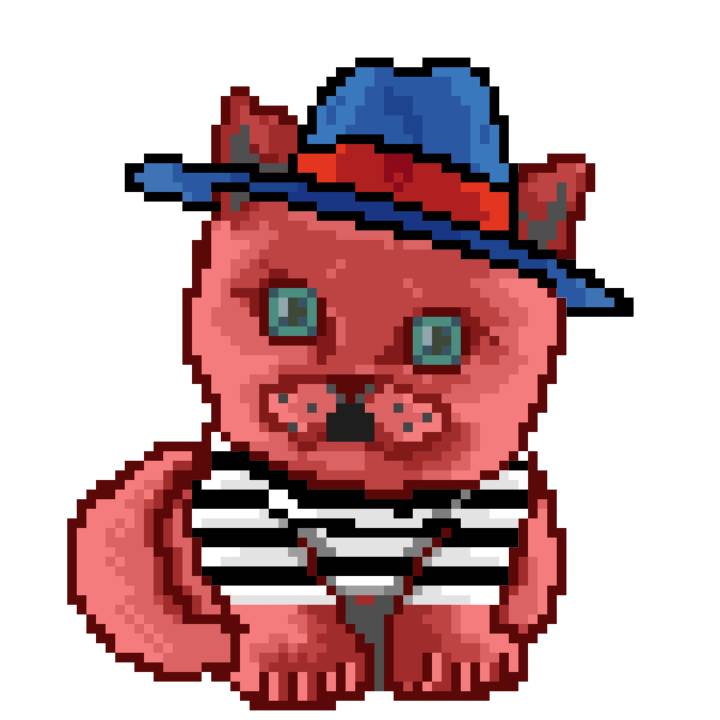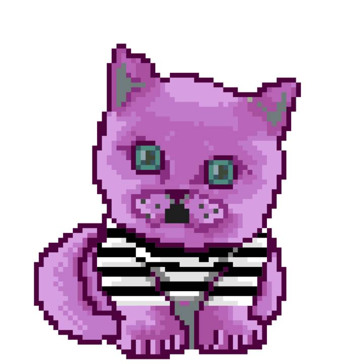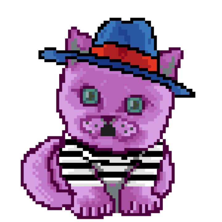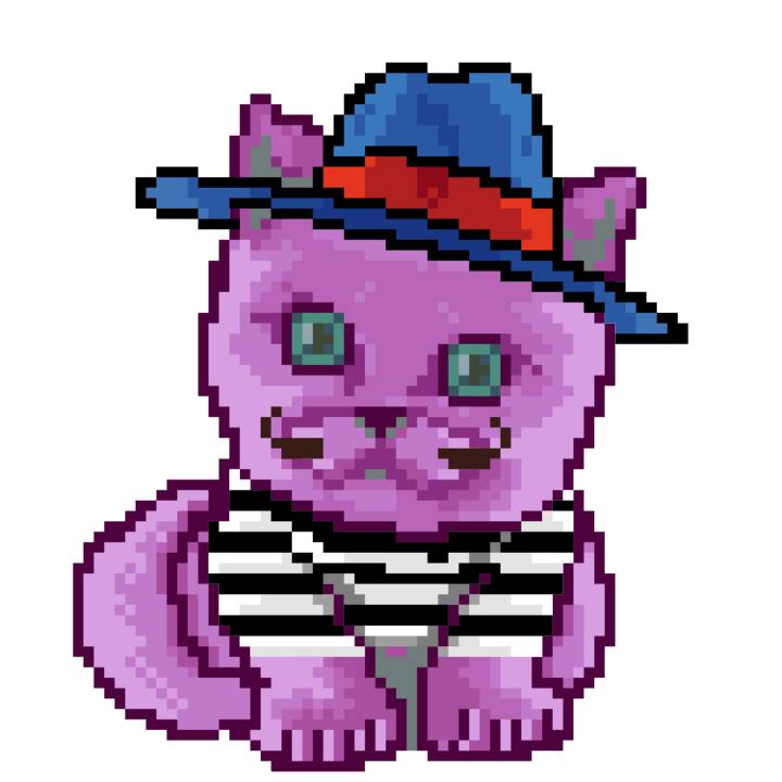 | Ashy Flashy Cat #61 | 642 | Pink | Bowler | Victorian beard | Jersey | View Image | View CatPage | View Opensea open_in_new |