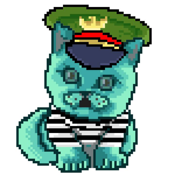 | Ashy Flashy Cat #1492 | 1221 | Turquoise | Sombrero | No Mustache | Jail Top | View Image | View CatPage | View Opensea open_in_new |