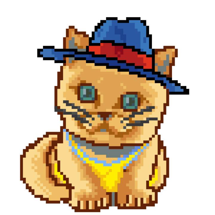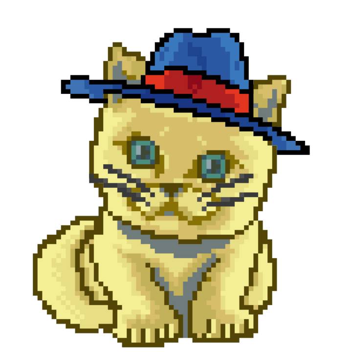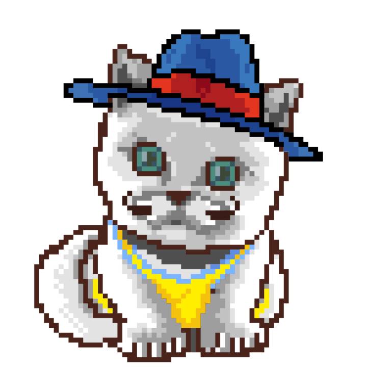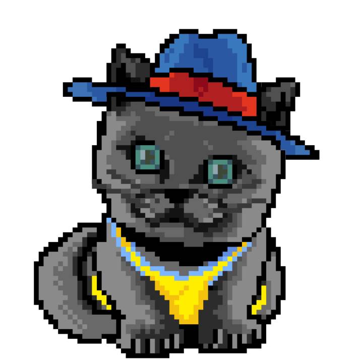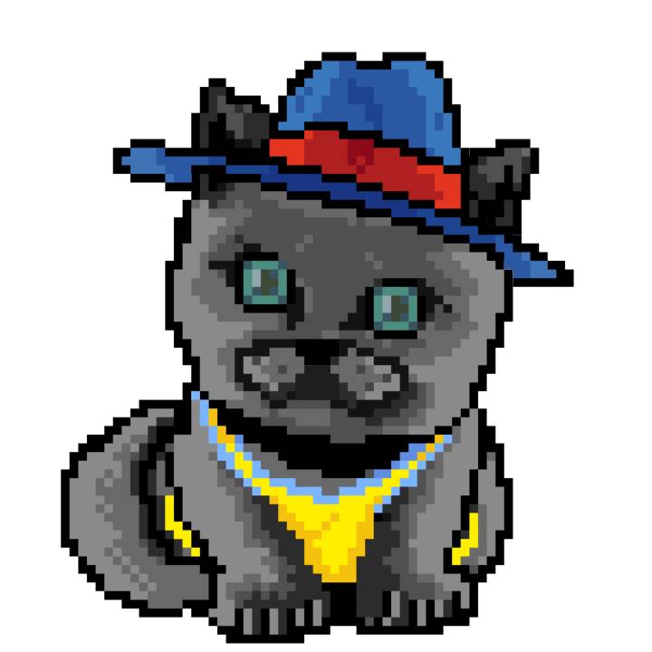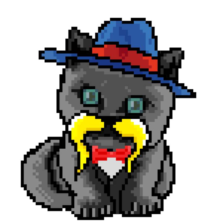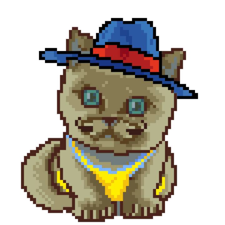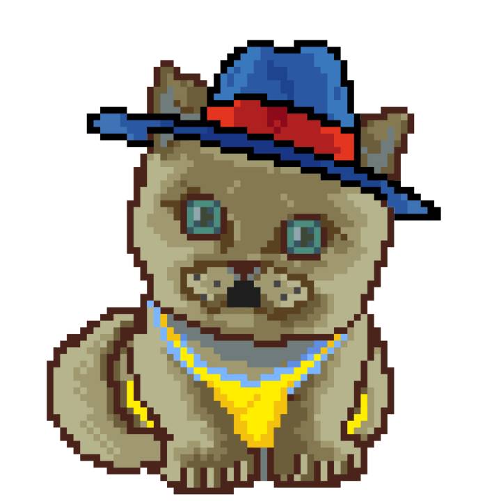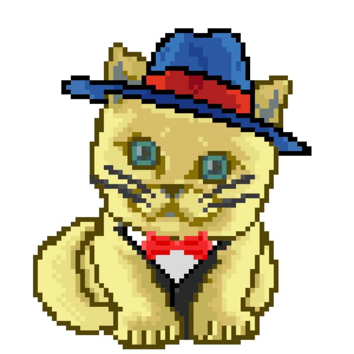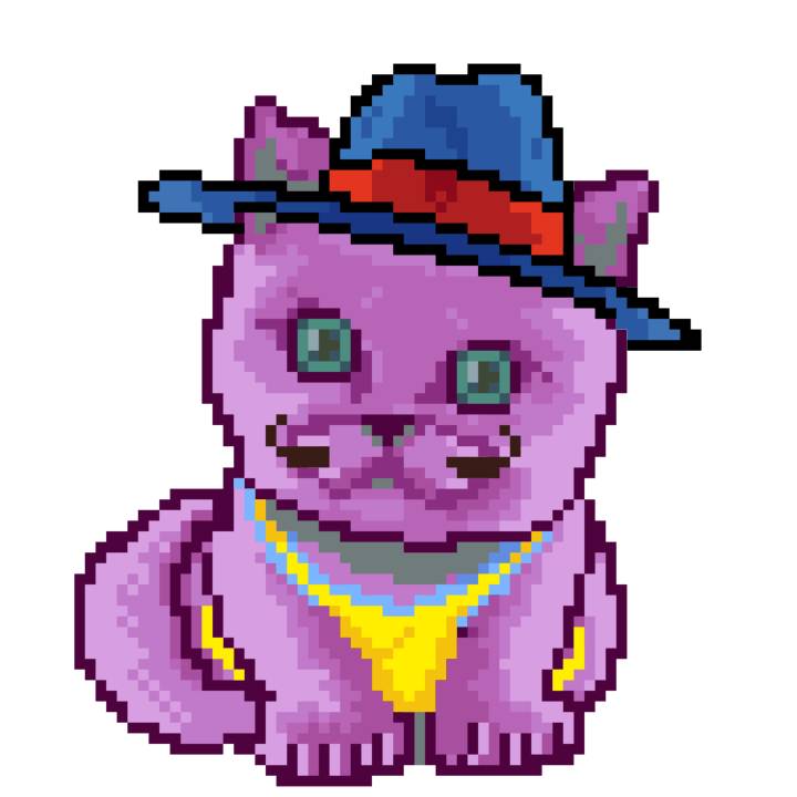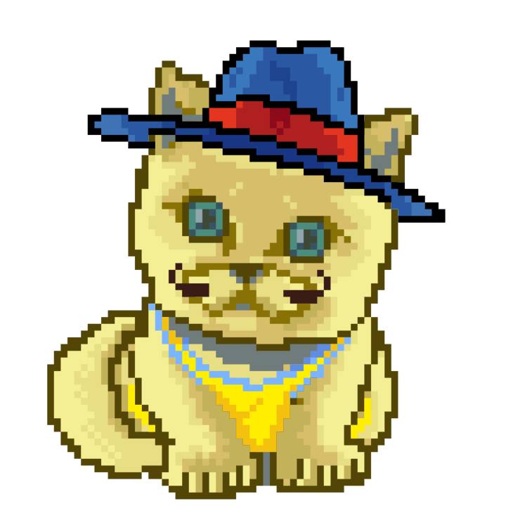 | Ashy Flashy Cat #1418 | 1027 | Light Yellow | Sombrero | Victorian beard | Wasket | View Image | View CatPage | View Opensea open_in_new |