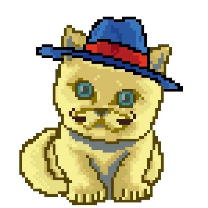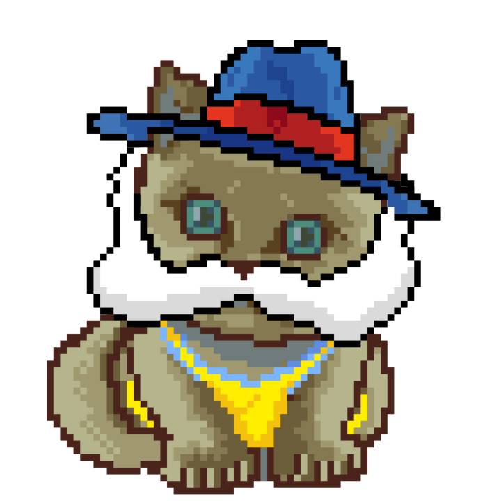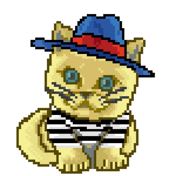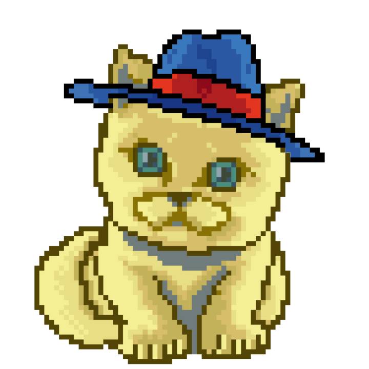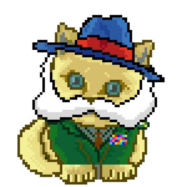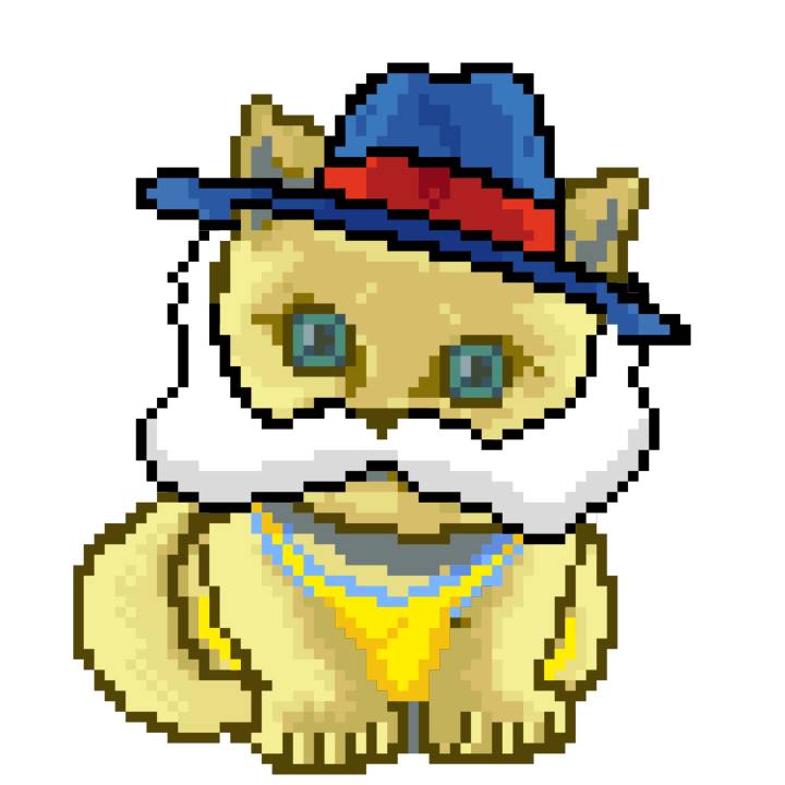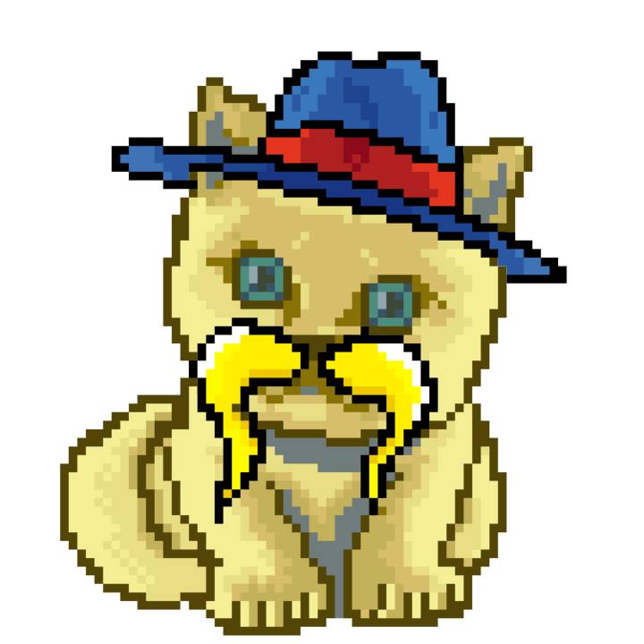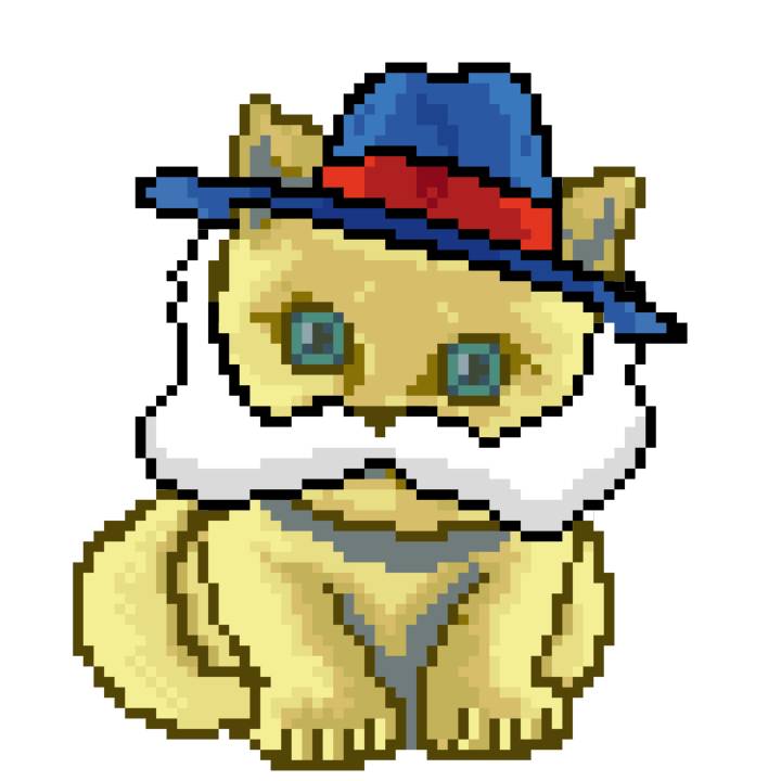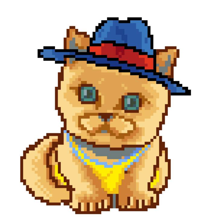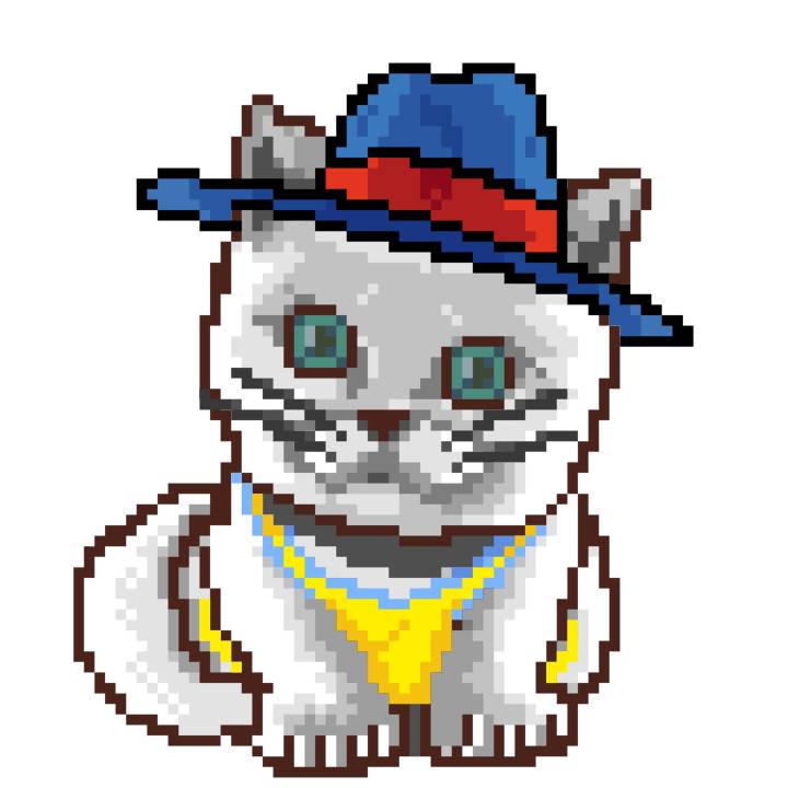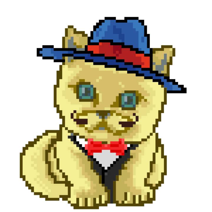 | Ashy Flashy Cat #1418 | 1027 | Light Yellow | Sombrero | Victorian beard | Wasket | View Image | View CatPage | View Opensea open_in_new |