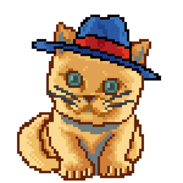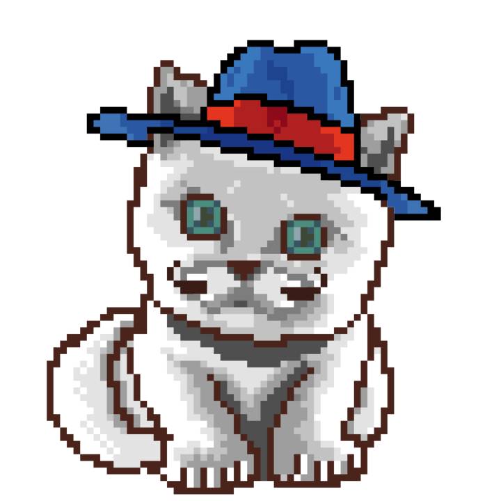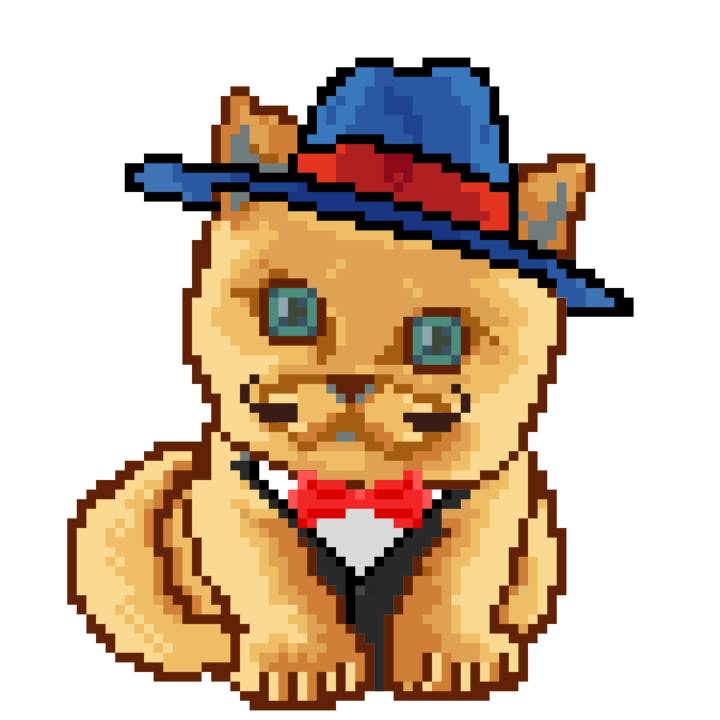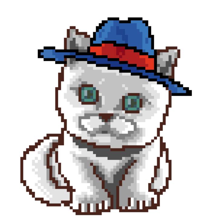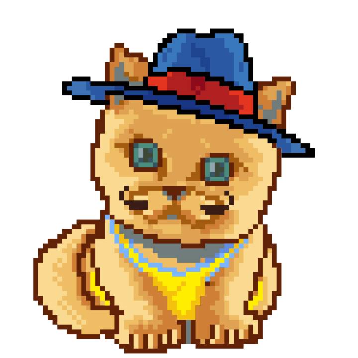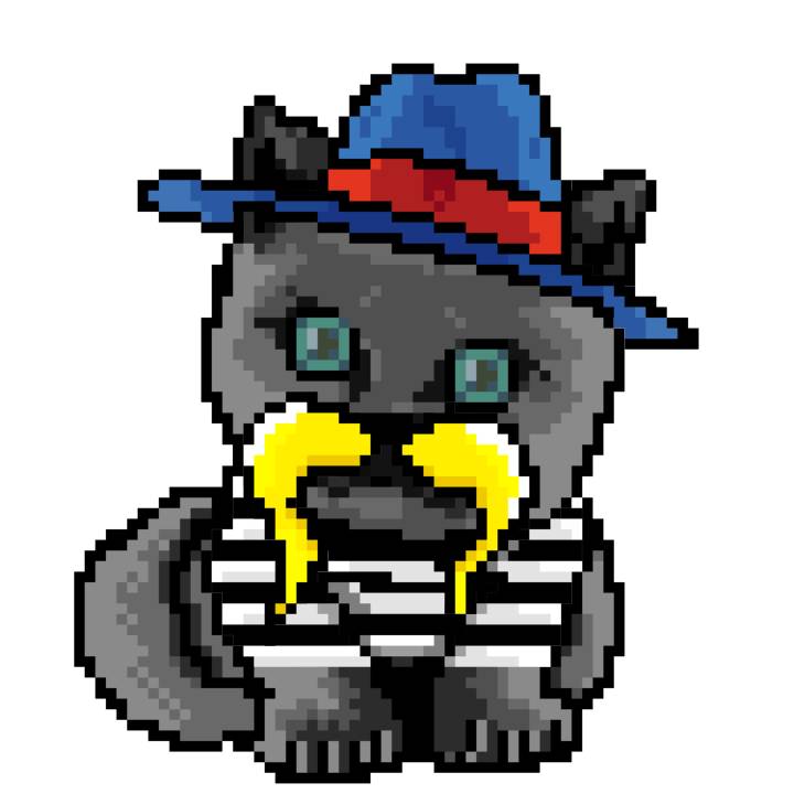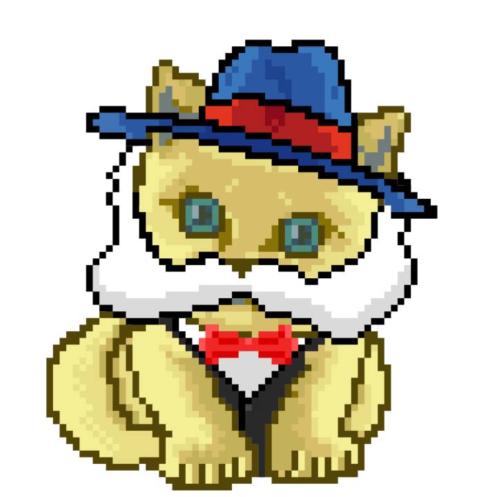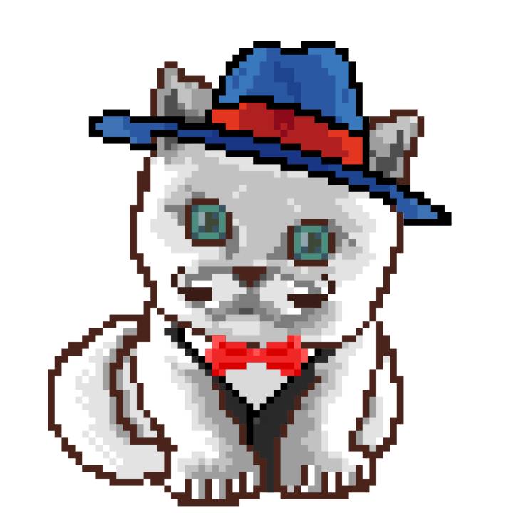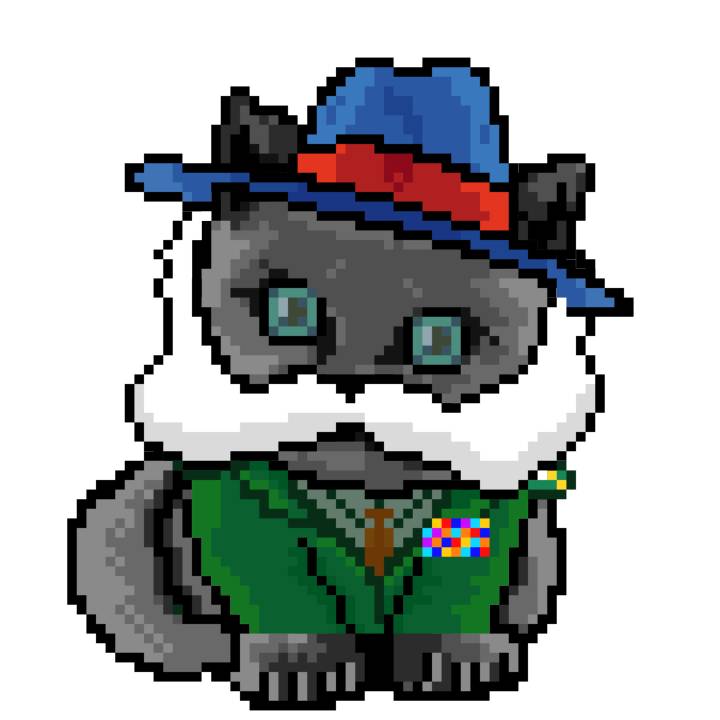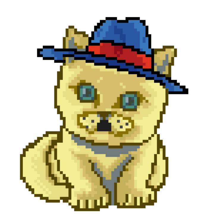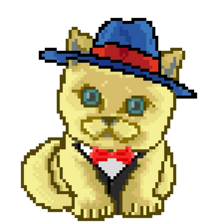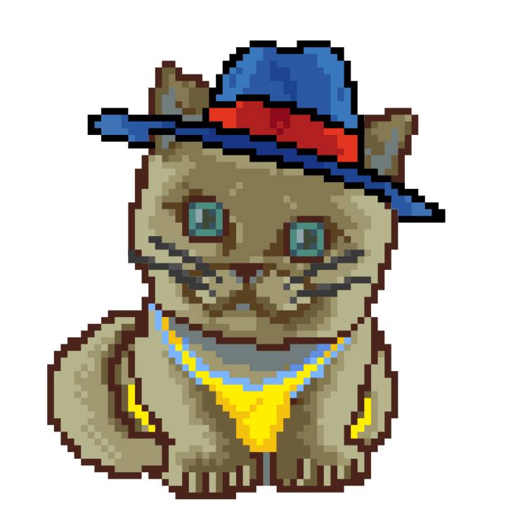 | Ashy Flashy Cat #1418 | 1027 | Light Yellow | Sombrero | Victorian beard | Wasket | View Image | View CatPage | View Opensea open_in_new |