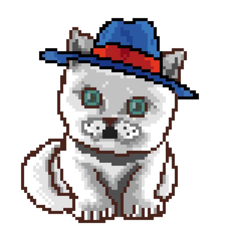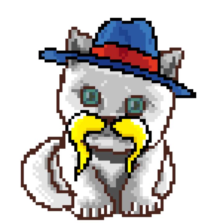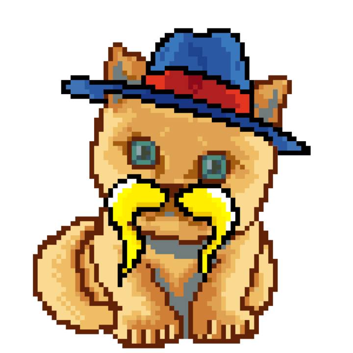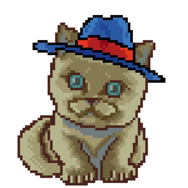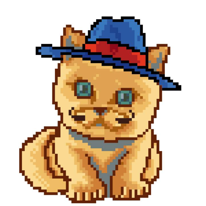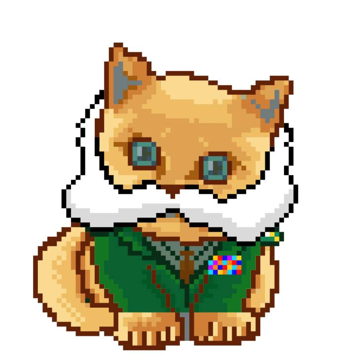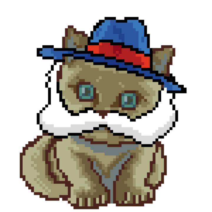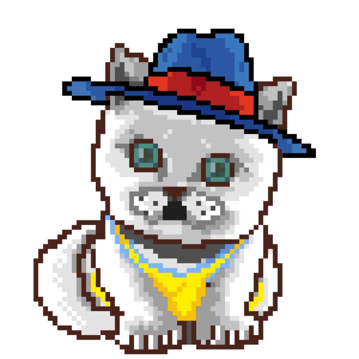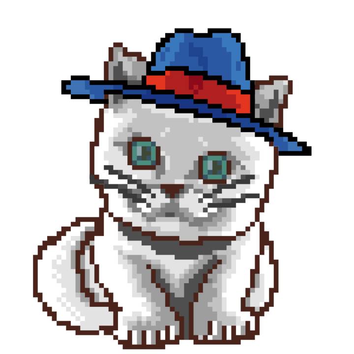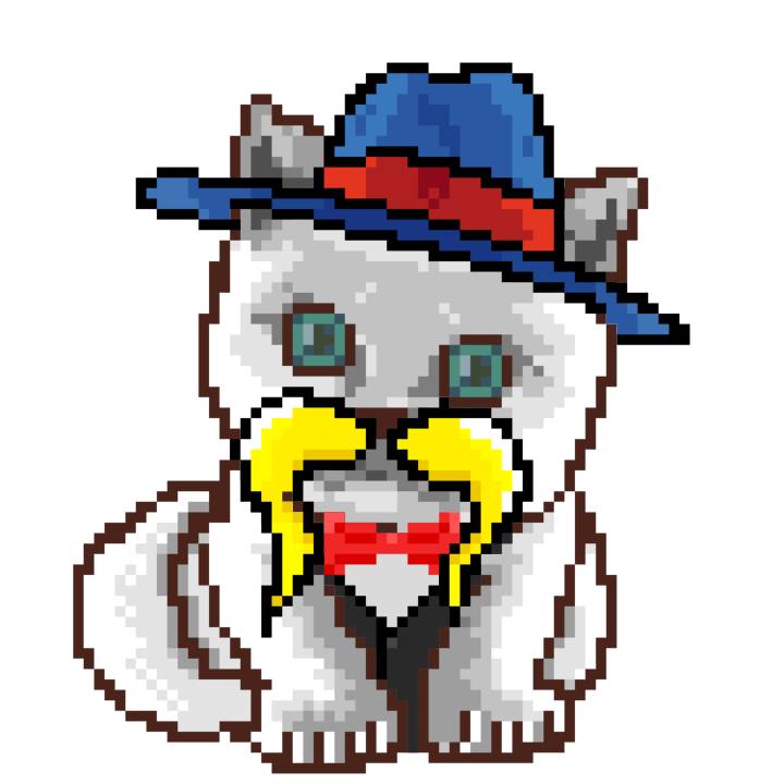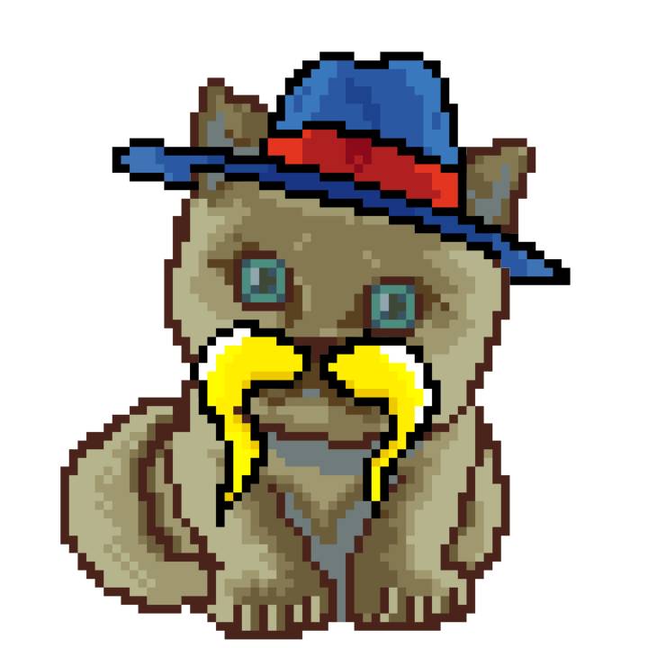 | Ashy Flashy Cat #1418 | 1027 | Light Yellow | Sombrero | Victorian beard | Wasket | View Image | View CatPage | View Opensea open_in_new |