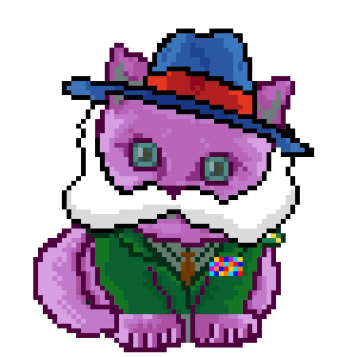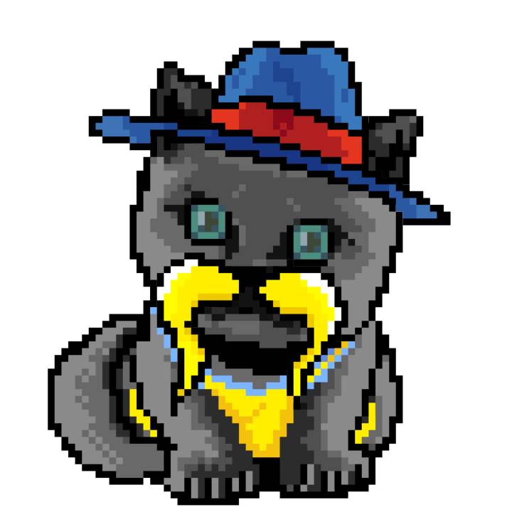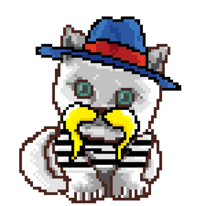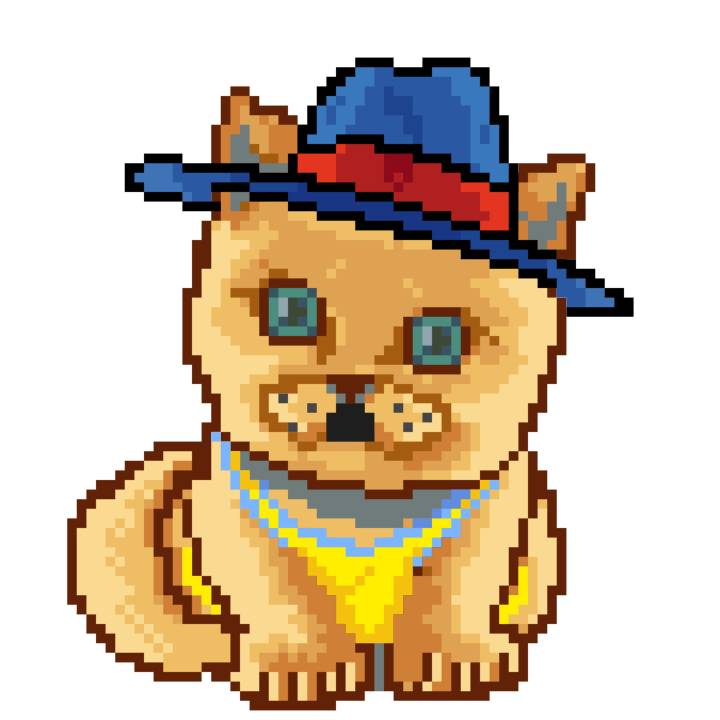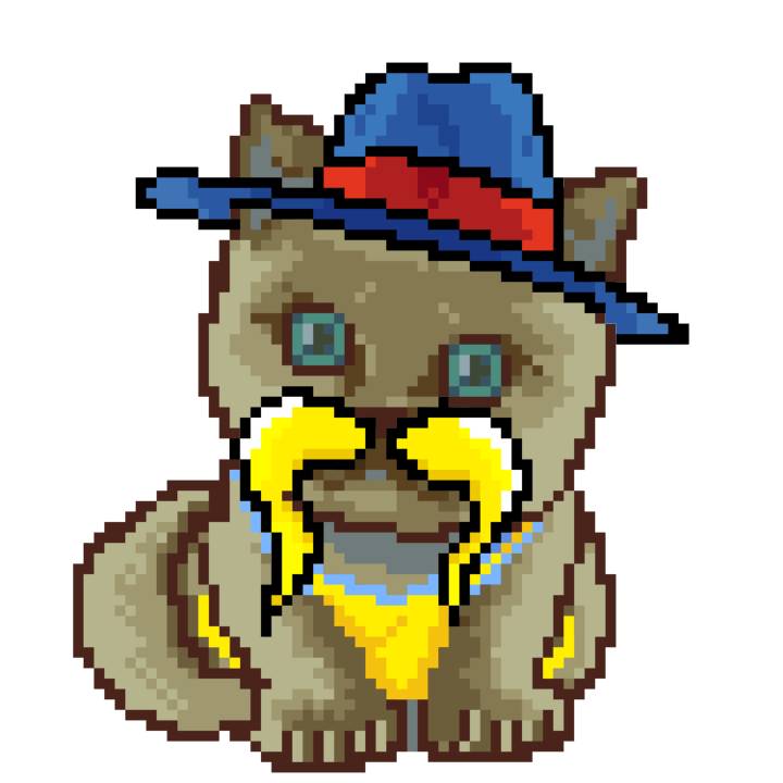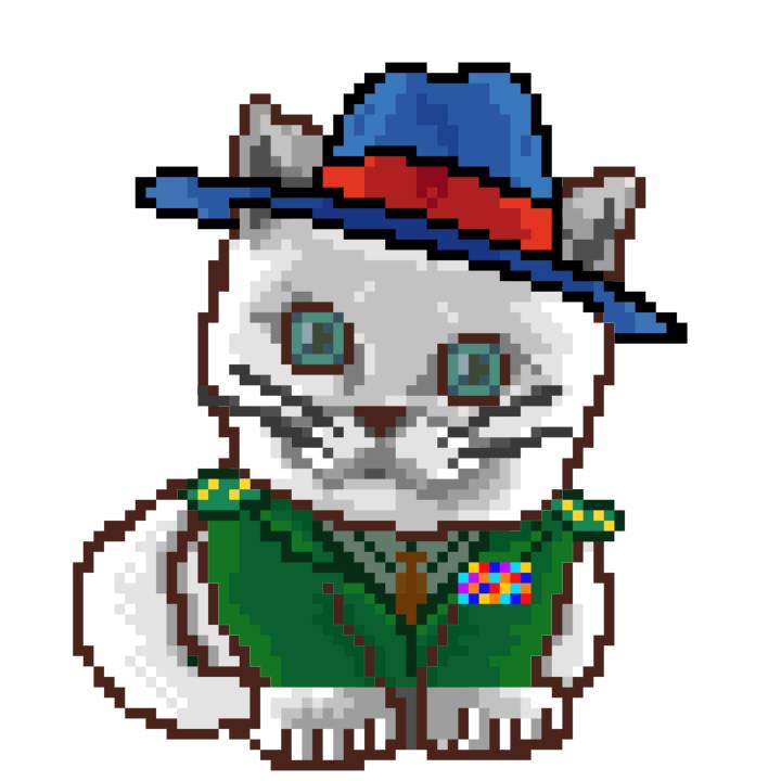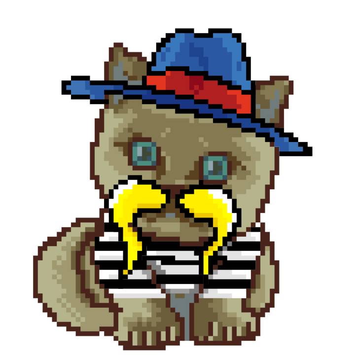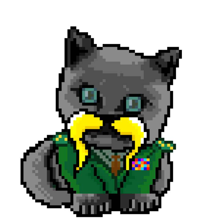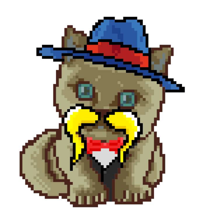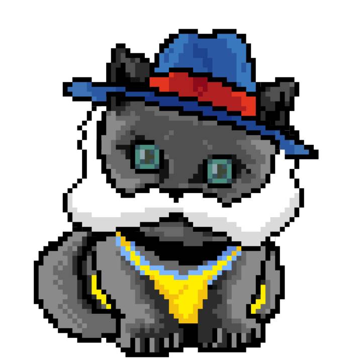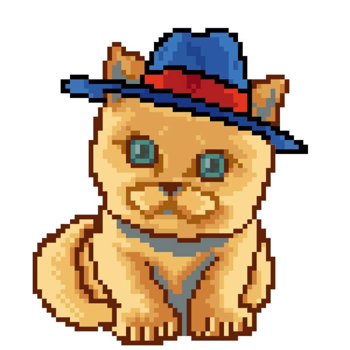 | Ashy Flashy Cat #1418 | 1027 | Light Yellow | Sombrero | Victorian beard | Wasket | View Image | View CatPage | View Opensea open_in_new |