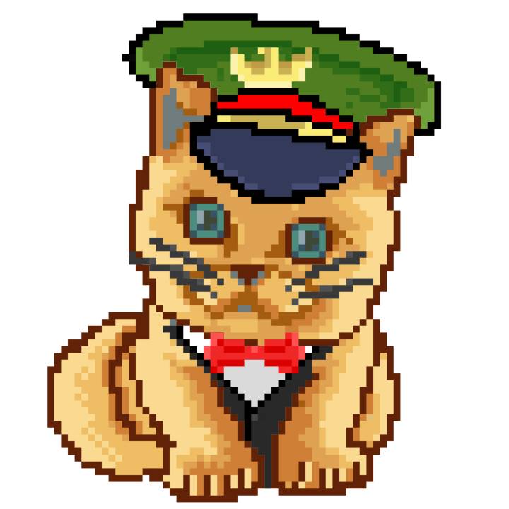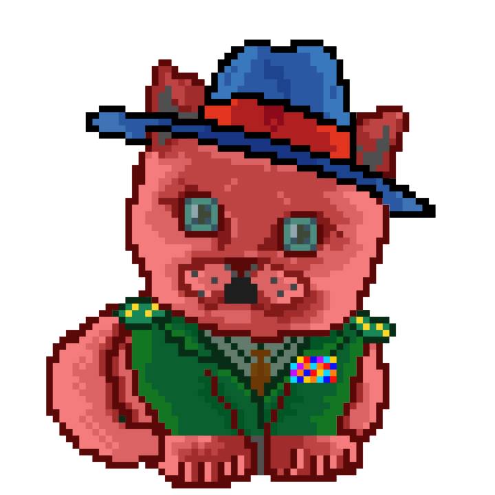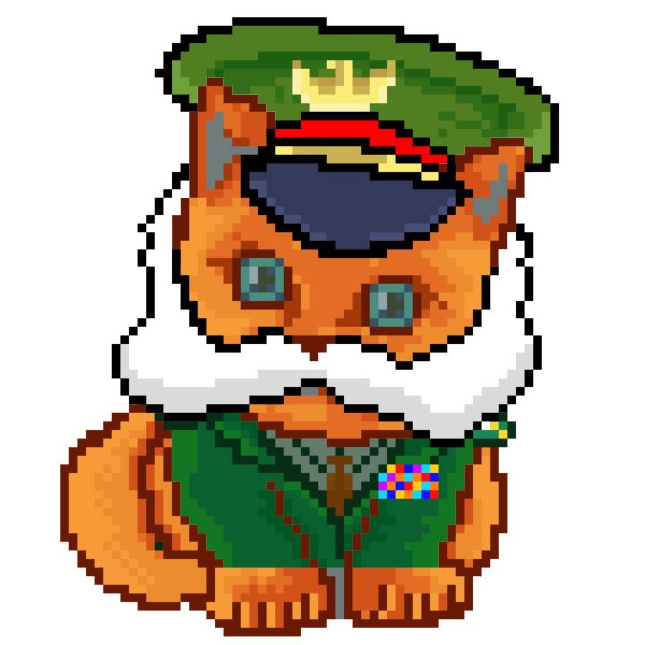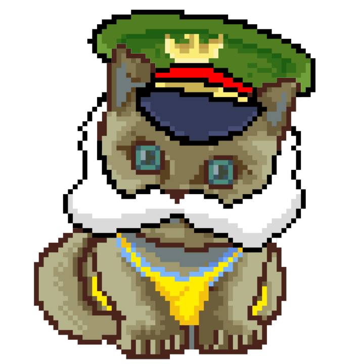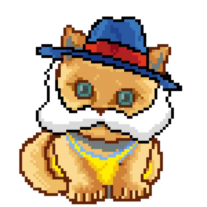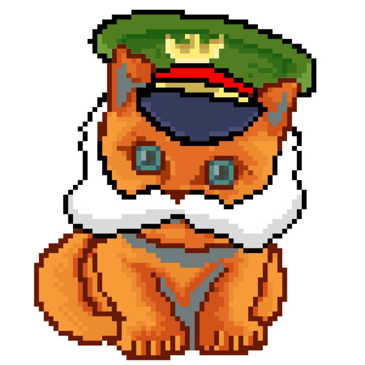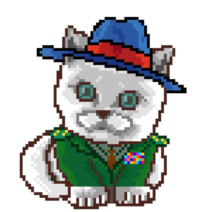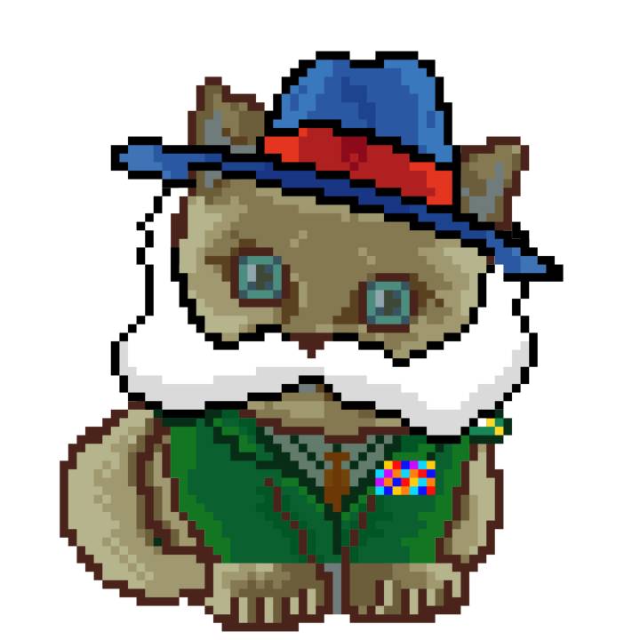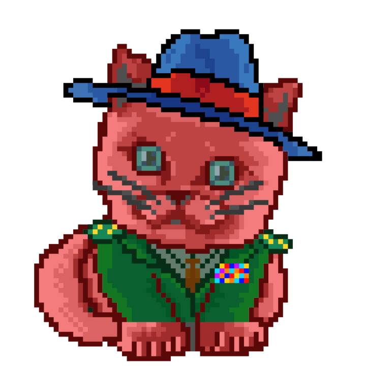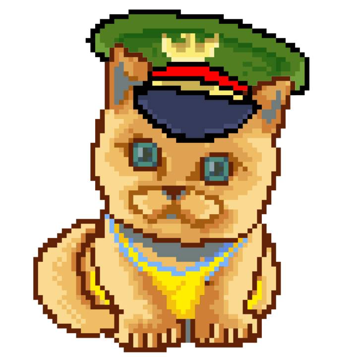 | Ashy Flashy Cat #35 | 13 | SandyBrown | Beret | Cat Mustache | No Uniform | View Image | View CatPage | View Opensea open_in_new |