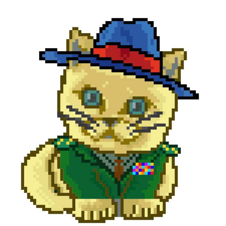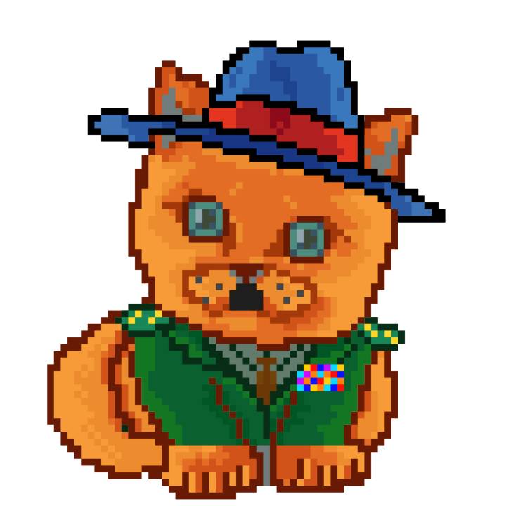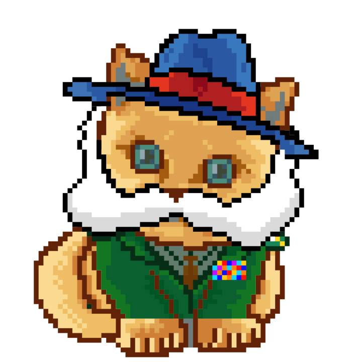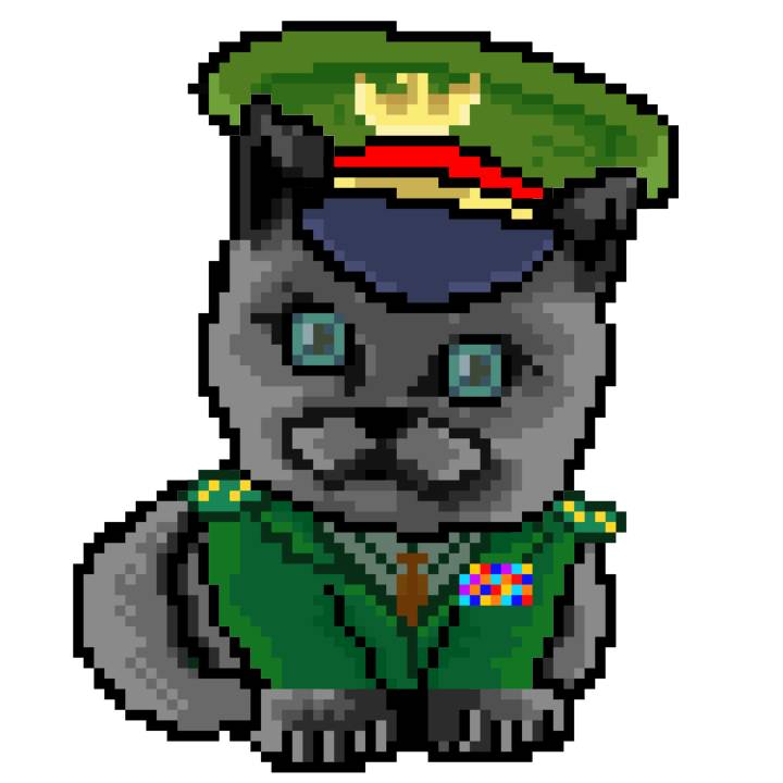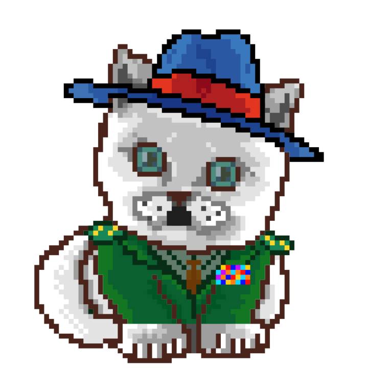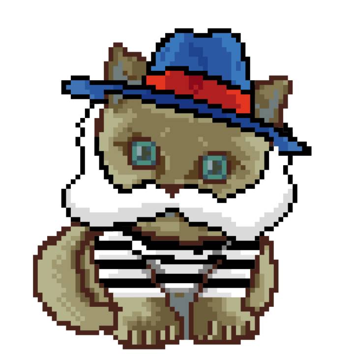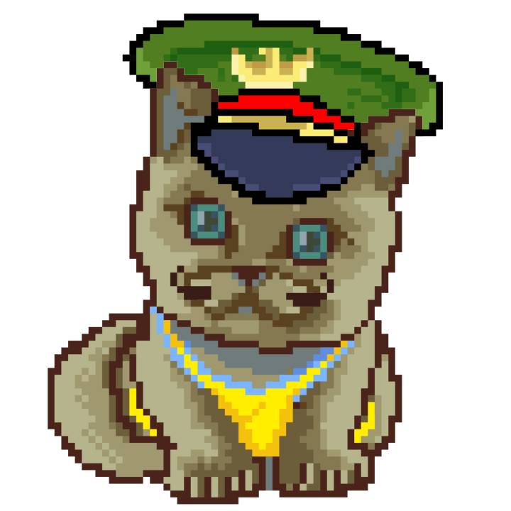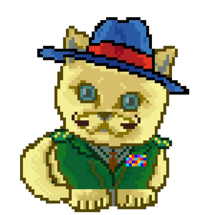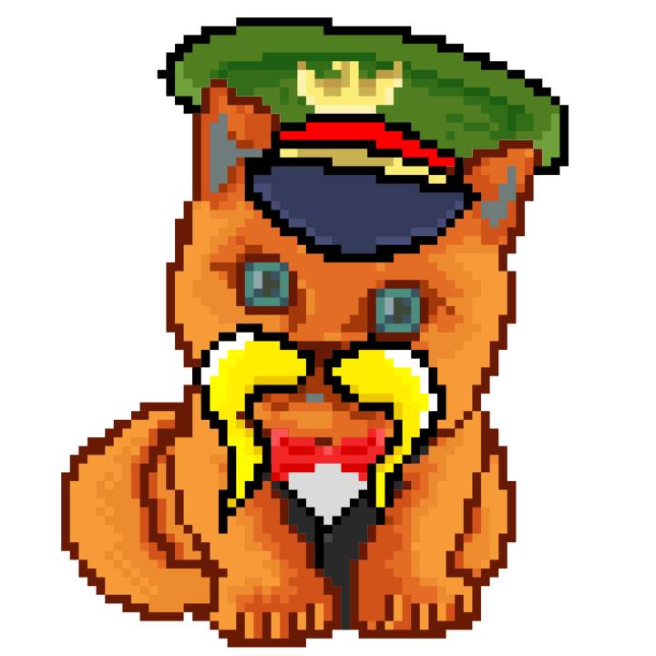 | Ashy Flashy Cat #35 | 13 | SandyBrown | Beret | Cat Mustache | No Uniform | View Image | View CatPage | View Opensea open_in_new |