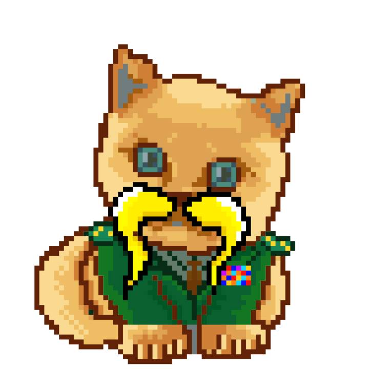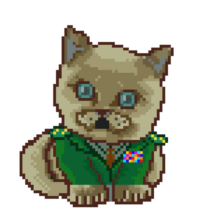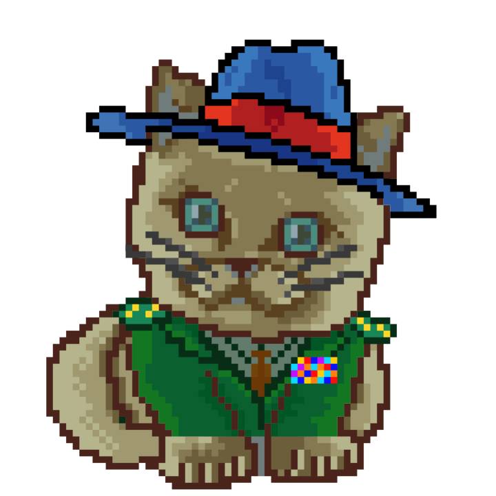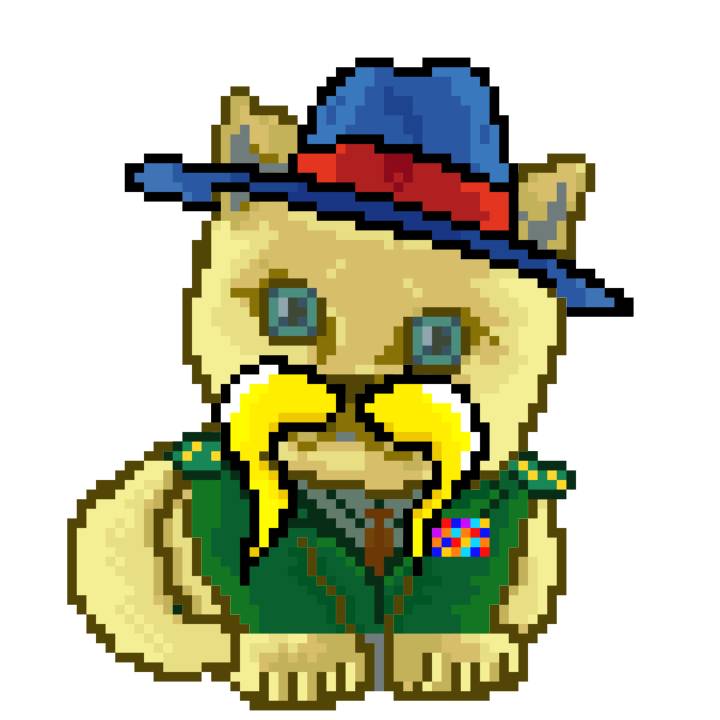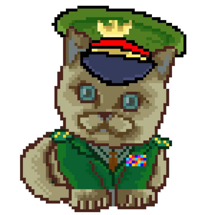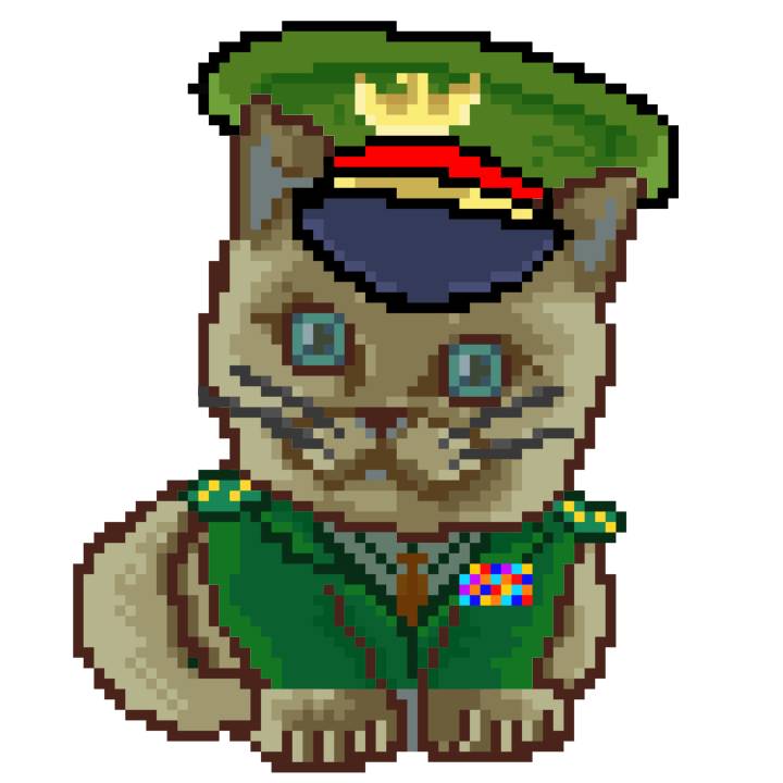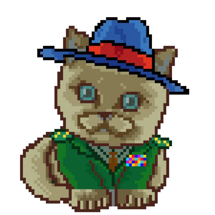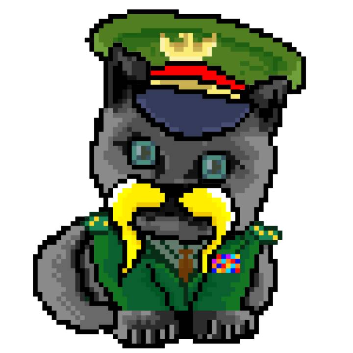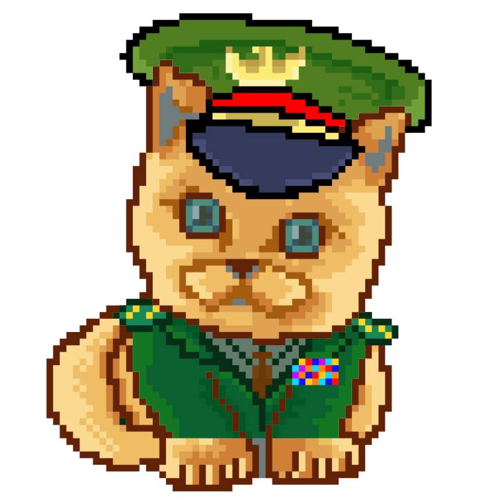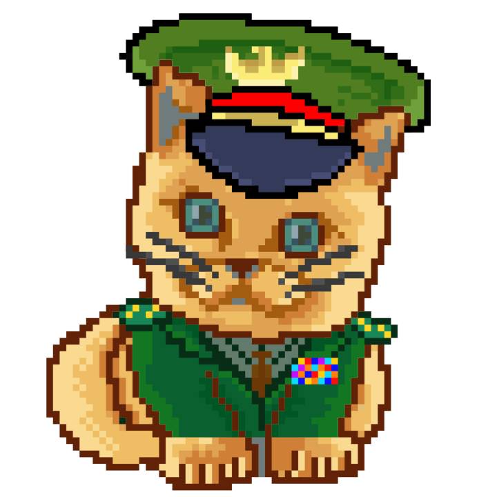 | Ashy Flashy Cat #35 | 13 | SandyBrown | Beret | Cat Mustache | No Uniform | View Image | View CatPage | View Opensea open_in_new |