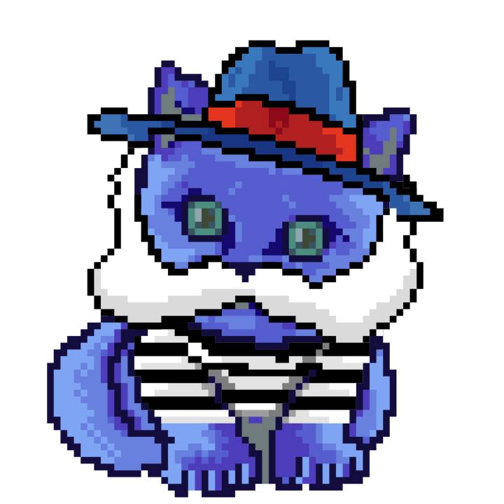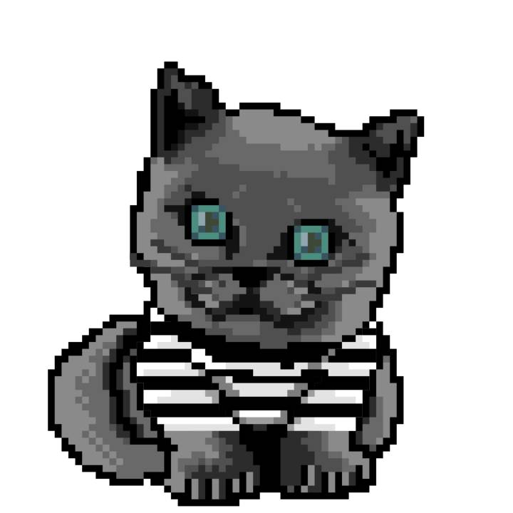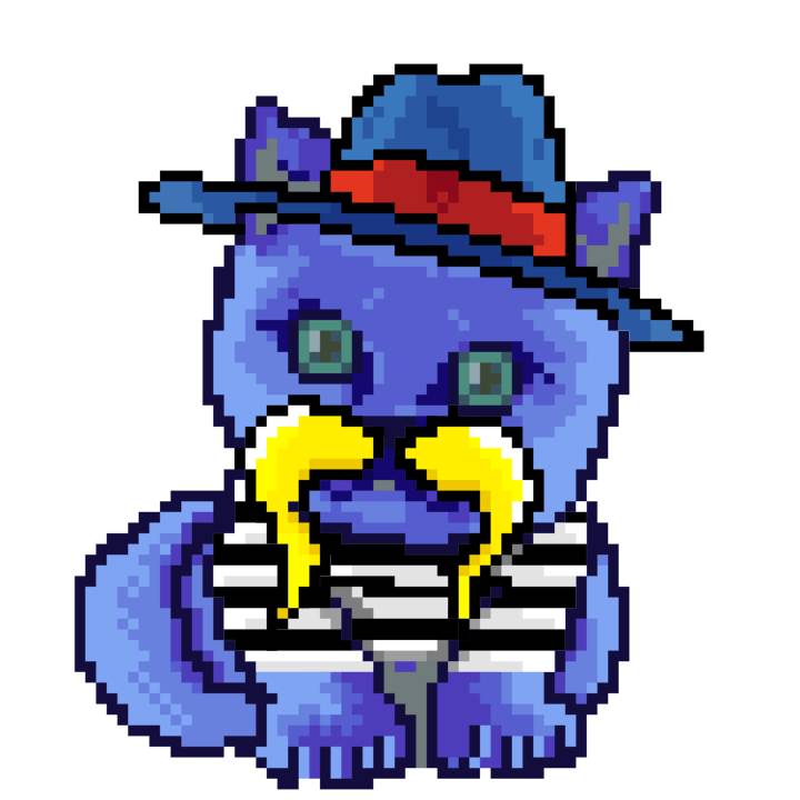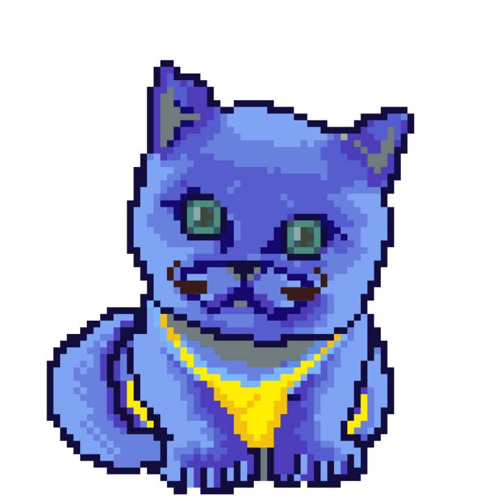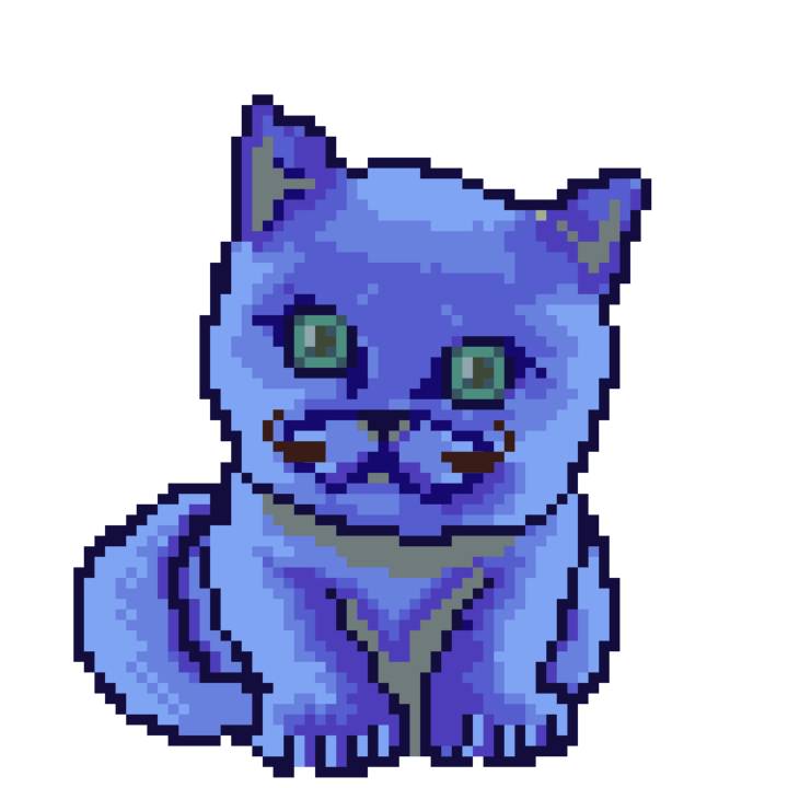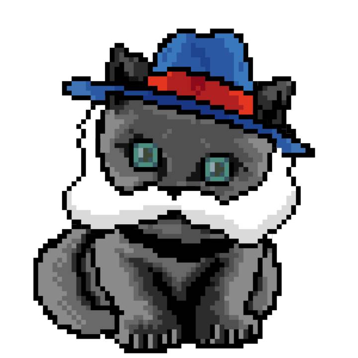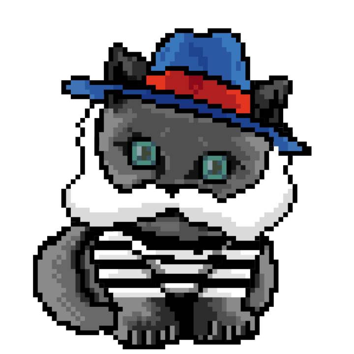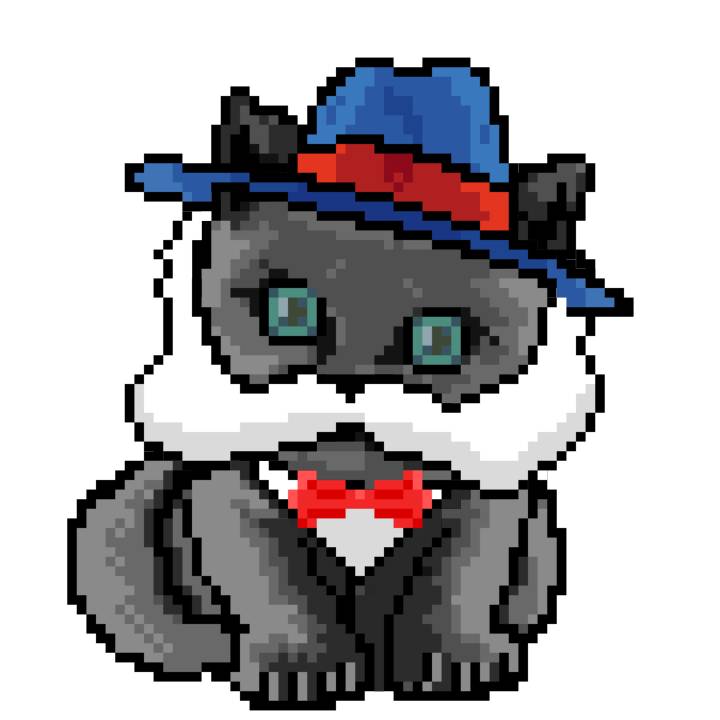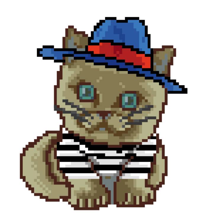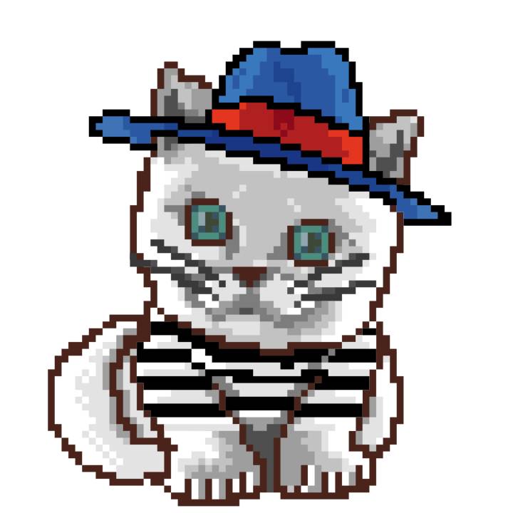 | Ashy Flashy Cat #1436 | 642 | Blue | Bowler | Charlie Chaplin Mustache | Jersey | View Image | View CatPage | View Opensea open_in_new |