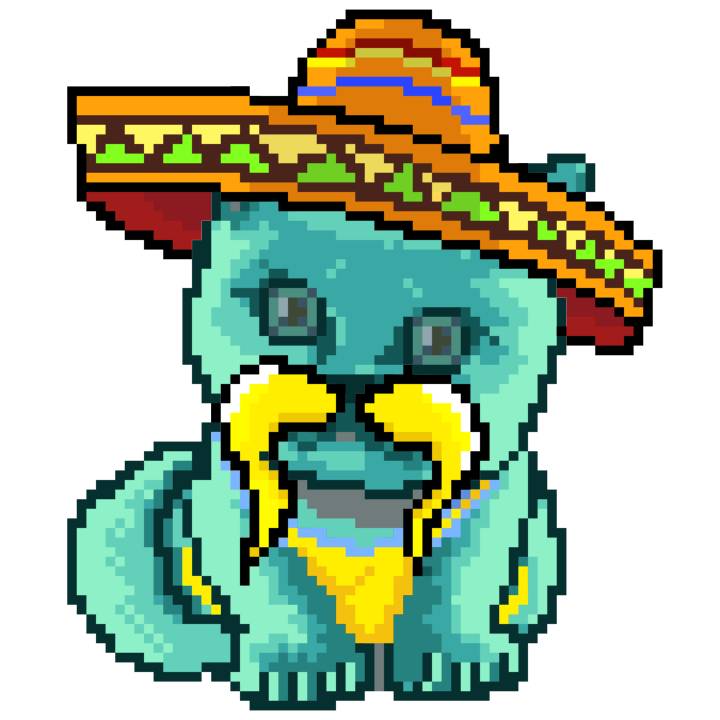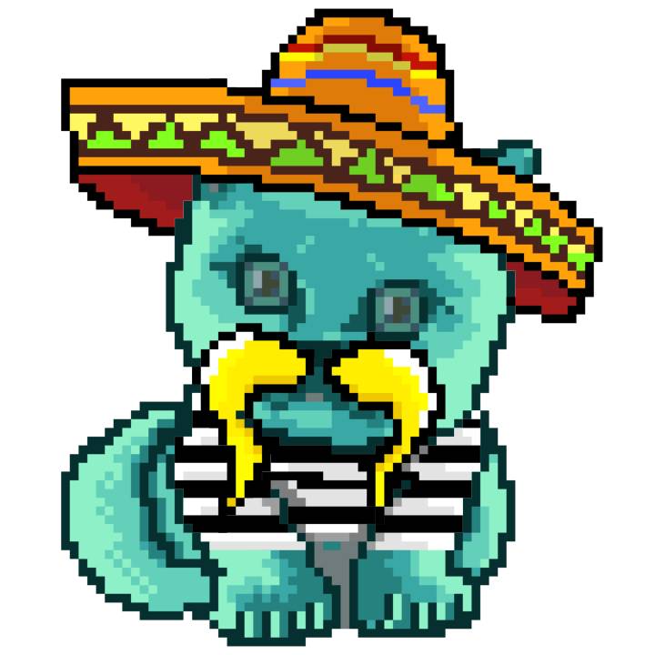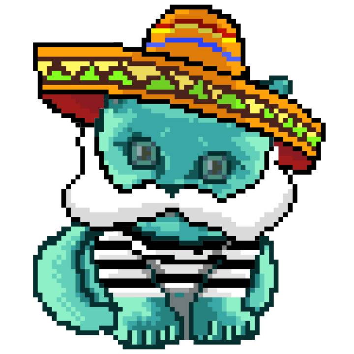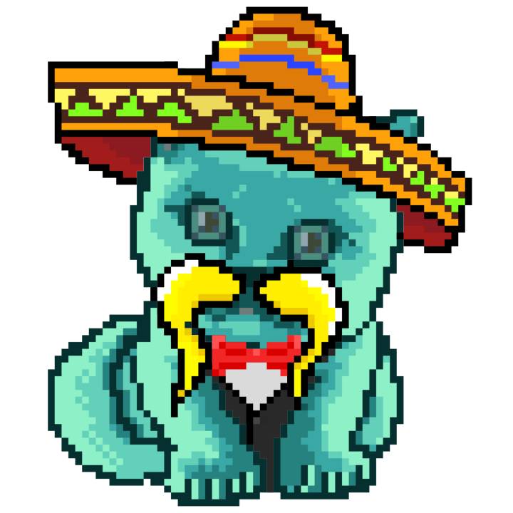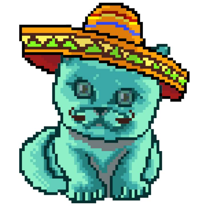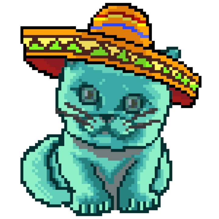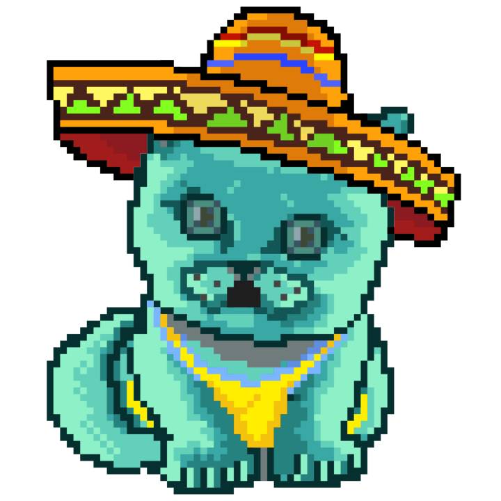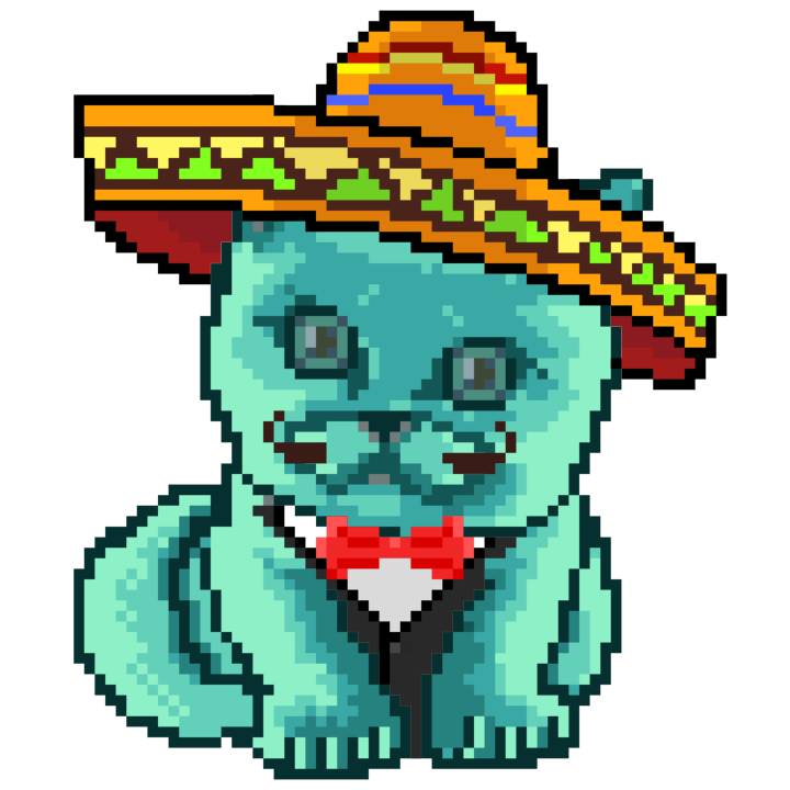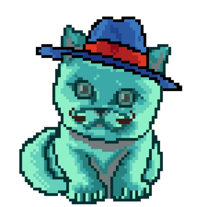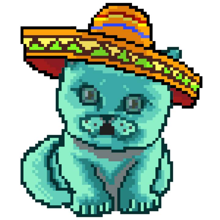 | Ashy Flashy Cat #37 | 1027 | Turquoise | Sombrero | Handlebar Mustache | Jersey | View Image | View CatPage | View Opensea open_in_new |