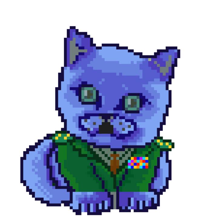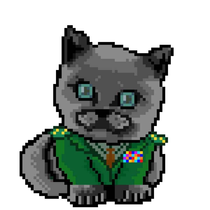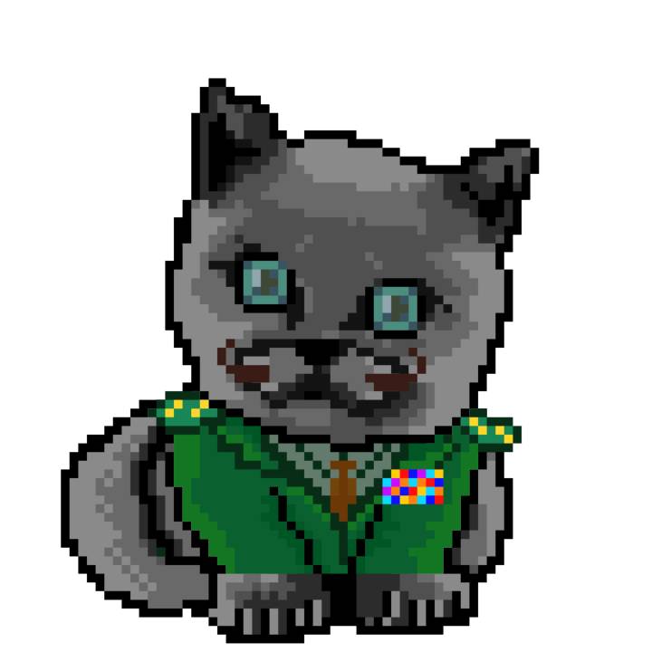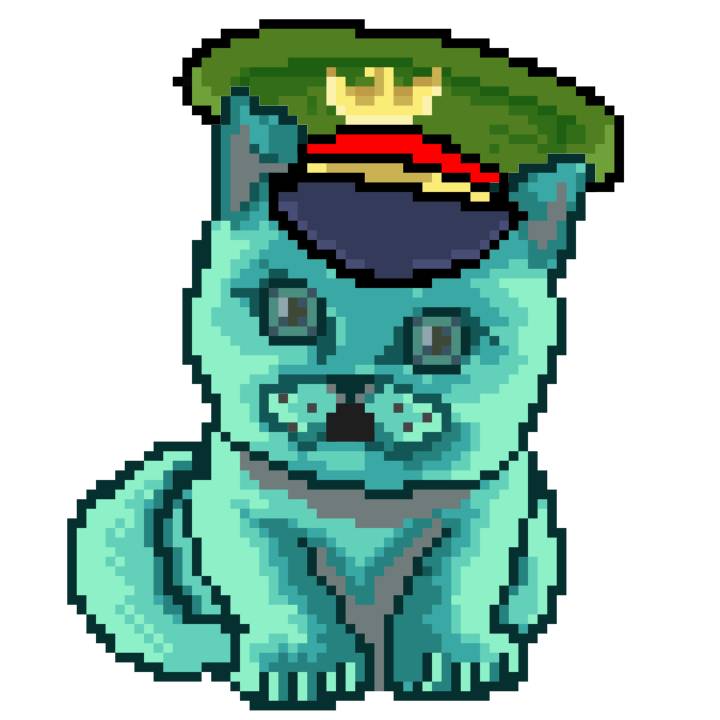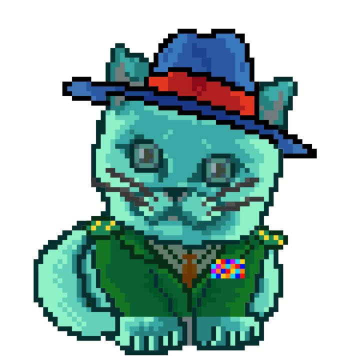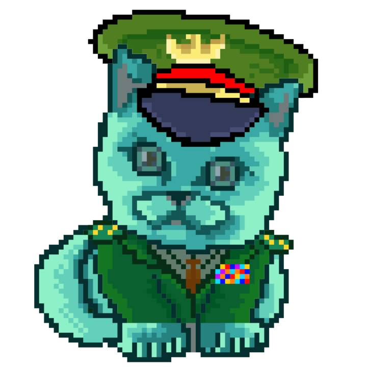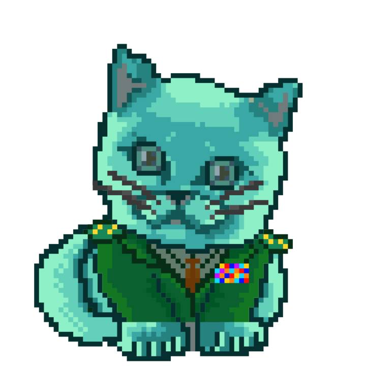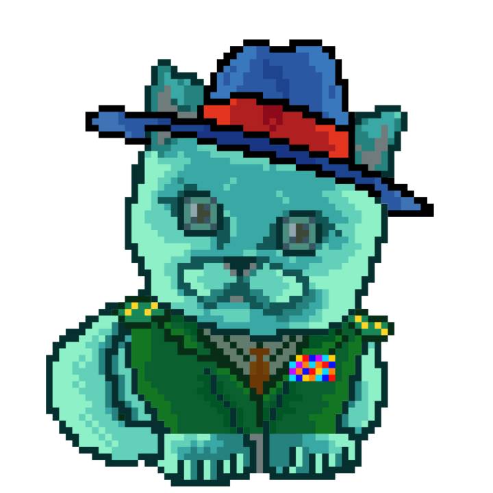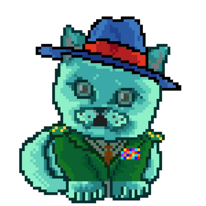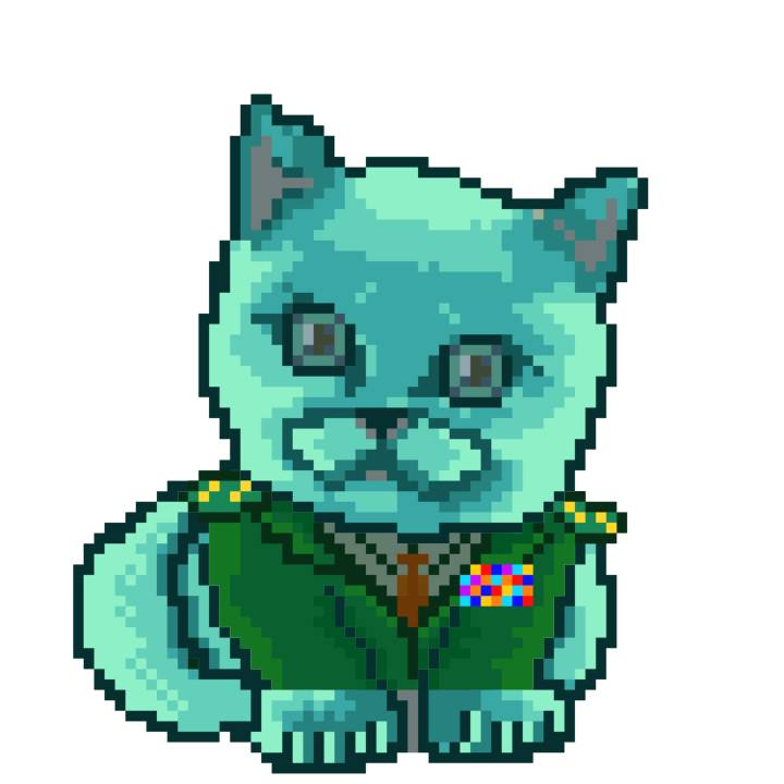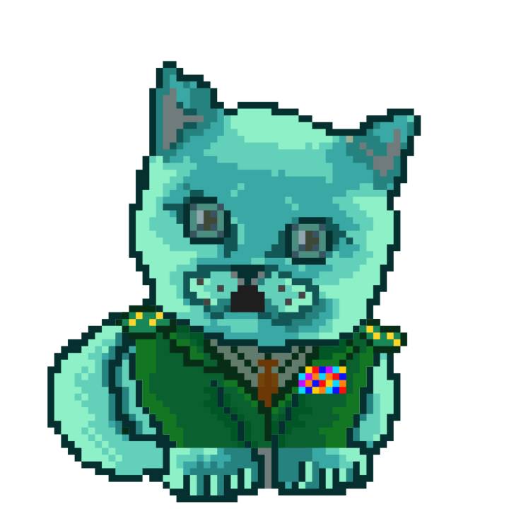 | Ashy Flashy Cat #1428 | 642 | Turquoise | Beret | Victorian beard | No Uniform | View Image | View CatPage | View Opensea open_in_new |