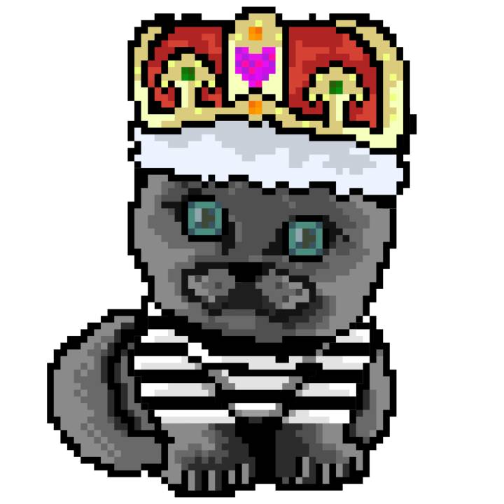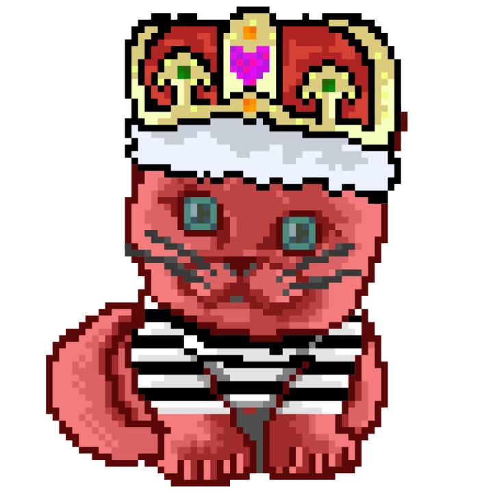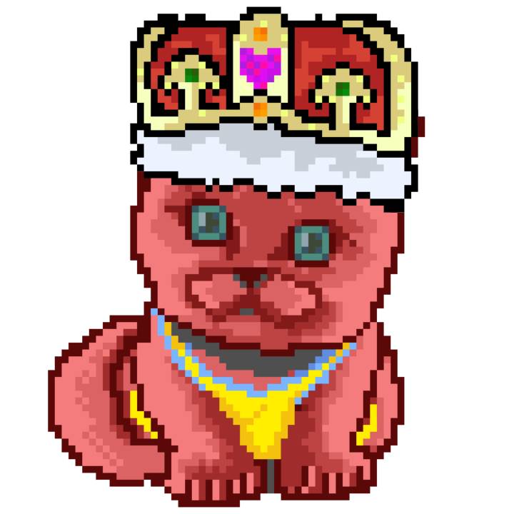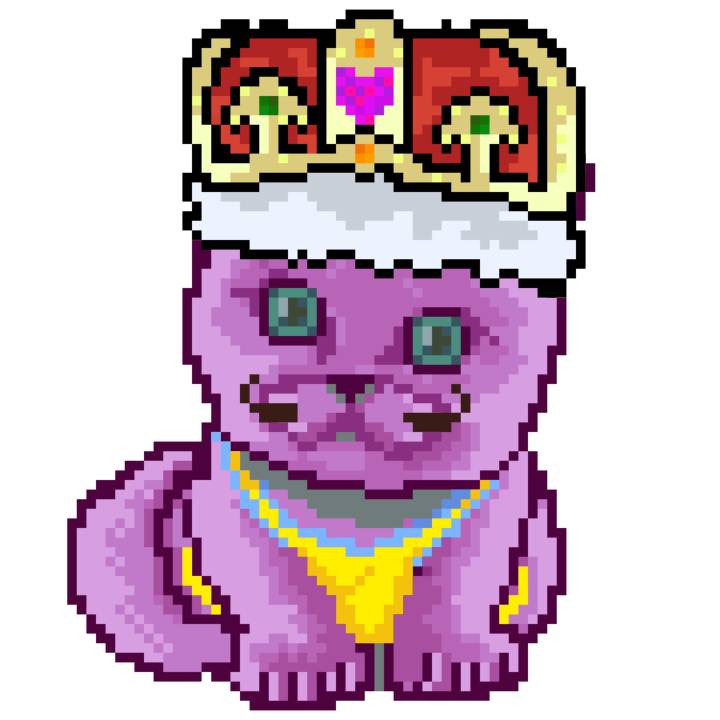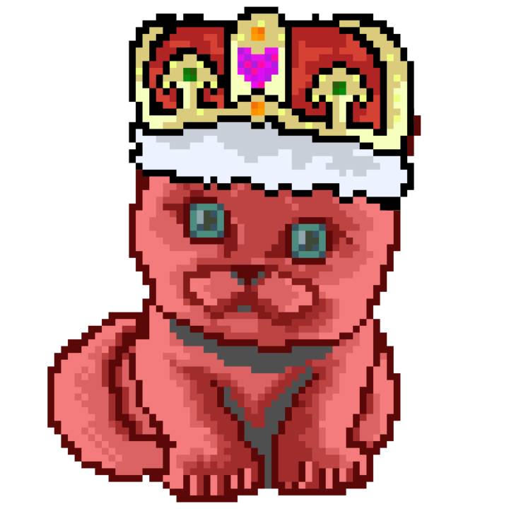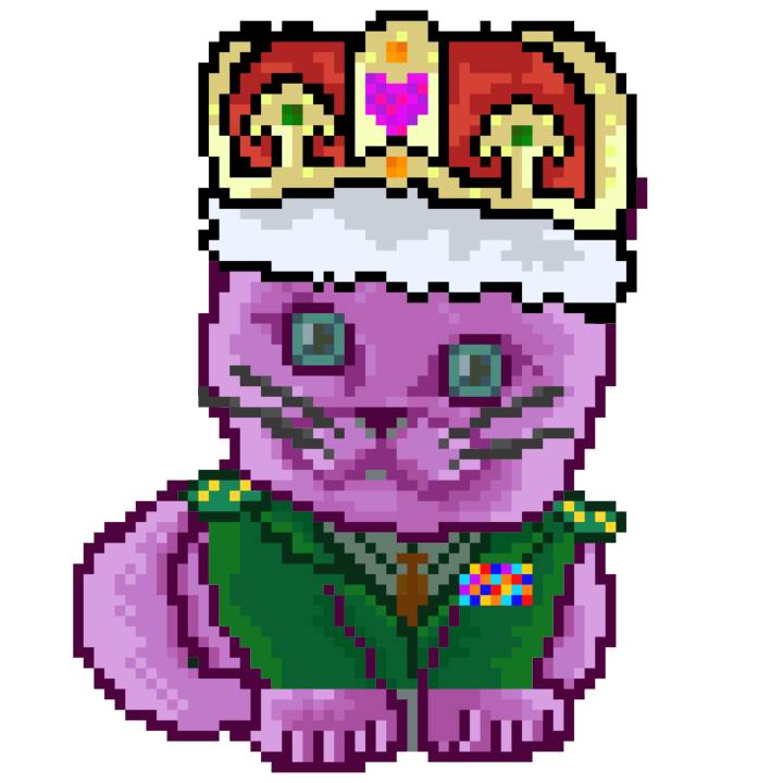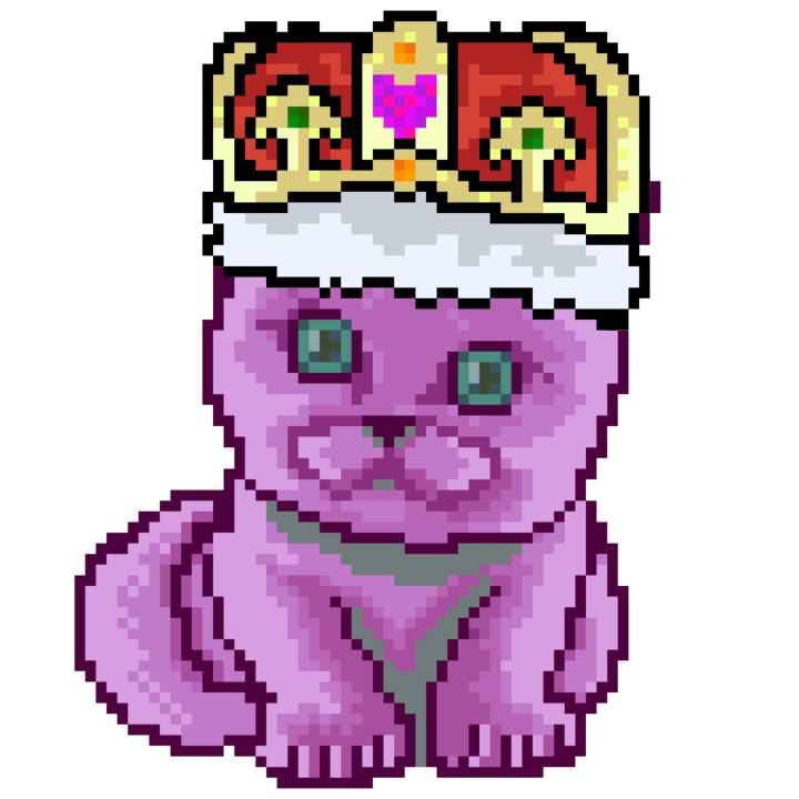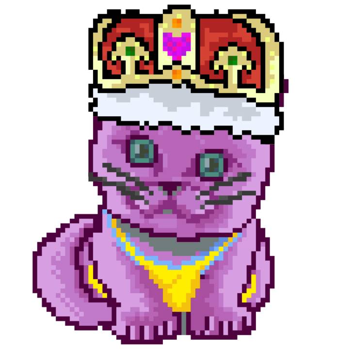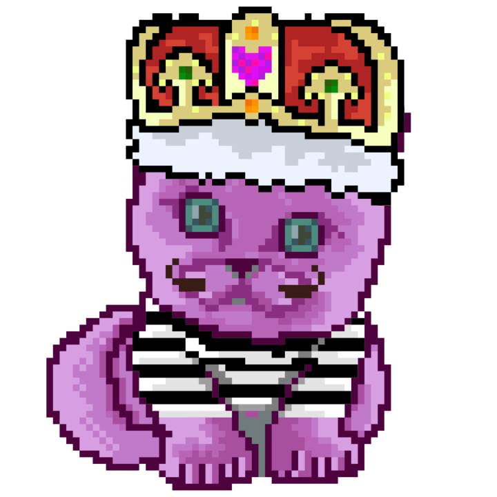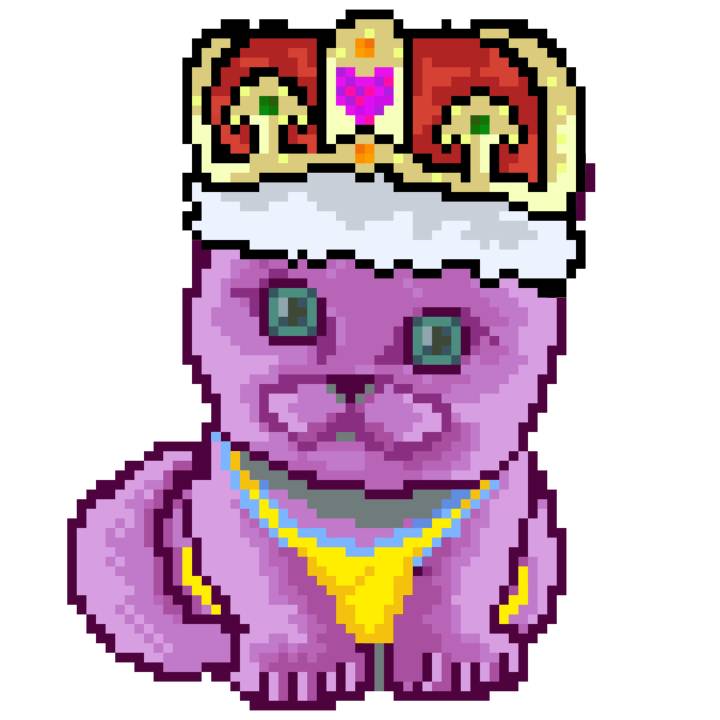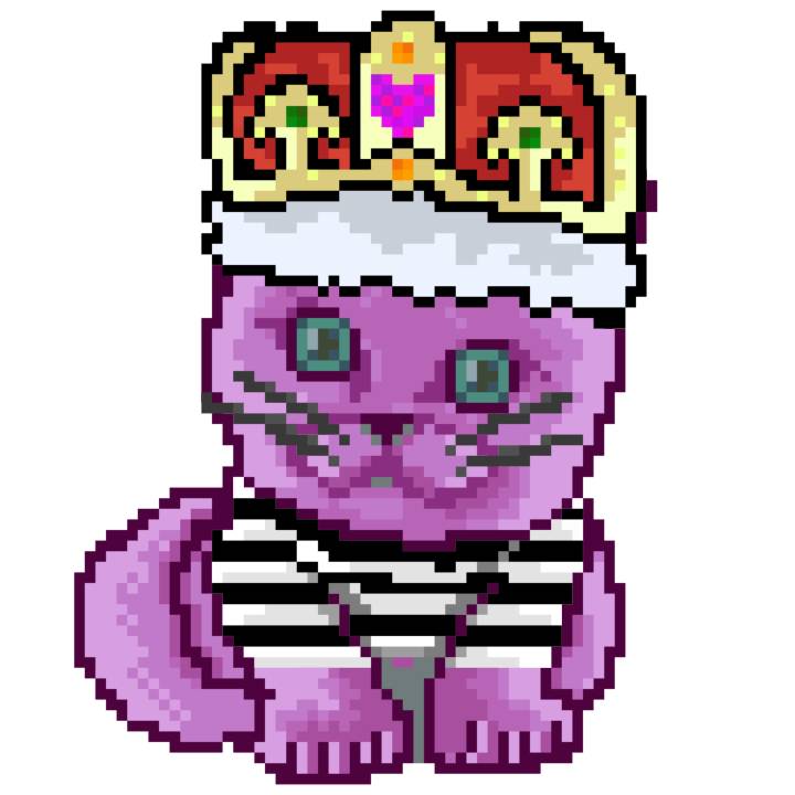 | Ashy Flashy Cat #1413 | 1397 | Pink | Crown | No Mustache | General Top | View Image | View CatPage | View Opensea open_in_new |