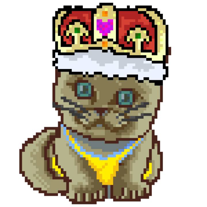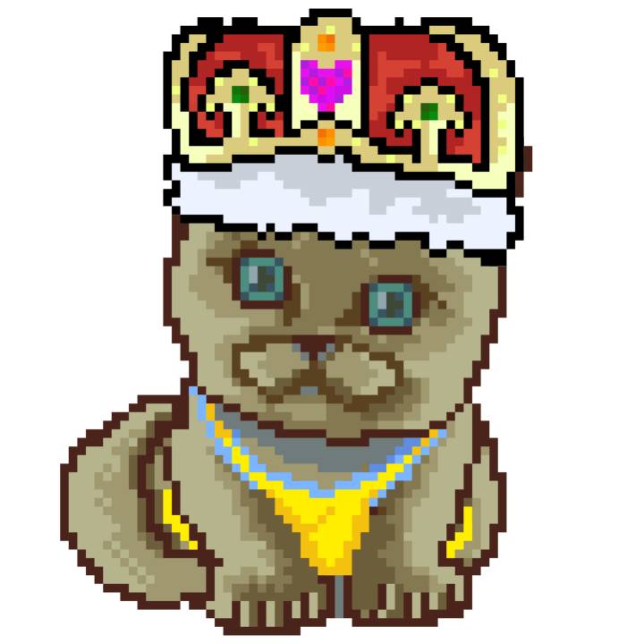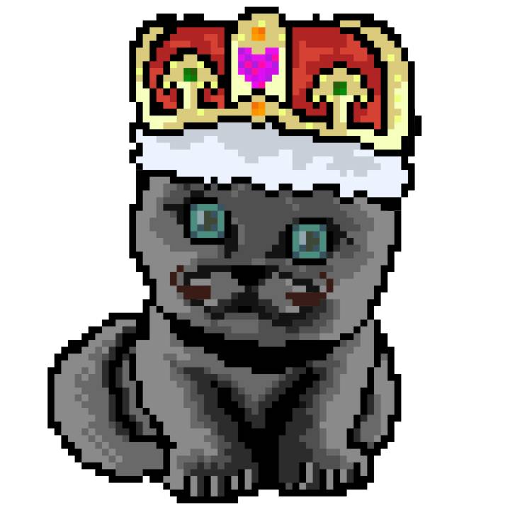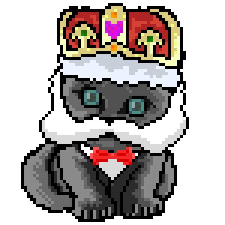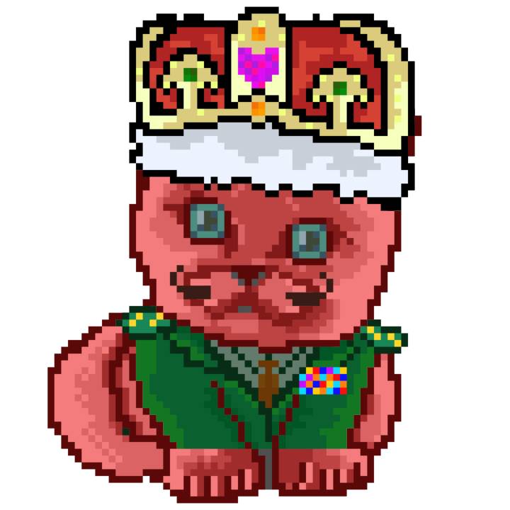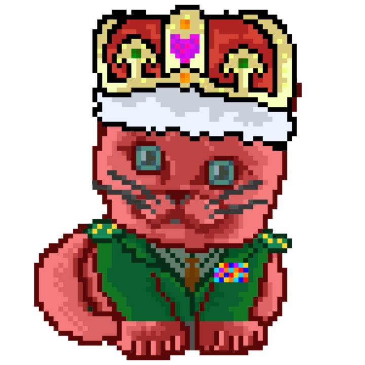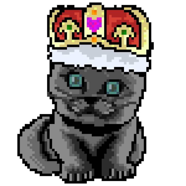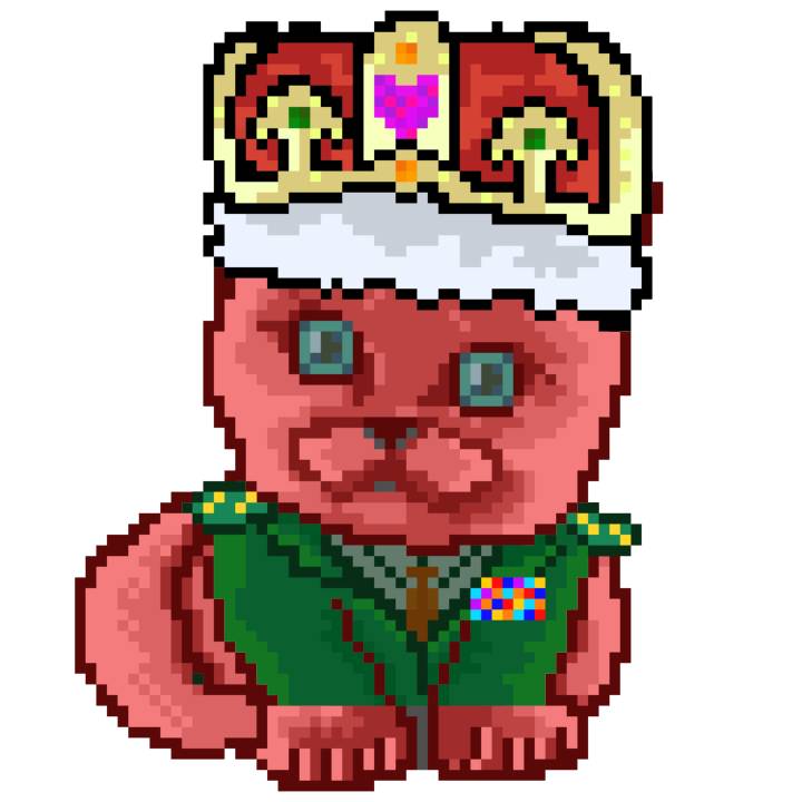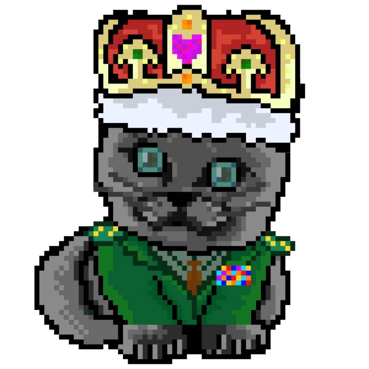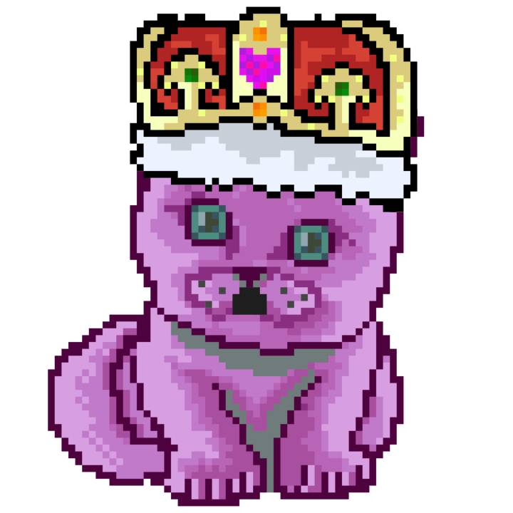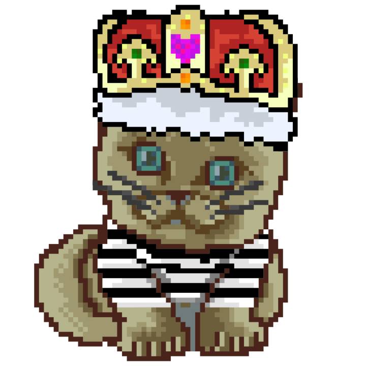 | Ashy Flashy Cat #1413 | 1397 | Pink | Crown | No Mustache | General Top | View Image | View CatPage | View Opensea open_in_new |