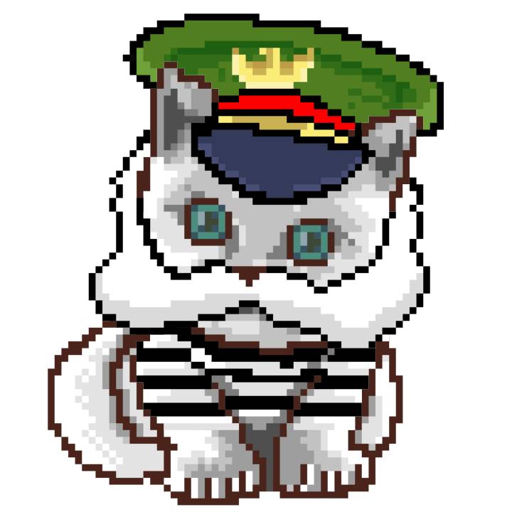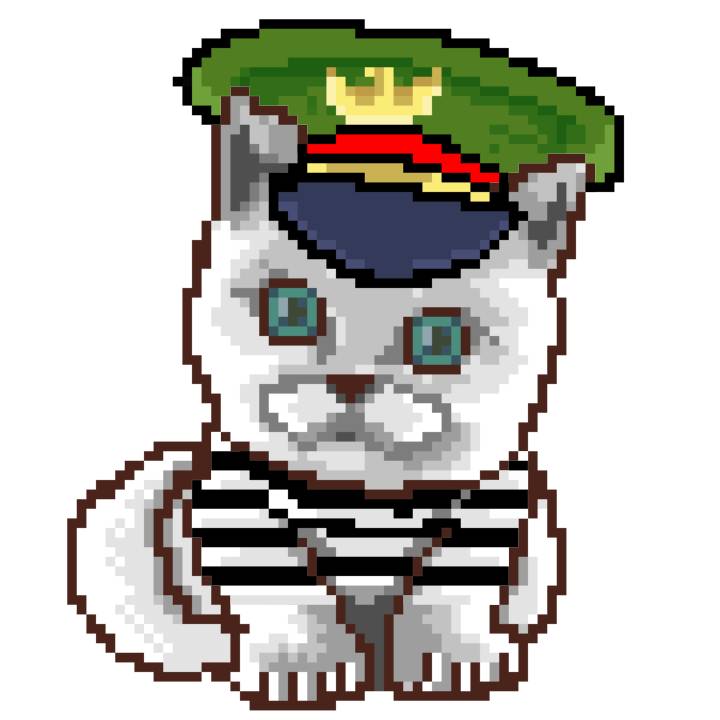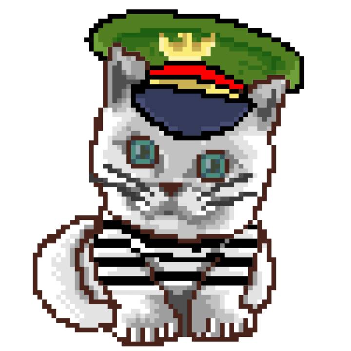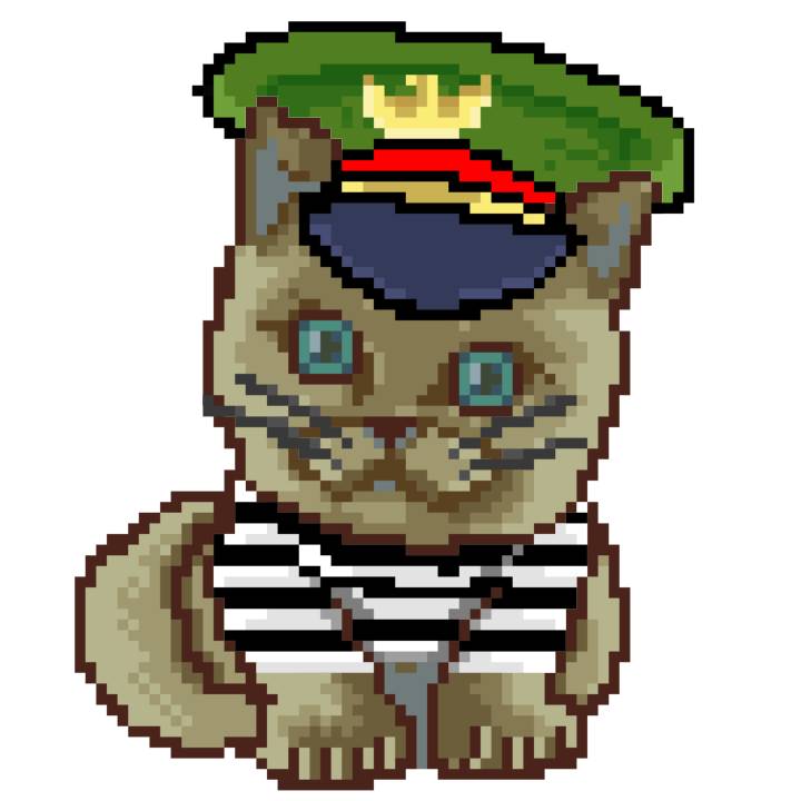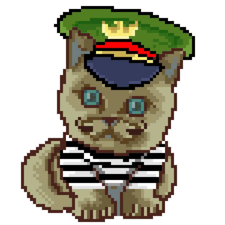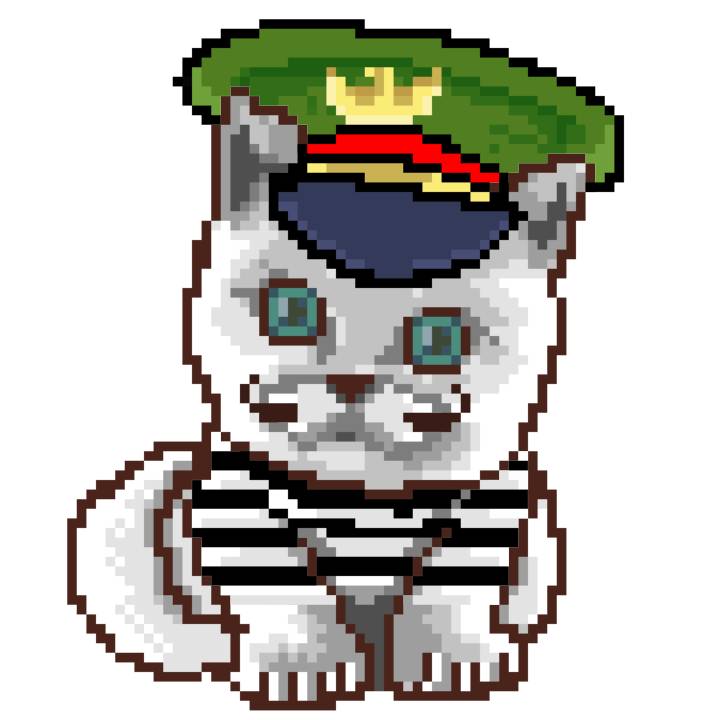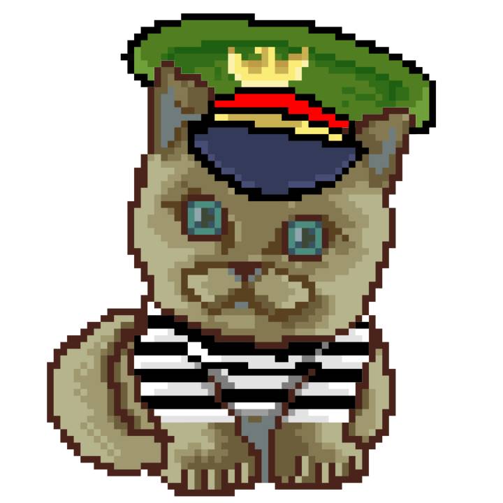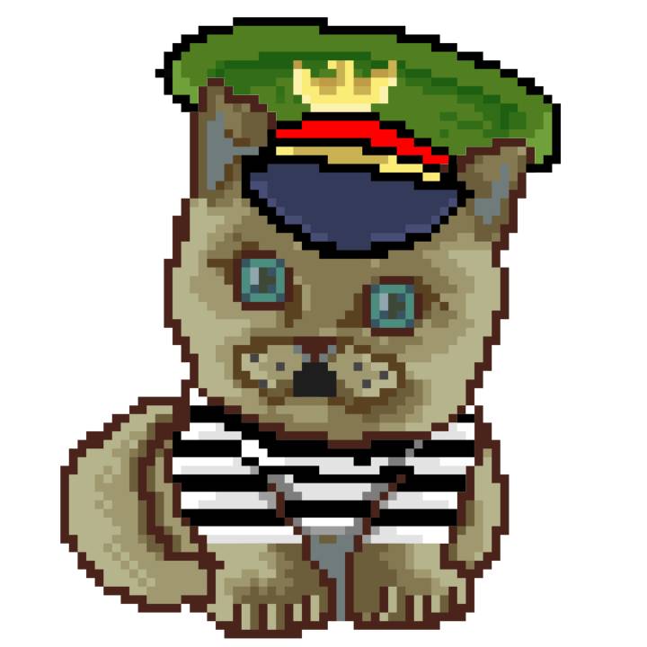 | Ashy Flashy Cat #1405 | 30 | SandyBrown | Beret | Charlie Chaplin Mustache | Jail Top | View Image | View CatPage | View Opensea open_in_new |