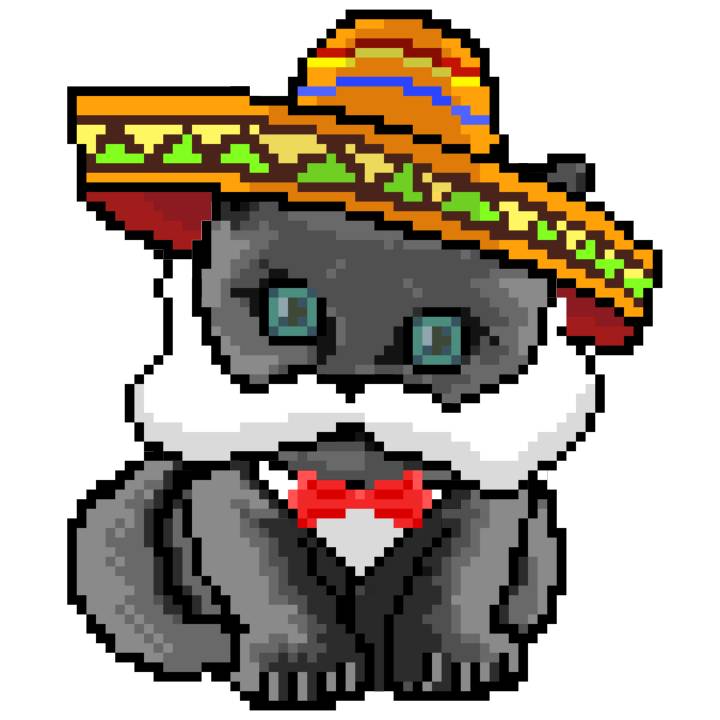 | Ashy Flashy Cat #1439 | 1397 | Red | Sombrero | No Mustache | No Uniform | View Image | View CatPage | View Opensea open_in_new |