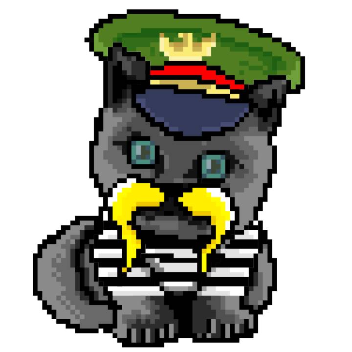 | Ashy Flashy Cat #1490 | 642 | Black | Bowler | Viking Mustache | Jersey | View Image | View CatPage | View Opensea open_in_new |
