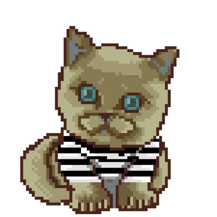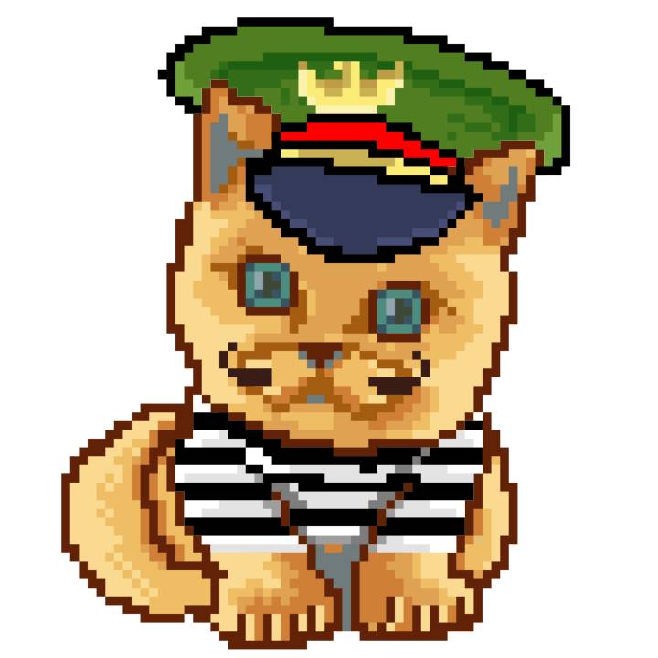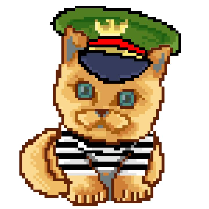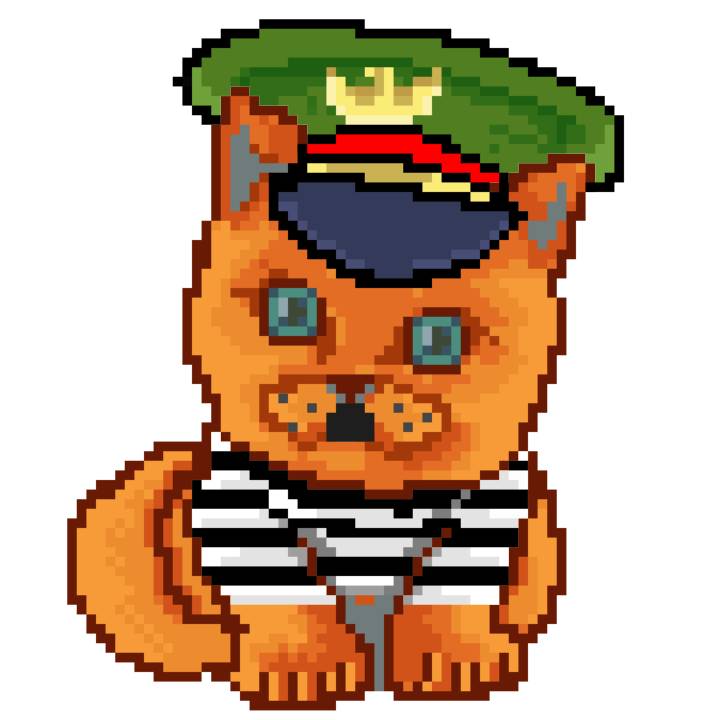 | Ashy Flashy Cat #1488 | 185 | SandyBrown | Beret | No Mustache | Jail Top | View Image | View CatPage | View Opensea open_in_new |