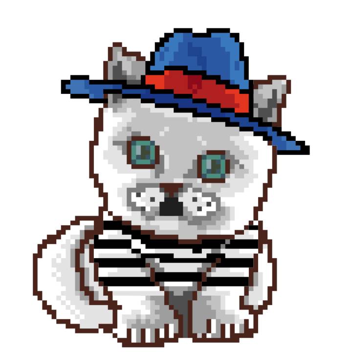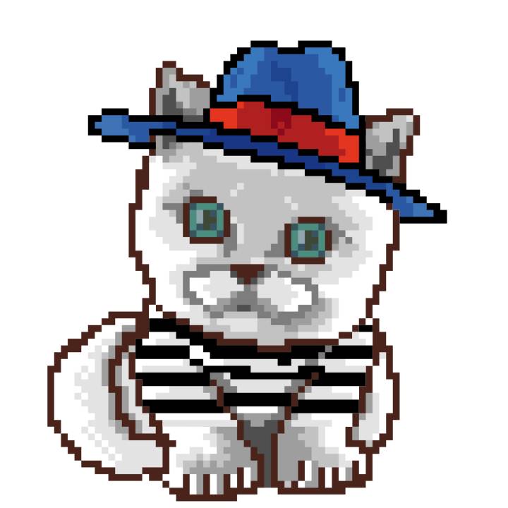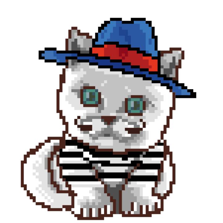 | Ashy Flashy Cat #9 | 642 | White | Beret | Charlie Chaplin Mustache | Jersey | View Image | View CatPage | View Opensea open_in_new |