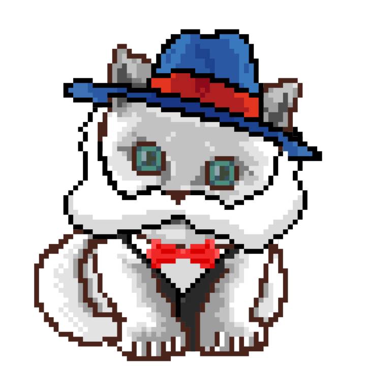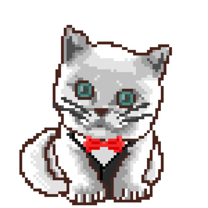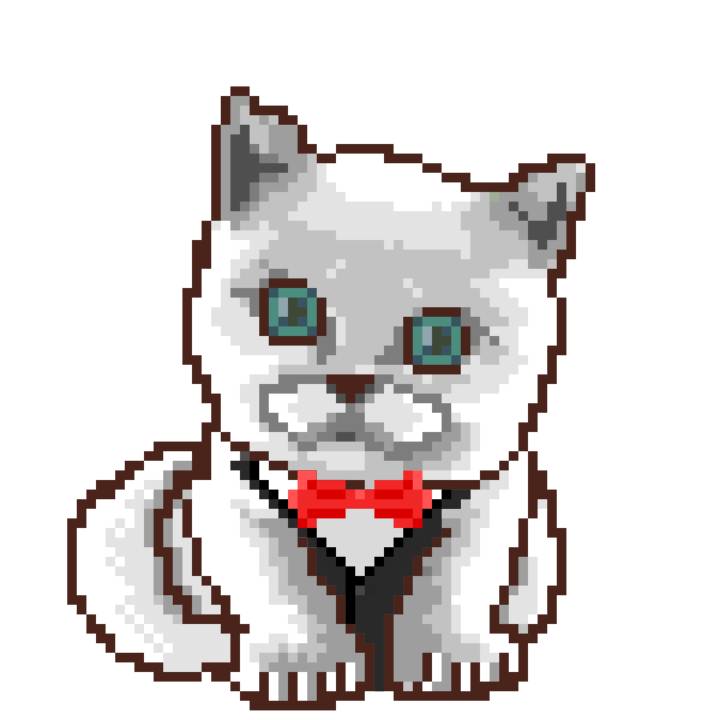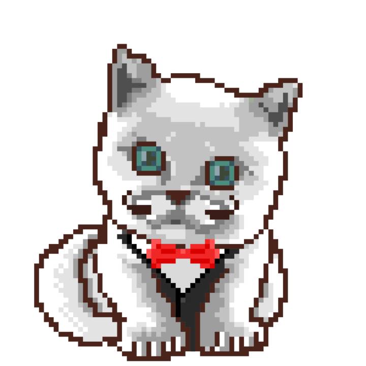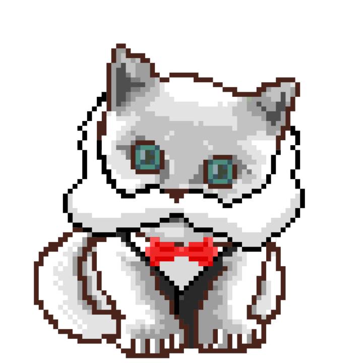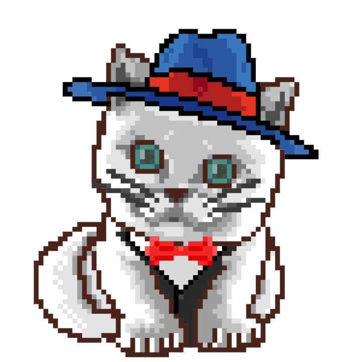 | Ashy Flashy Cat #1410 | 1027 | White | Bowler | Charlie Chaplin Mustache | General Top | View Image | View CatPage | View Opensea open_in_new |