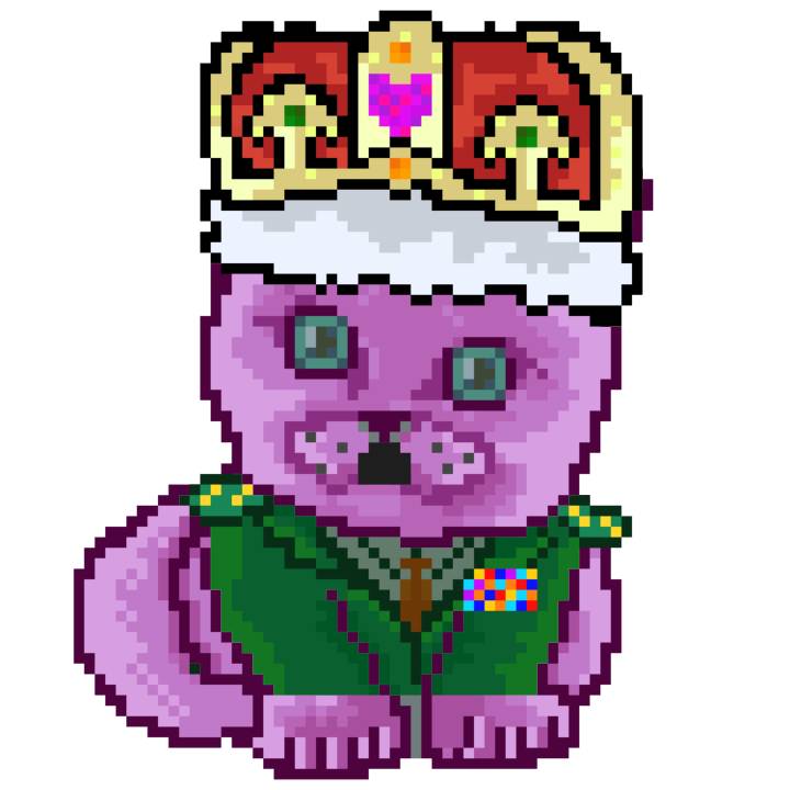 | Ashy Flashy Cat #87 | 642 | Pink | Crown | Victorian beard | No Uniform | View Image | View CatPage | View Opensea open_in_new |