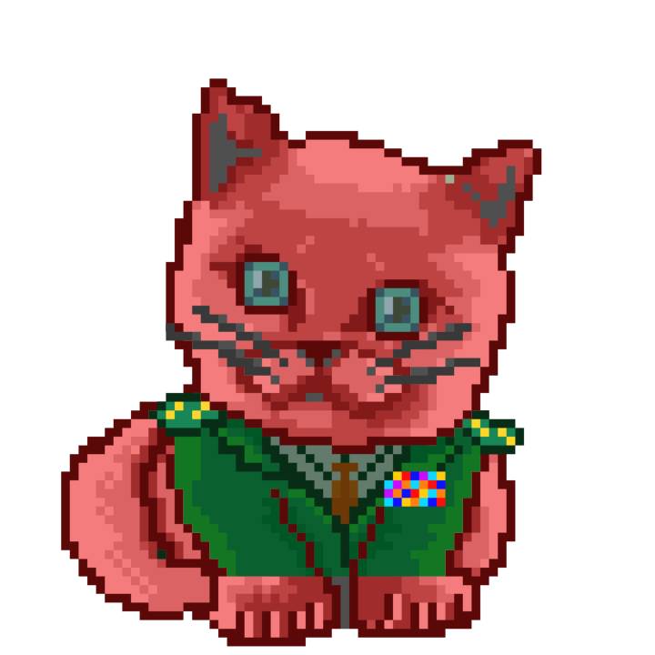 | Ashy Flashy Cat #1463 | 1027 | Red | Crown | Charlie Chaplin Mustache | General Top | View Image | View CatPage | View Opensea open_in_new |