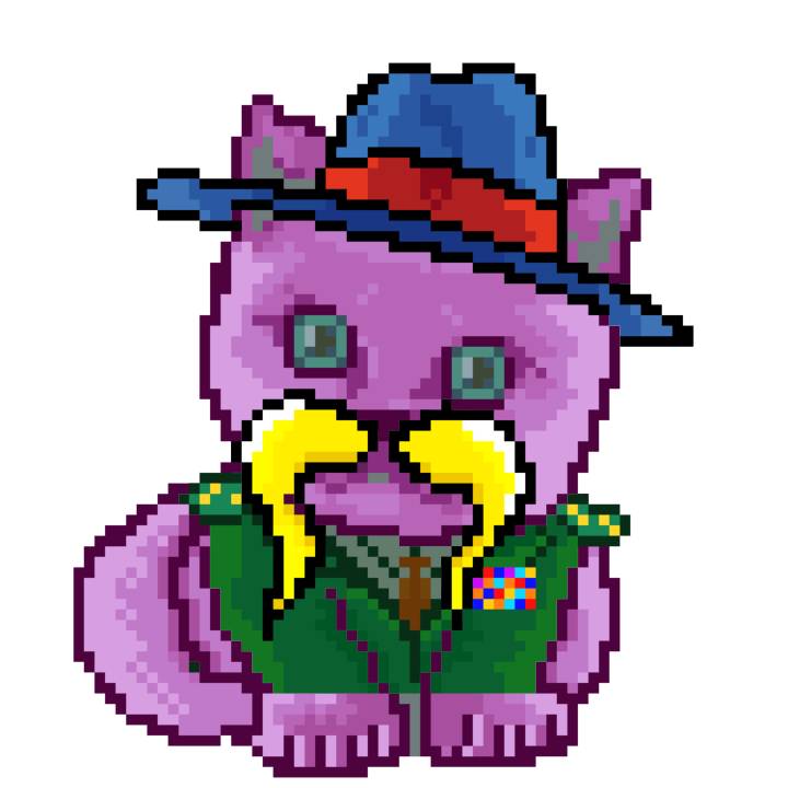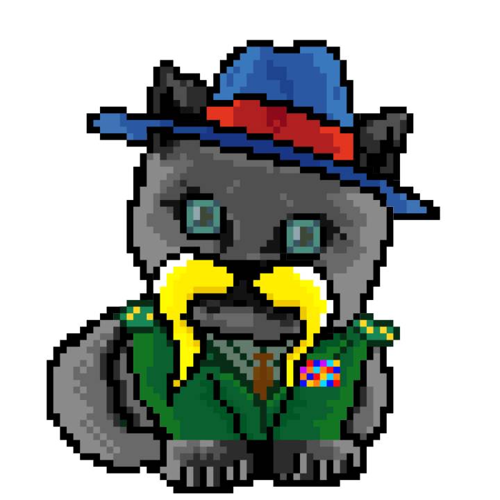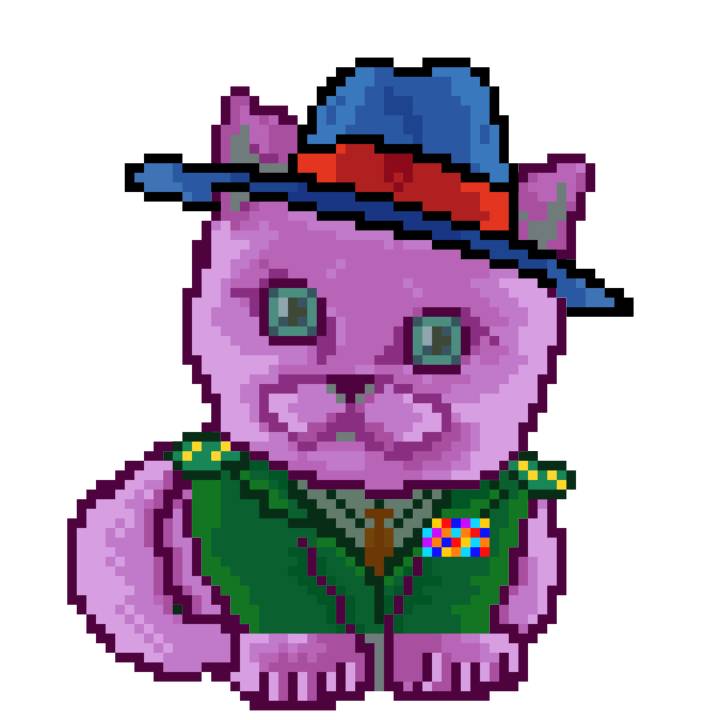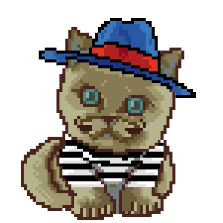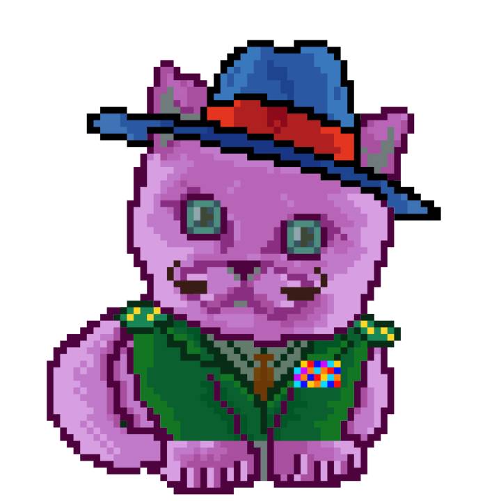 | Ashy Flashy Cat #54 | 642 | Brown | Beret | Viking Mustache | Jersey | View Image | View CatPage | View Opensea open_in_new |