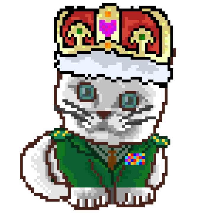 | Ashy Flashy Cat #1453 | 642 | White | Crown | Victorian beard | Wasket | View Image | View CatPage | View Opensea open_in_new |