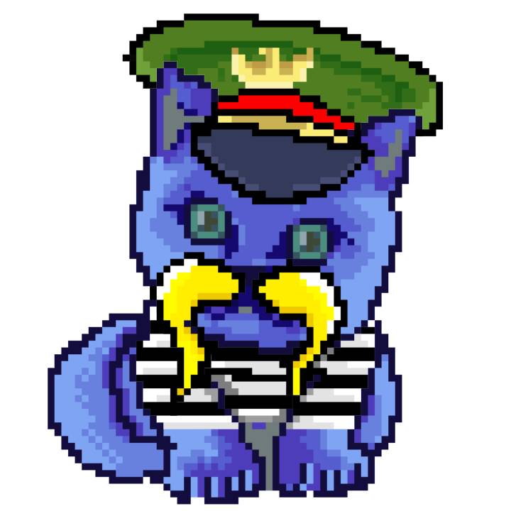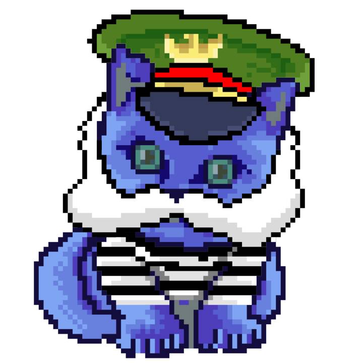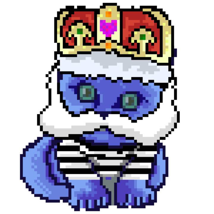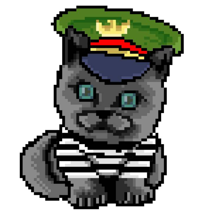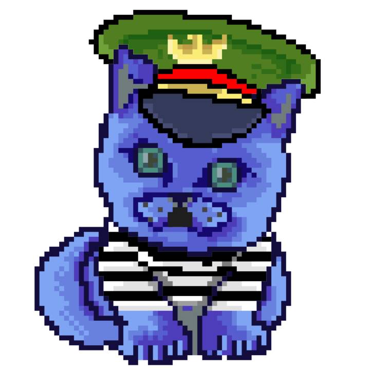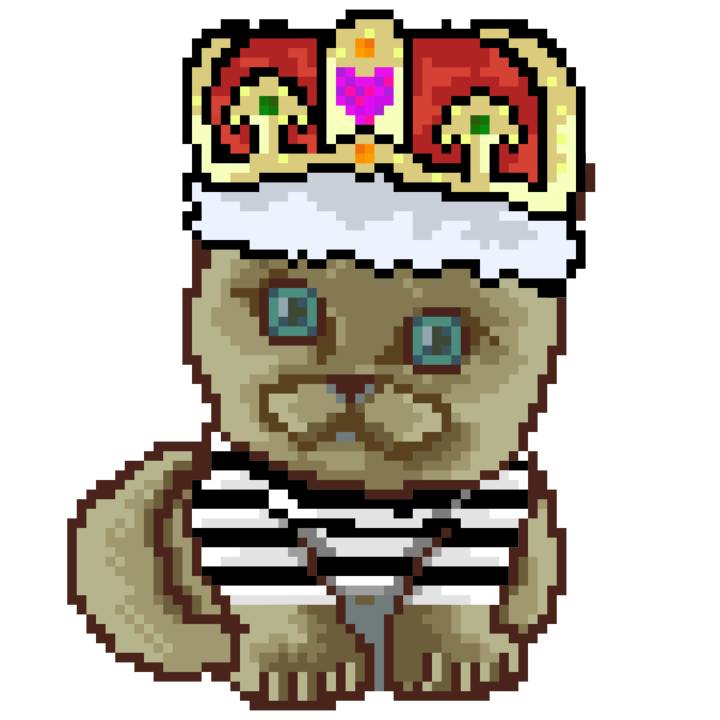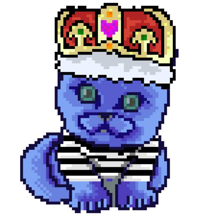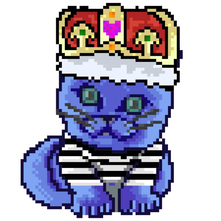 | Ashy Flashy Cat #1465 | 305 | Blue | Crown | Victorian beard | Jail Top | View Image | View CatPage | View Opensea open_in_new |