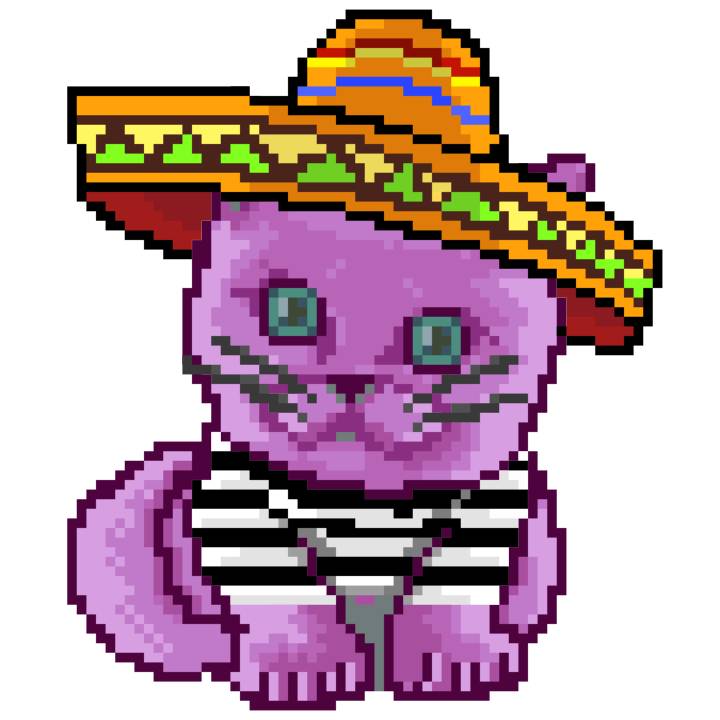| Ashy Flashy Cat #1473 | 578 | Pink | Sombrero | Handlebar Mustache | Jail Top | View Image | View CatPage | View Opensea open_in_new |