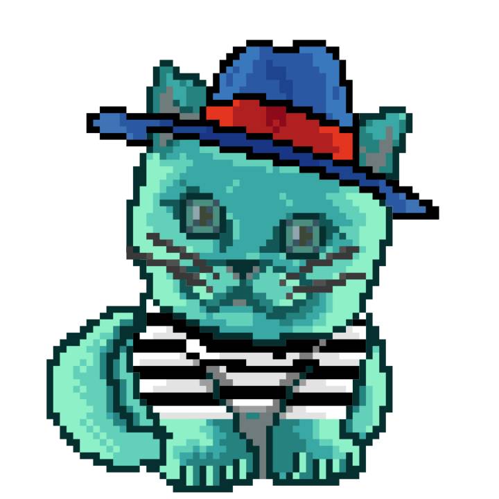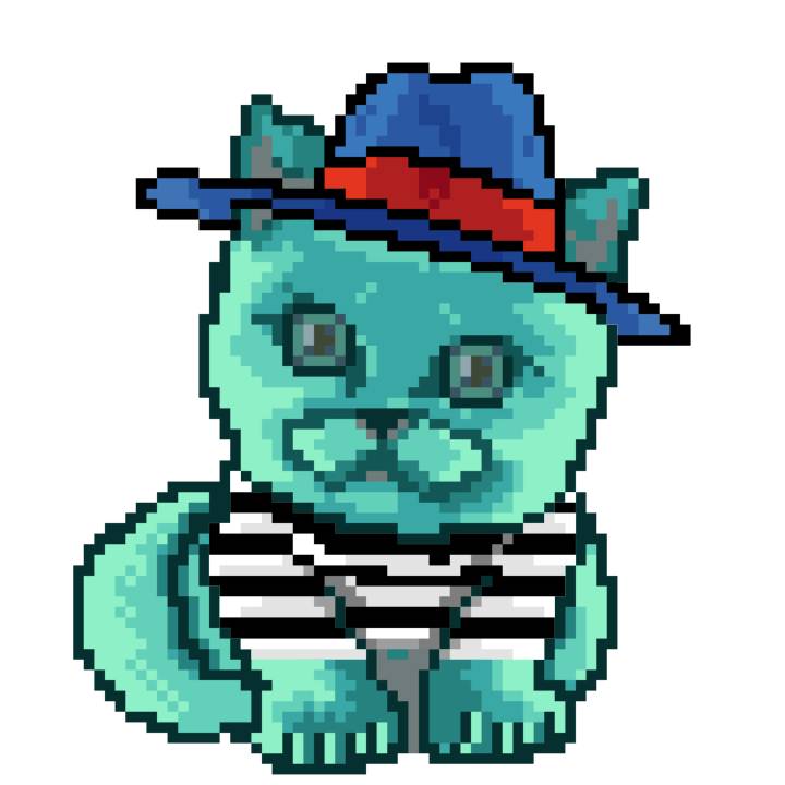 | Ashy Flashy Cat #1454 | 209 | Turquoise | Beret | Cat Mustache | Jersey | View Image | View CatPage | View Opensea open_in_new |