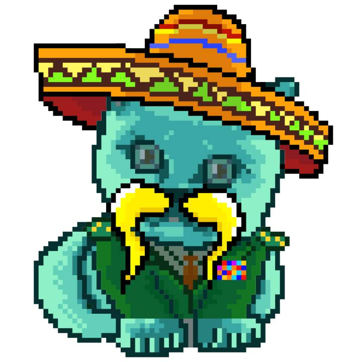 | Ashy Flashy Cat #1429 | 1027 | Turquoise | Sombrero | Viking Mustache | No Uniform | View Image | View CatPage | View Opensea open_in_new |
