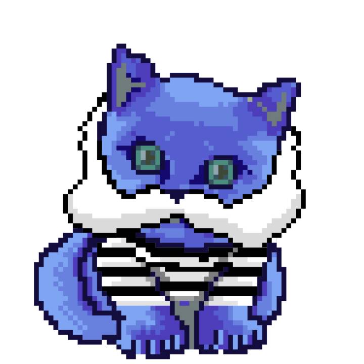 | Ashy Flashy Cat #1472 | 936 | Blue | No Hat | No Mustache | Jersey | View Image | View CatPage | View Opensea open_in_new |