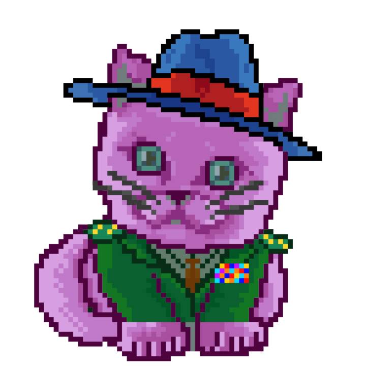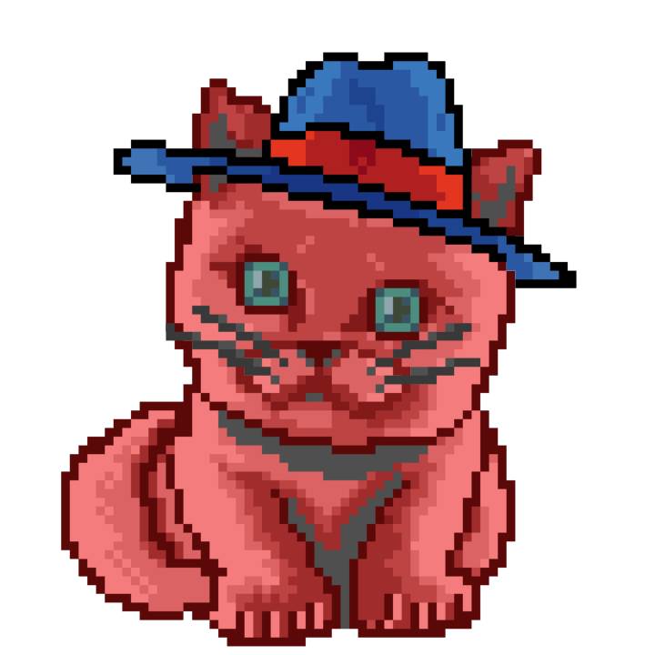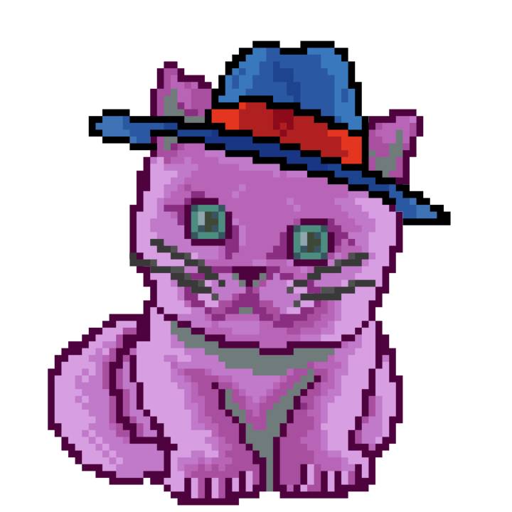 | Ashy Flashy Cat #1499 | 522 | Pink | Beret | Cat Mustache | General Top | View Image | View CatPage | View Opensea open_in_new |