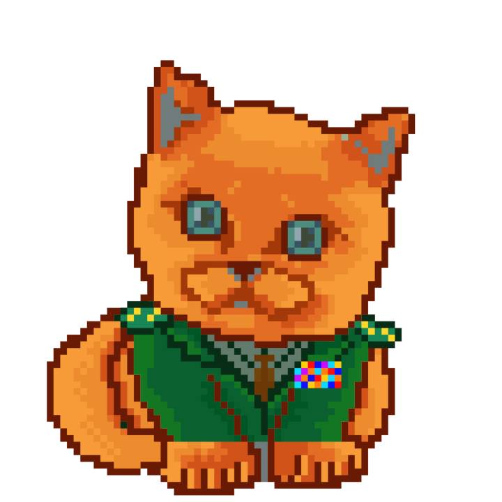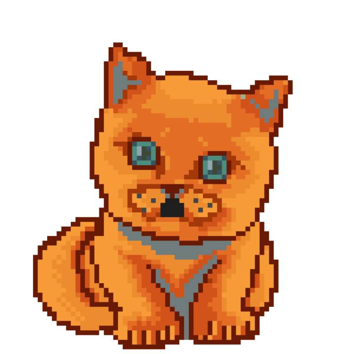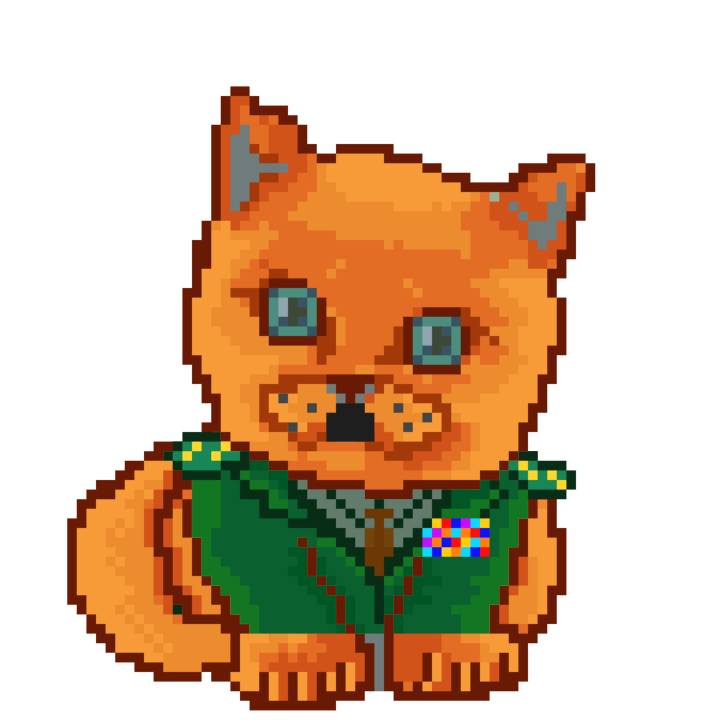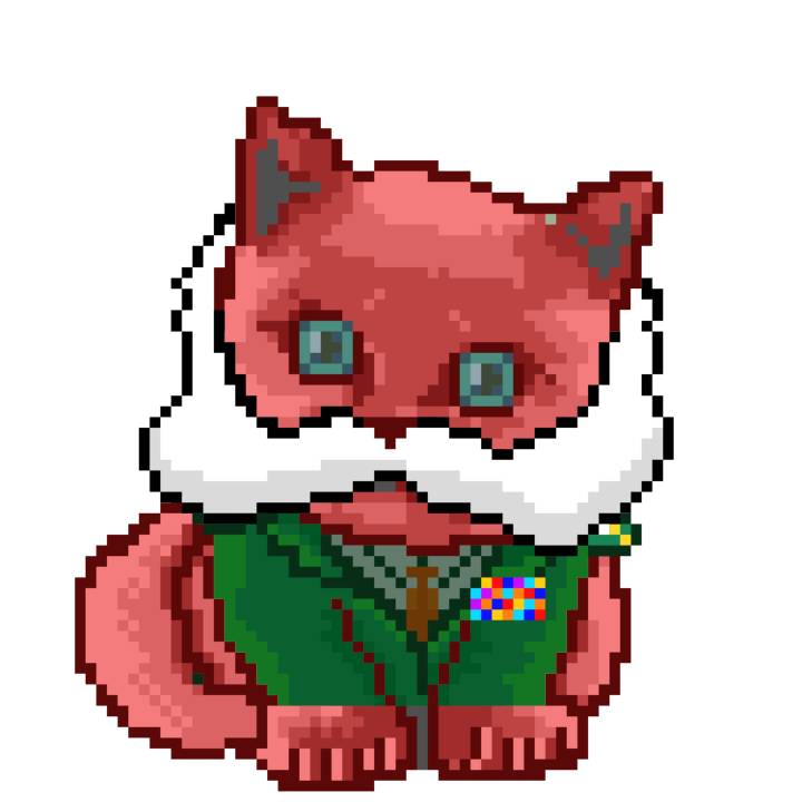 | Ashy Flashy Cat #1409 | 1446 | Orange | Beret | Victorian beard | General Top | View Image | View CatPage | View Opensea open_in_new |