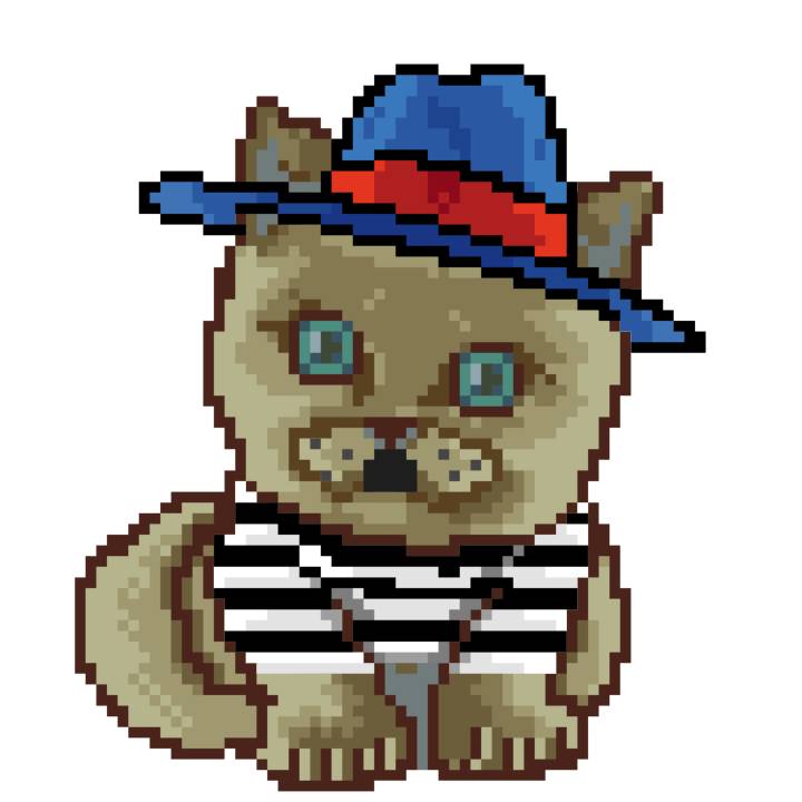 | Ashy Flashy Cat #7 | 1237 | Brown | Bowler | No Mustache | Jersey | View Image | View CatPage | View Opensea open_in_new |