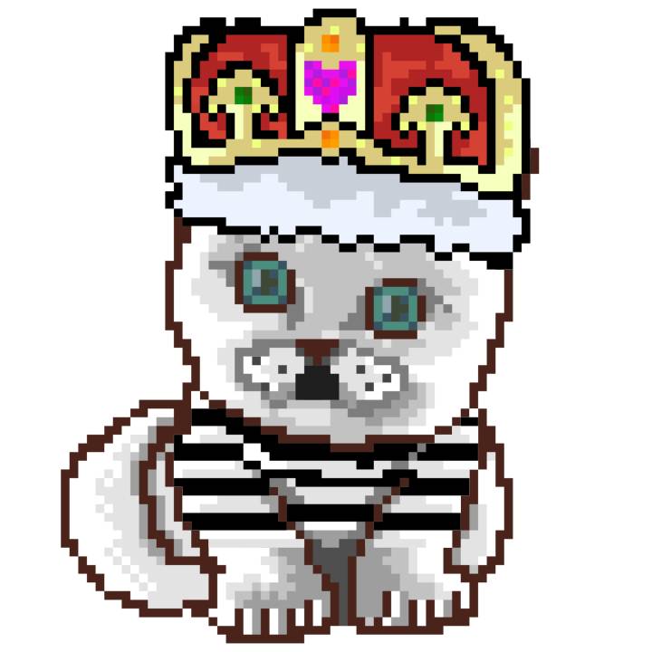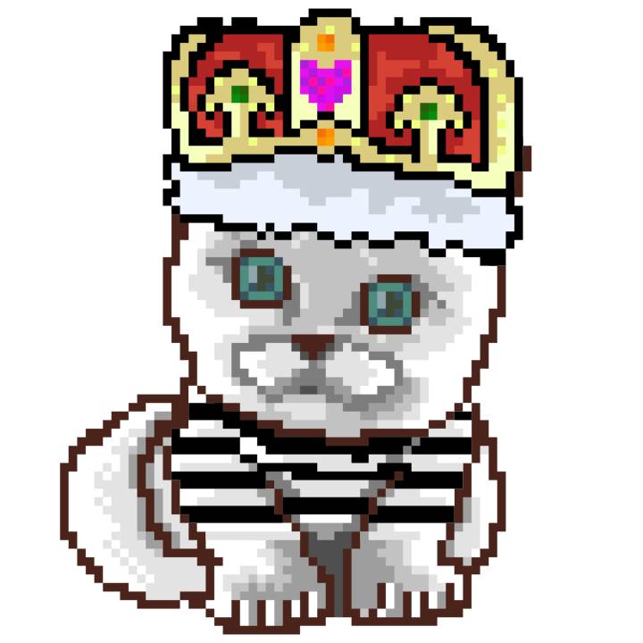 | Ashy Flashy Cat #68 | 305 | White | Crown | Victorian beard | Jail Top | View Image | View CatPage | View Opensea open_in_new |